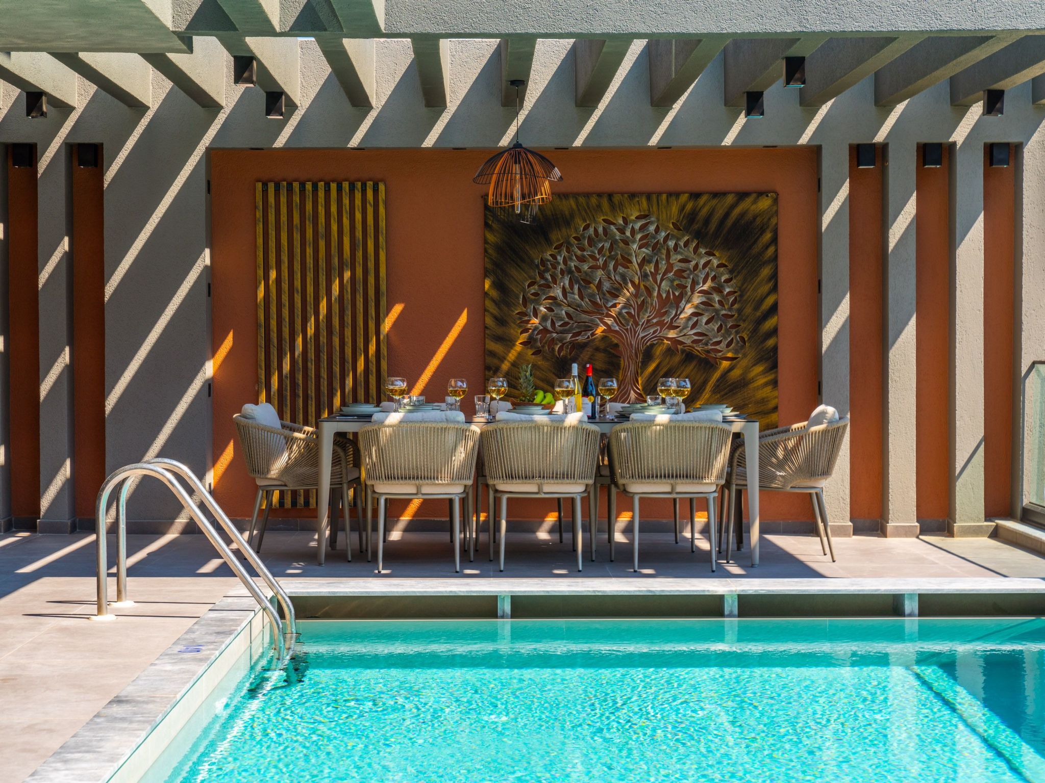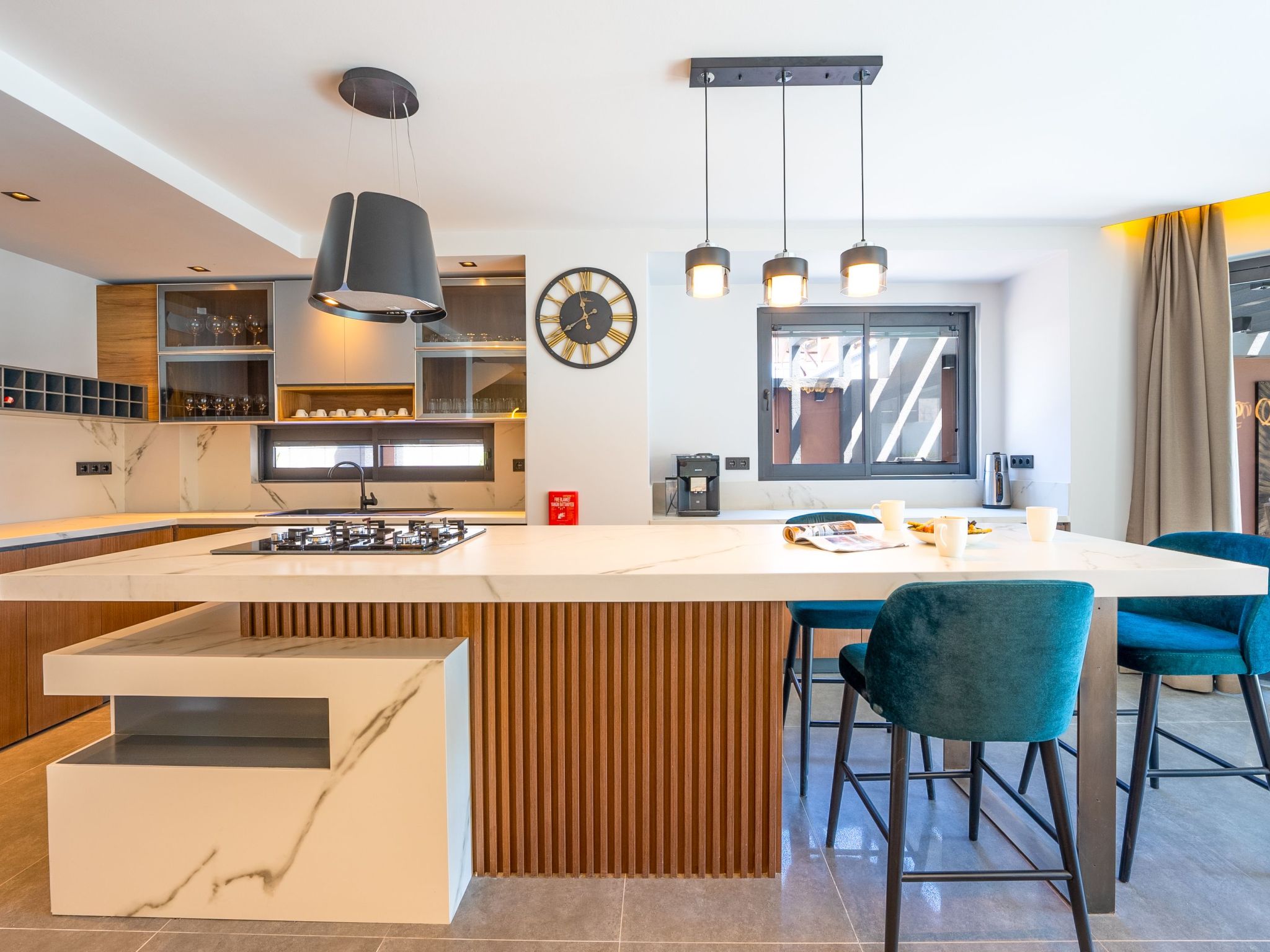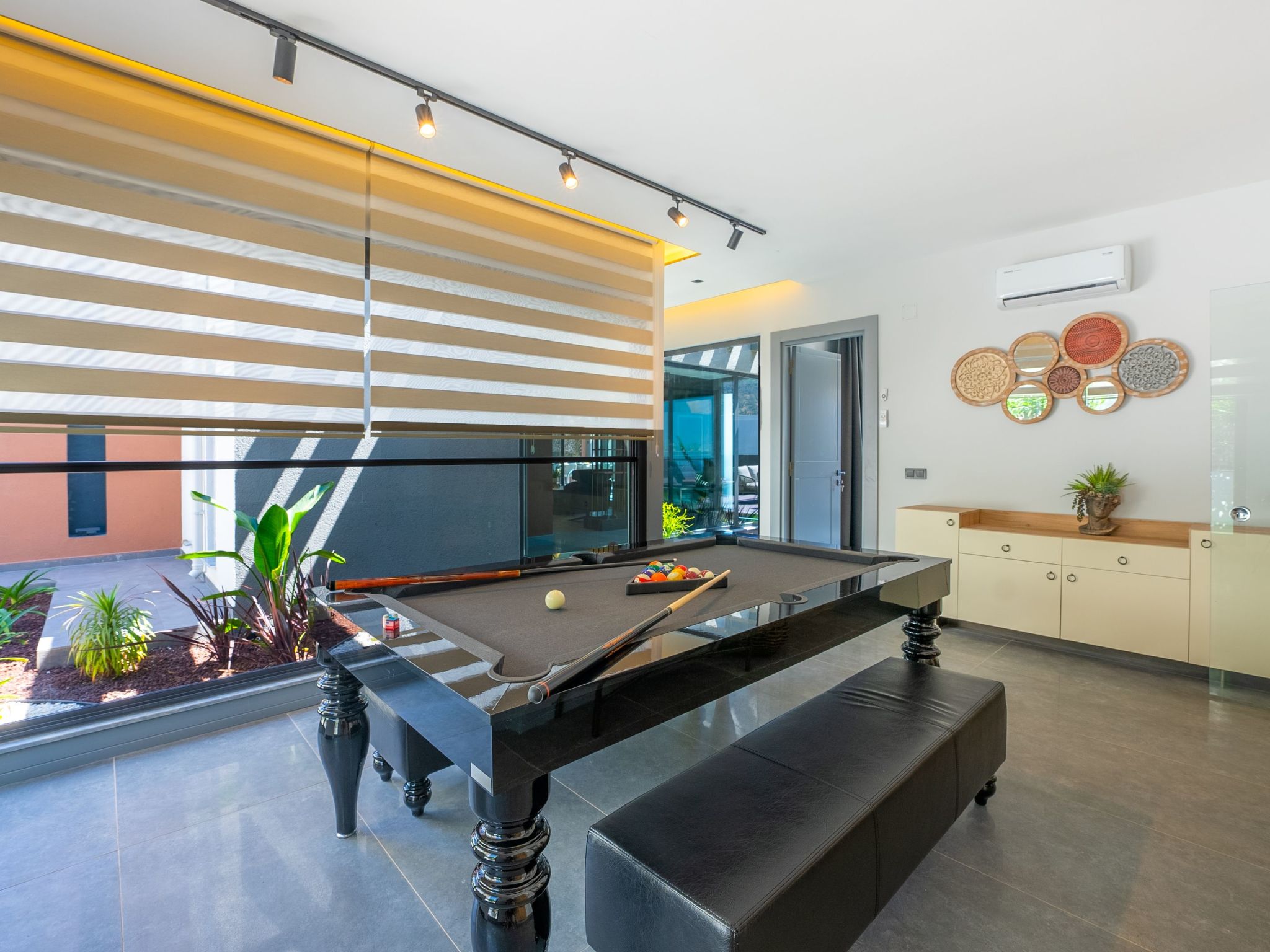 Das Herzstück dieser bezaubernden Villa bildet ihre sorgfältig konzipierte Innenausstattung. Hier finden Sie alles, was Sie für einen sorgenfreien Aufenthalt benötigen. Die vier gemütlichen Schlafzimmer bieten Ruhe und Privatsphäre und sind vollständig abdunkelbar – ideal für einen erholsamen Schlaf. Jedes der vier Badezimmer ist mit einer modernen Dusche ausgestattet. Die Villa verfügt zudem über eine voll ausgestattete Küche mit Gasherd und Spülmaschine, ergänzt durch eine Waschmaschine für Ihren Komfort. Abgerundet wird das Angebot durch eine klimatisierte Umgebung überall im Haus und Möglichkeiten zur Unterhaltung, wie einem Billardtisch.