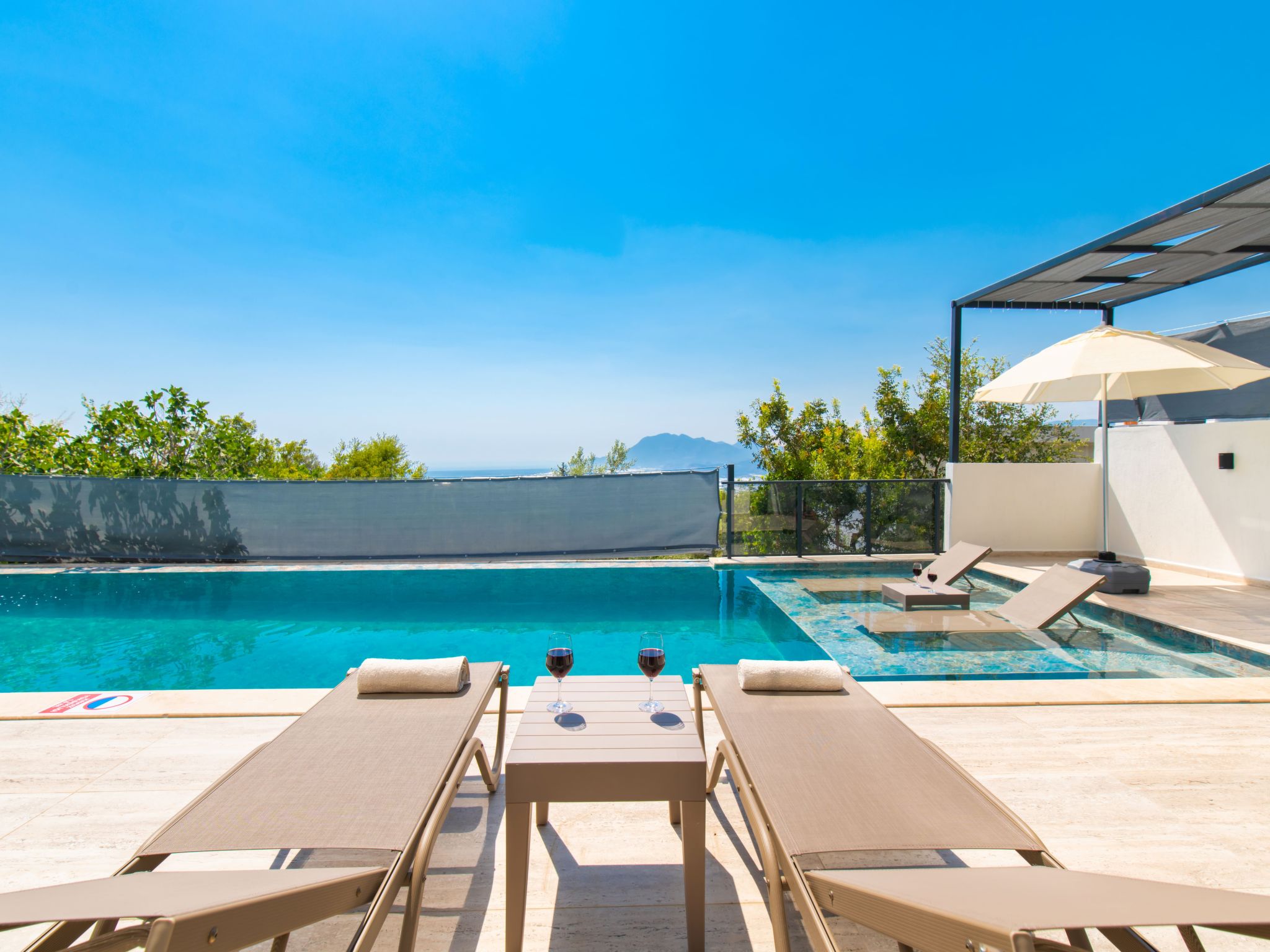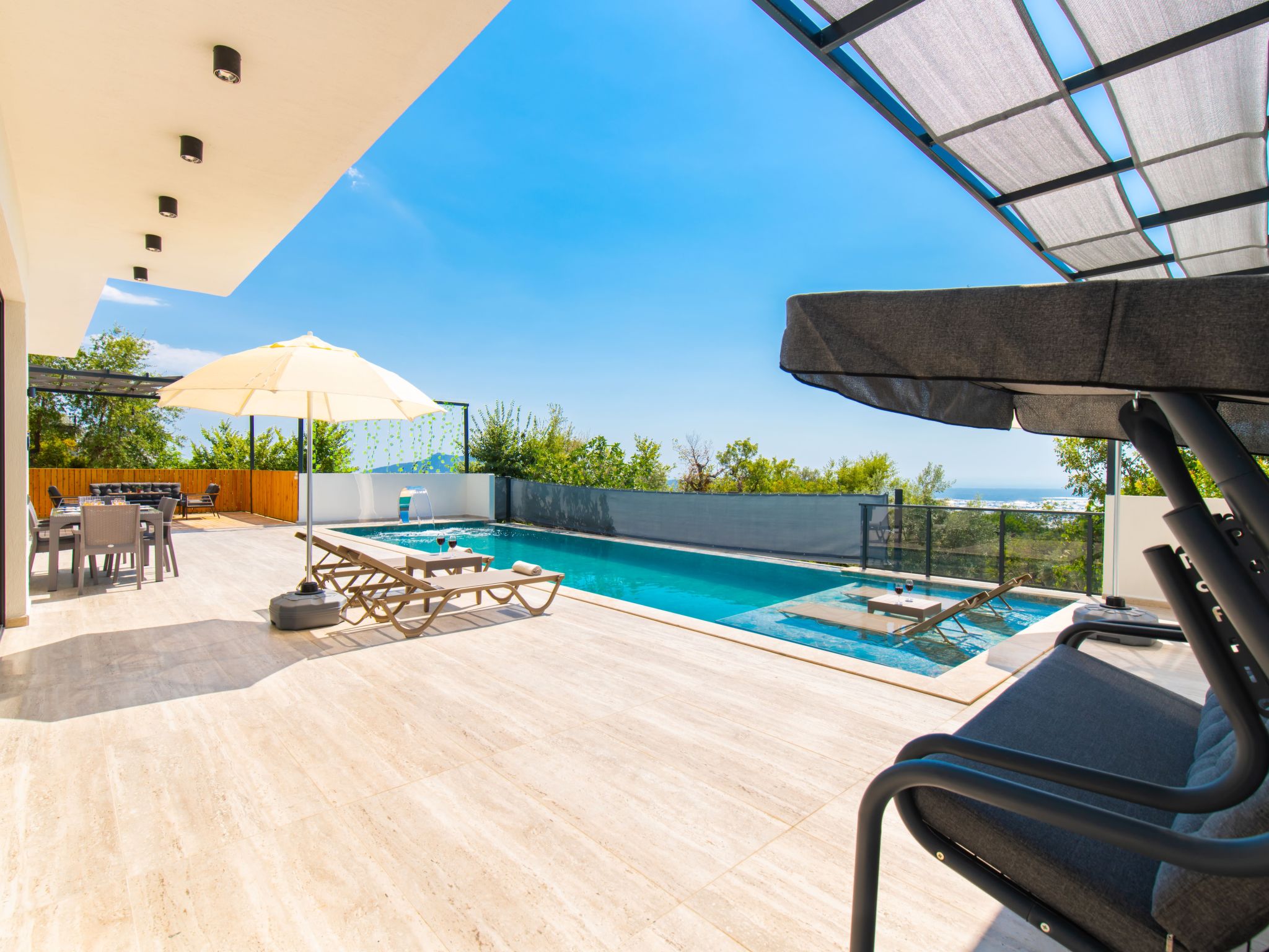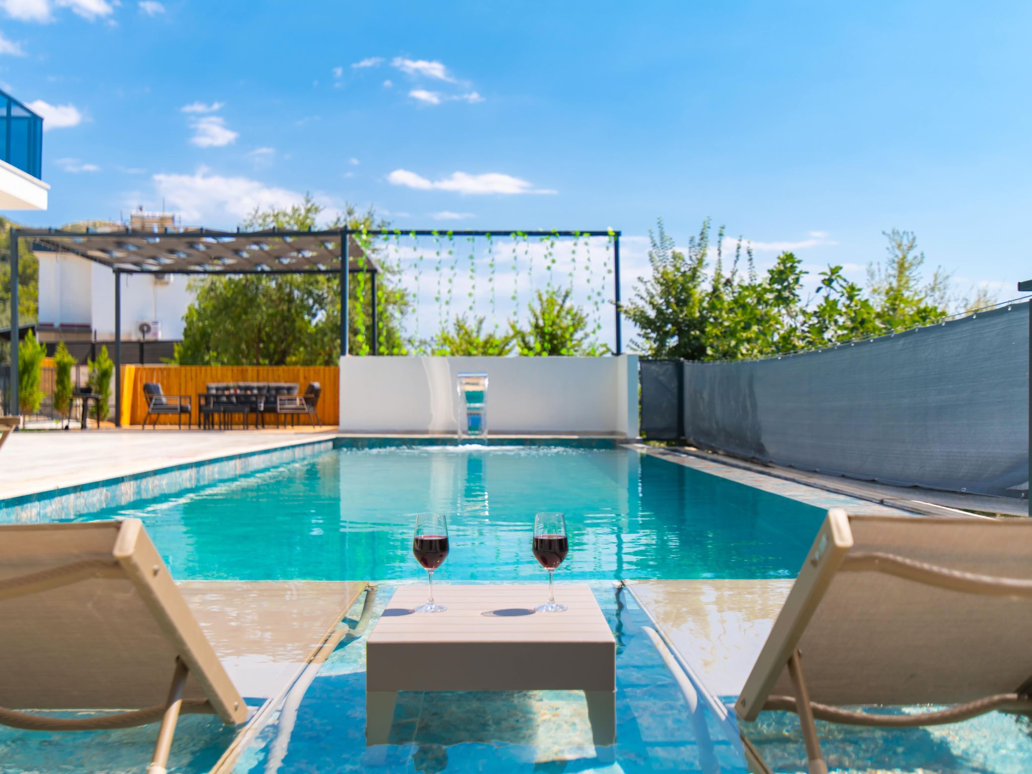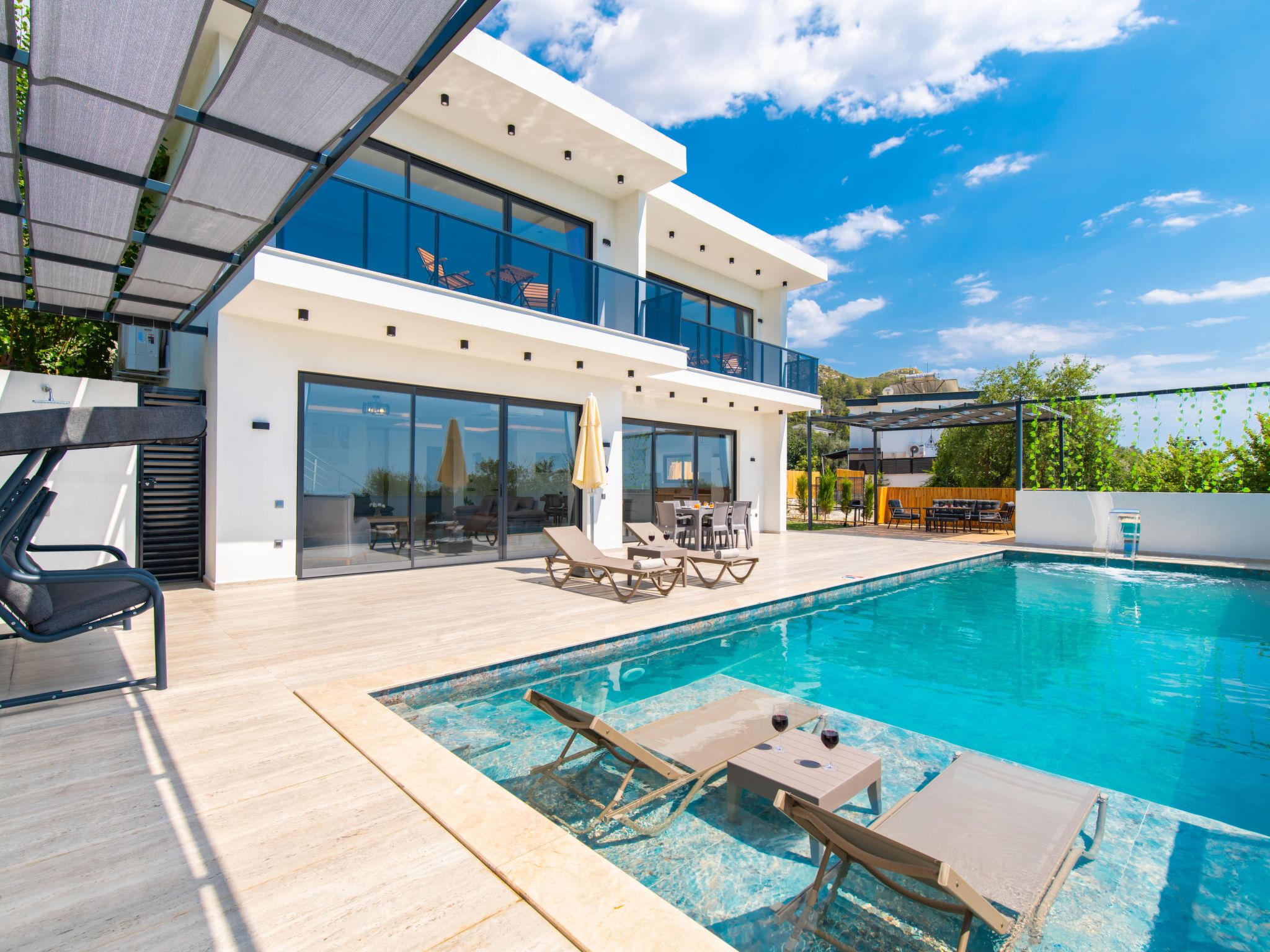 Der Außenbereich des Ferienhauses ist genau so beeindruckend wie das Innere. Ein privater Pool lädt zum erfrischenden Bad ein, während die großzügig gestaltete Terrasse und der Balkon perfekte Orte sind, um die warmen Abende ausklingen zu lassen. Der zur alleinigen Nutzung bestimmte Garten bietet reichlich Platz für Entspannung im Freien und für Kinder, um sicher zu spielen.