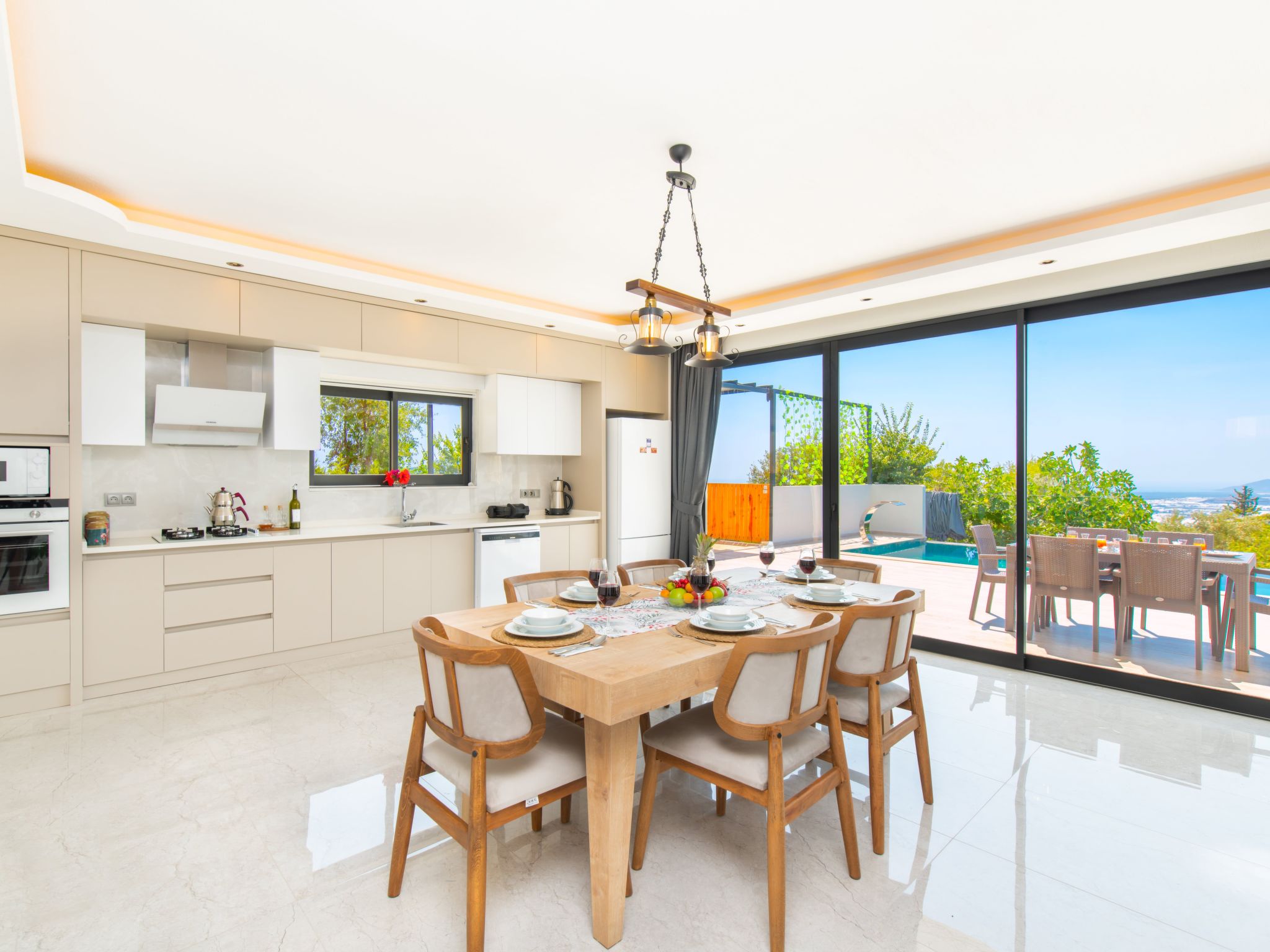 Im Inneren des Hauses sorgt die Ausstattung für einen komfortablen und sorgenfreien Aufenthalt. Die klimatisierte Umgebung ermöglicht auch in den heißesten Monaten eine angenehme Atmosphäre. Zur Selbstversorgung stehen Ihnen eine voll ausgestattete Küche mit Spülmaschine und eine Waschmaschine zur alleinigen Nutzung zur Verfügung. Hier finden Sie alles, was Sie für einen unvergesslichen Urlaub benötigen.