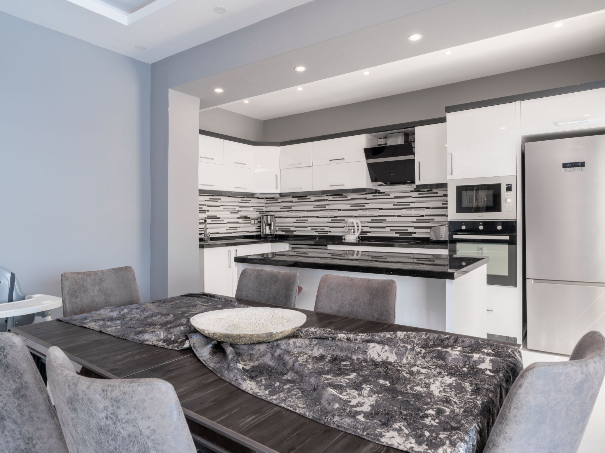 Für Komfort bei jeder Wetterlage sorgt die flächendeckende Klimaanisierung in der gesamten Unterkunft. Die moderne Ausstattung umfasst eine Waschmaschine, die Ihnen während Ihres Aufenthaltes zur alleinigen Nutzung zur Verfügung steht, sowie eine voll ausgerüstete Küche mit Gasherd, Kaffeemaschine, Spülmaschine und Wasserkocher, die Selbstversorgung zum Kinderspiel macht.