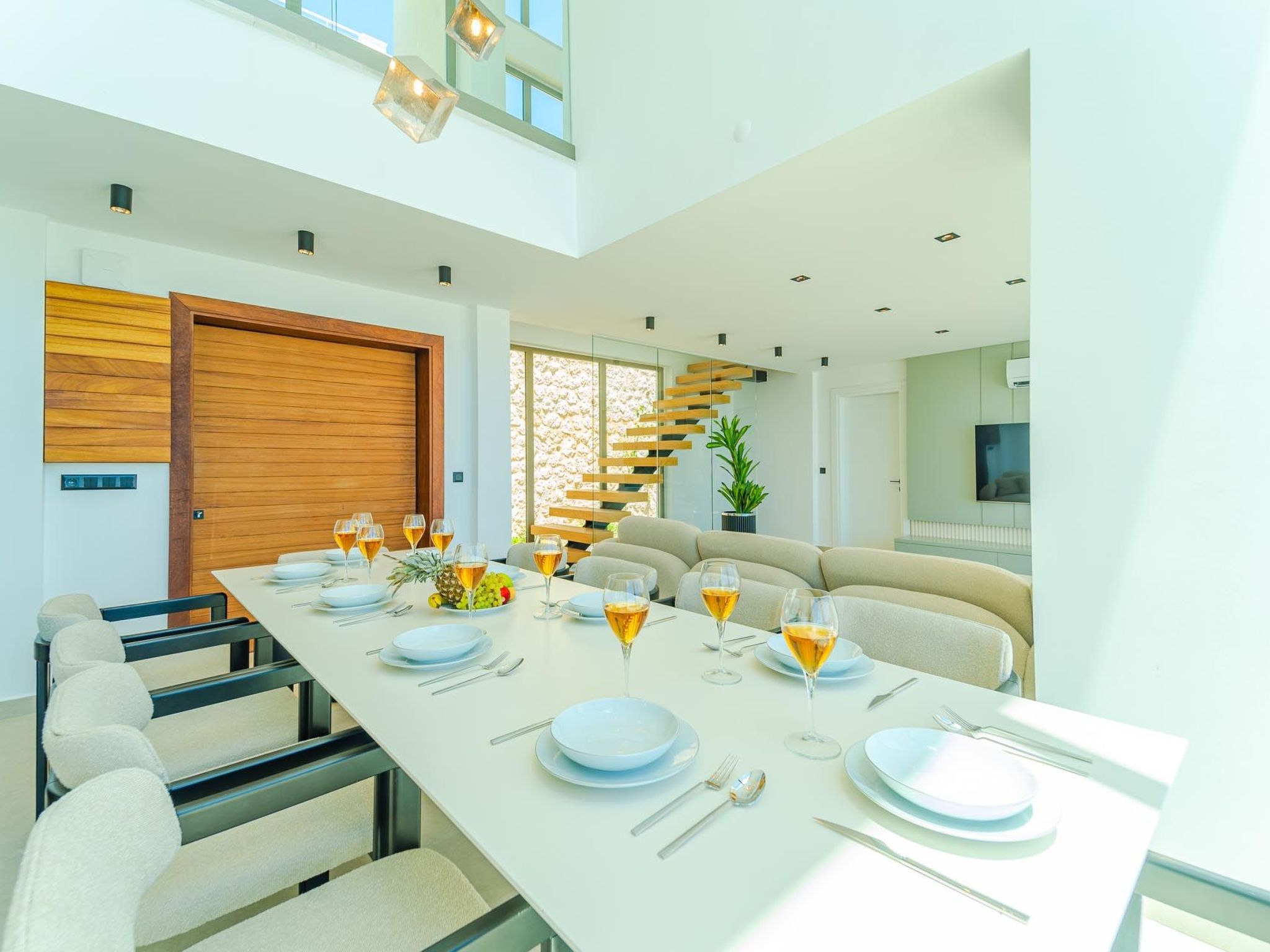 Geräumige Wohnbereiche: Die Villa verfügt über weitläufige Wohn- und Essbereiche, die mit luxuriösen, modernen Möbeln ausgestattet sind. Große Panoramafenster durchfluten die Räume mit Tageslicht und bieten Ihnen zu jeder Zeit fantastische Ausblicke auf die Umgebung.