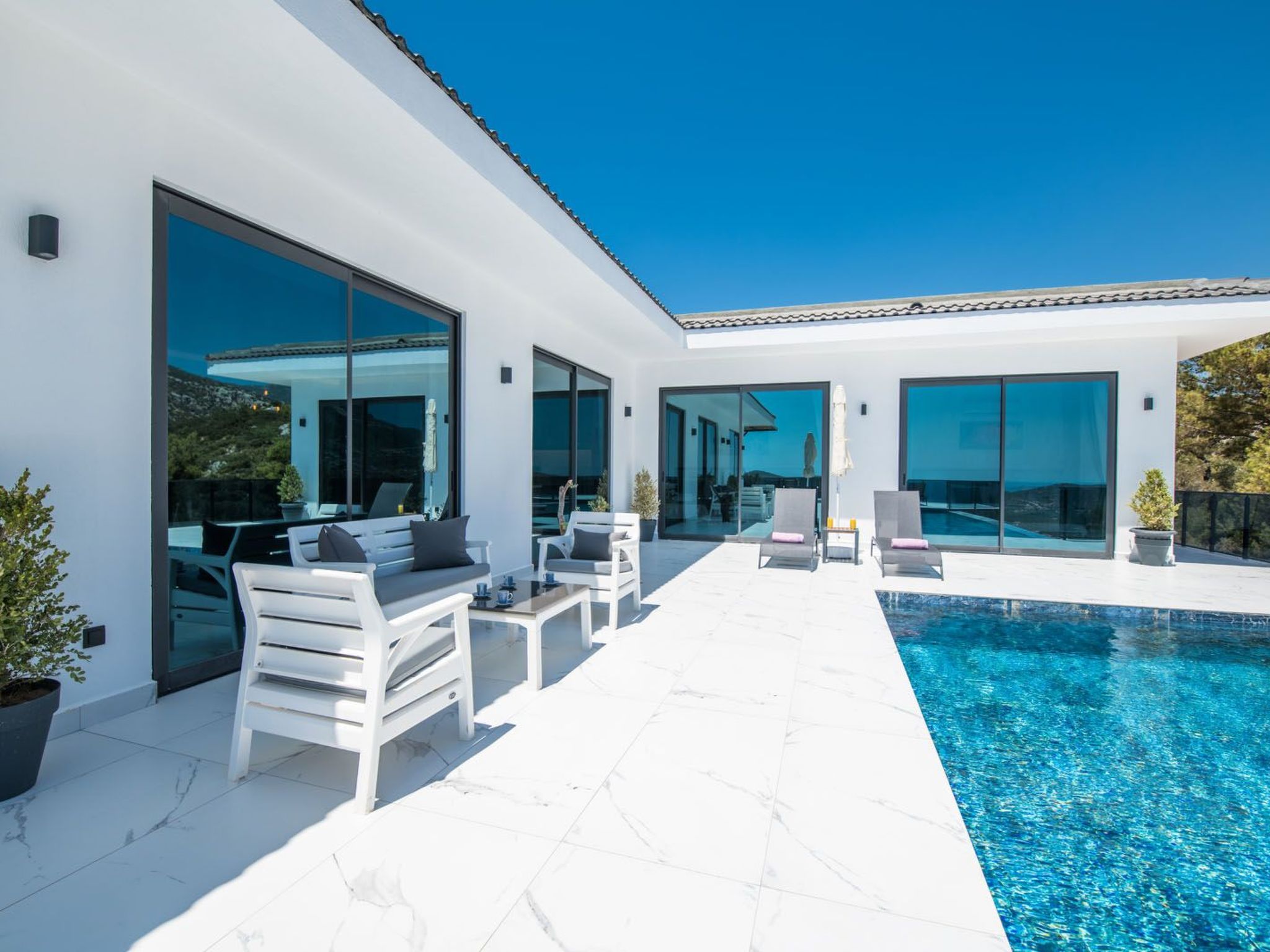 Im Außenbereich dieses Ferienhauses wird Ihr Urlaub zu einem wahren Erlebnis. Die großzügige Terrasse bietet nicht nur einen spektakulären Blick auf das Meer, sondern ist auch der perfekte Ort für gemeinsame Mahlzeiten im Freien oder entspannte Stunden bei einem Glas Wein. Der private Pool lädt zu erfrischenden Bademomenten ein und der zum Haus gehörende Garten verspricht Ruhe und Entspannung inmitten grüner Natur. Hier können Sie abschalten und die Alltagssorgen vergessen.