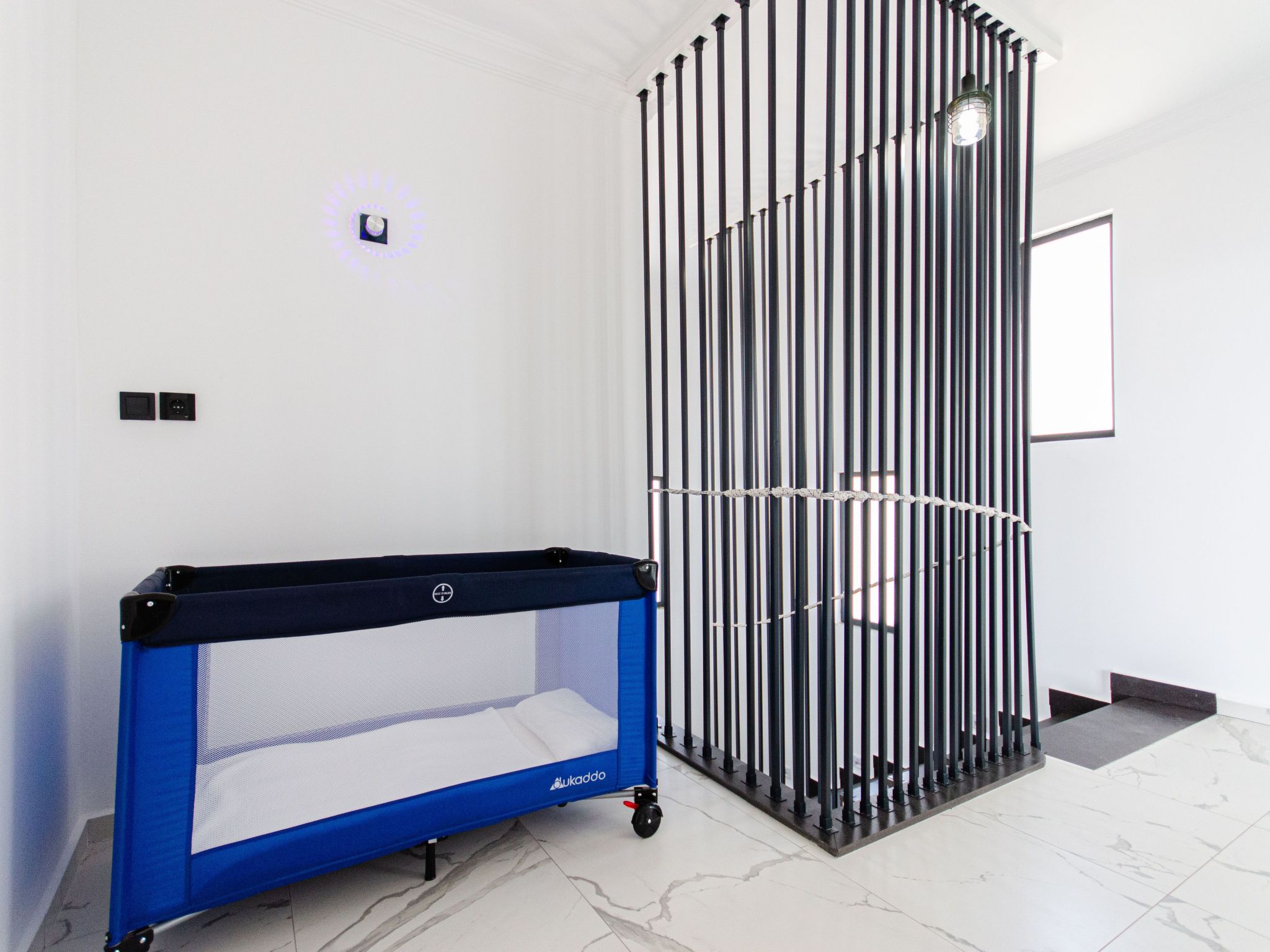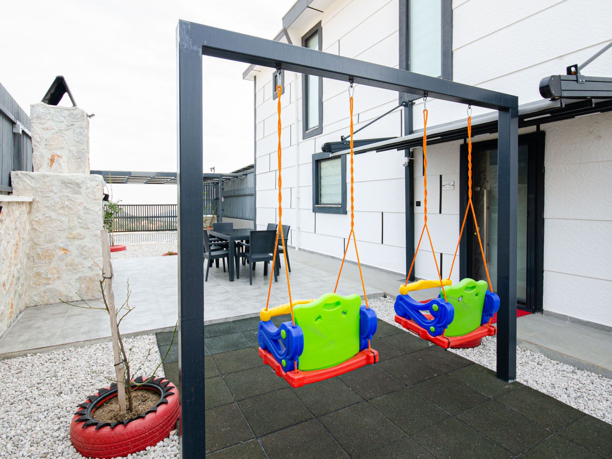 Der Außenbereich dieses Ferienhauses lässt keine Wünsche offen. Genießen Sie ungestörte Stunden am Pool, der exklusiv Ihnen zur Verfügung steht. Für Kinder gibt es einen separaten Pool, was für zusätzliche Sicherheit und Vergnügen sorgt. Die Terrasse und der Balkon laden zu gemütlichen Stunden im Freien ein, während der zur alleinigen Nutzung bestimmte Garten Spiel- und Entspannungsmöglichkeiten bietet.