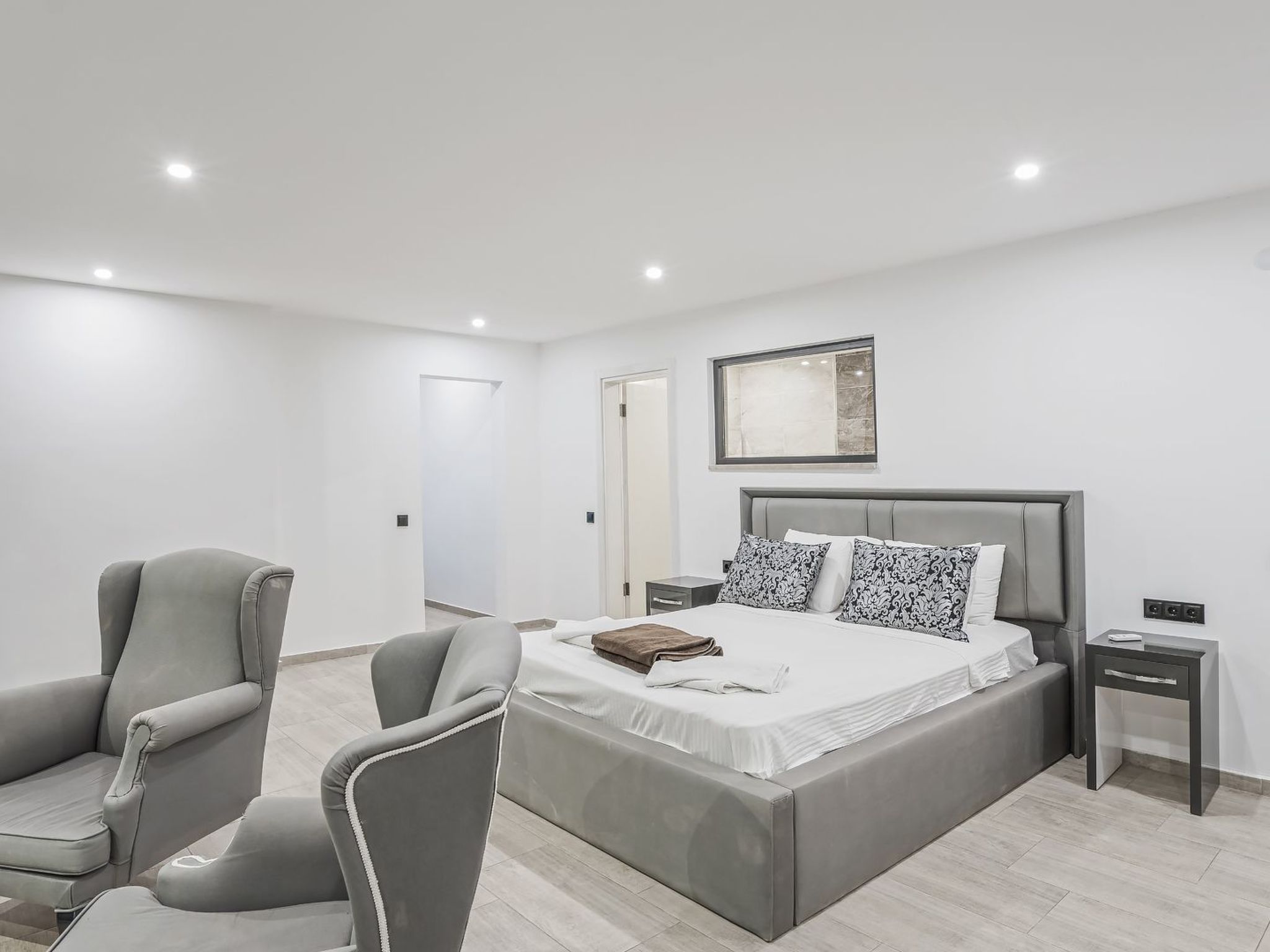 Innen erwartet Sie eine voll ausgestattete Unterkunft, die keine Wünsche offenlässt. Jedes der vier Schlafzimmer ist sorgfältig eingerichtet, um Komfort und Erholung zu gewährleisten. Zudem sorgt eine Klimaanlage in allen Räumen für angenehme Temperaturen, unabhängig von der Außenhitze. Eine moderne Küche, ausgerüstet mit Gasherd, Spülmaschine, Kaffeemaschine, Wasserkocher und vielem mehr, erlaubt die Zubereitung leckerer Mahlzeiten, die dann gemeinsam in der gemütlichen Essgegend genossen werden können. Eine Waschmaschine steht Ihnen ebenfalls zur Verfügung, um auch längere Aufenthalte so komfortabel wie möglich zu gestalten.