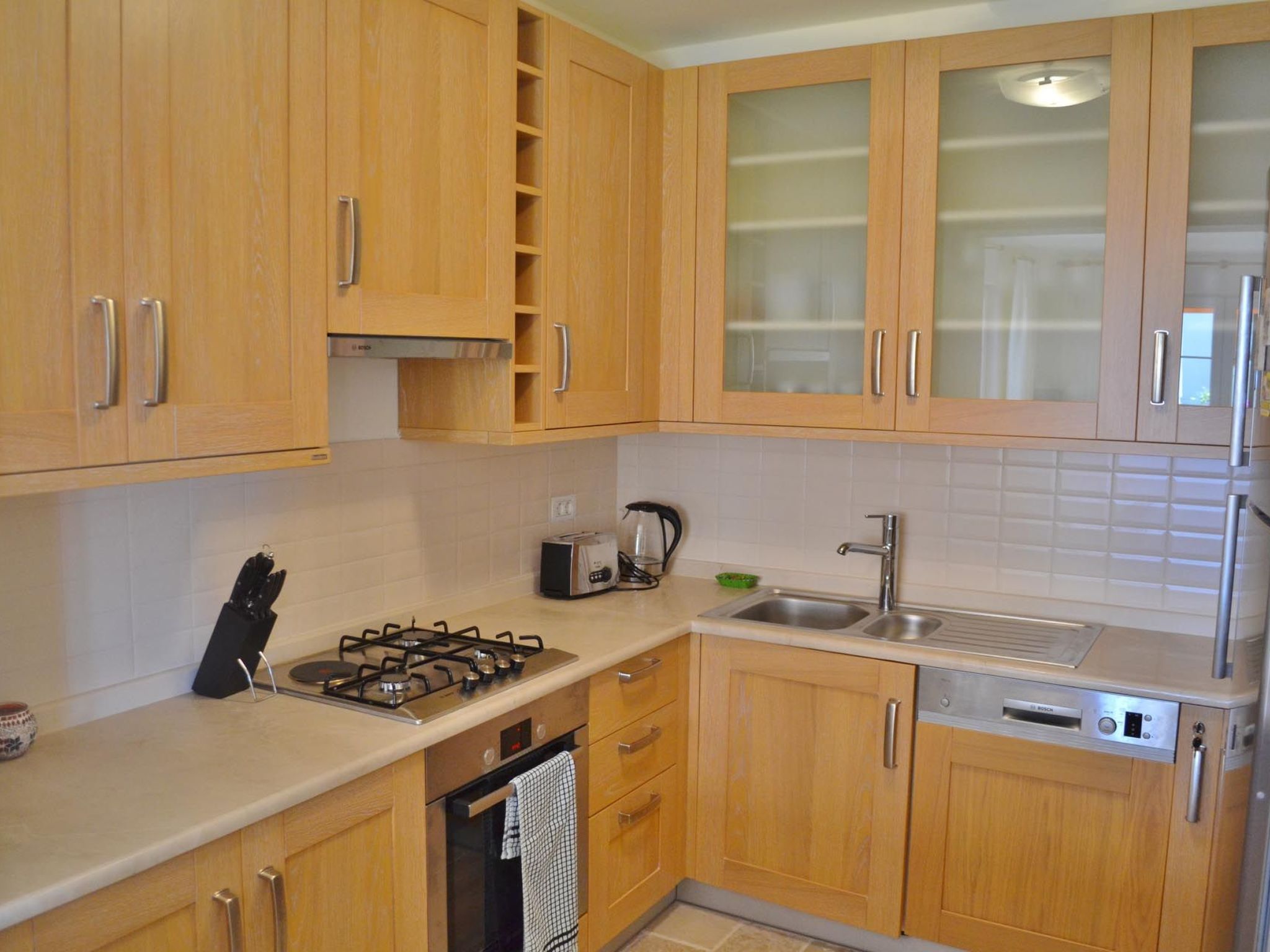 Im Inneren wartet das Ferienhaus mit allen Annehmlichkeiten auf, die notwendig sind, um Ihren Aufenthalt angenehm und unbeschwert zu gestalten. Dazu gehören nicht nur drei behagliche Schlafzimmer, die sich perfekt abdunkeln lassen für eine erholsame Nacht, sondern auch zwei modern ausgestattete Badezimmer mit Dusche. Eine Klimaanlage in allen Räumen sorgt auch bei hohen Temperaturen für ein angenehmes Raumklima, während die zur alleinigen Nutzung bereitstehende Waschmaschine, der Gasherd, die Spülmaschine und der Wasserkocher den Komfort vervollständigen. Die Nutzung von Solarenergie unterstreicht das umweltfreundliche Konzept dieses Hauses.