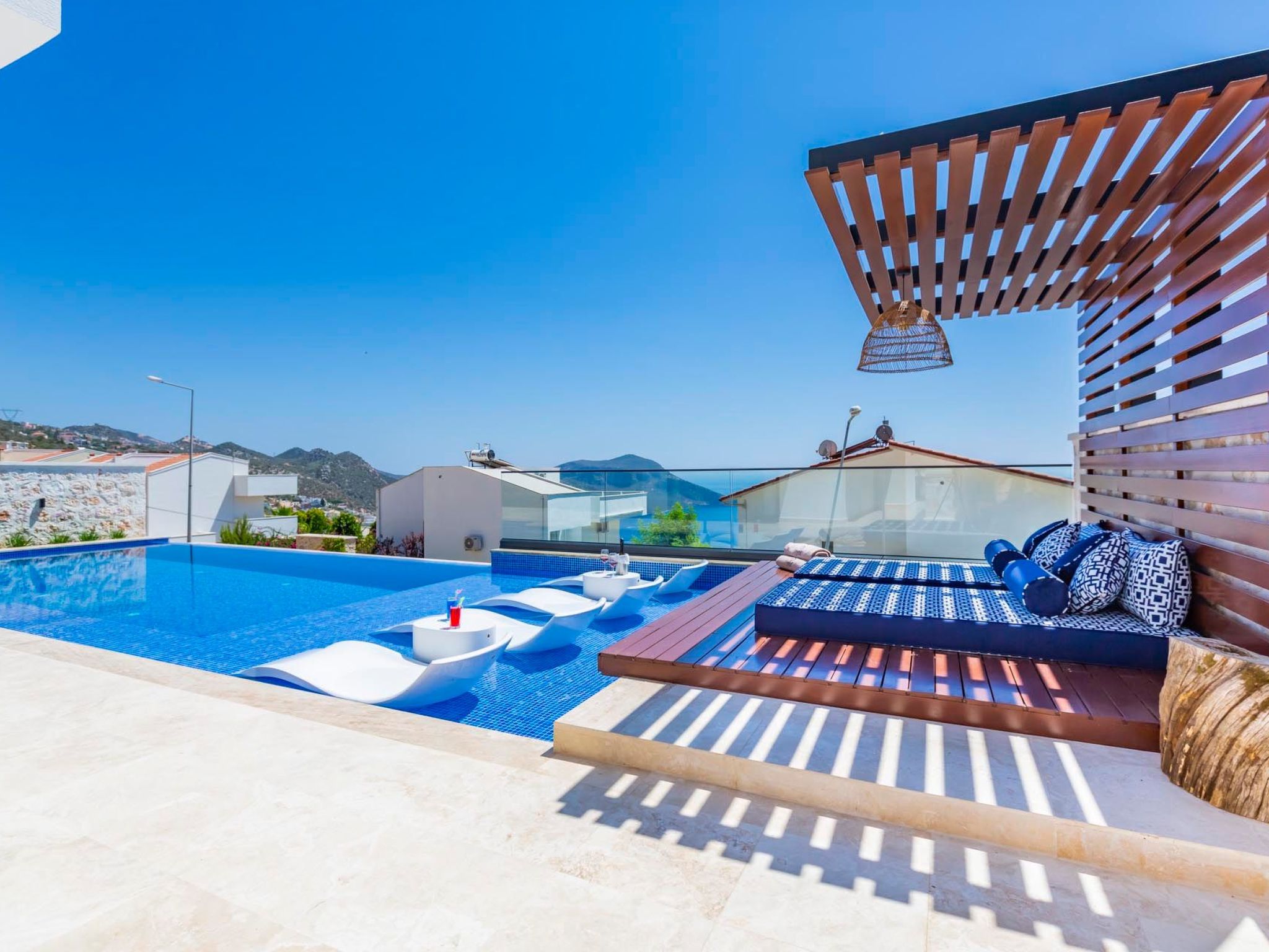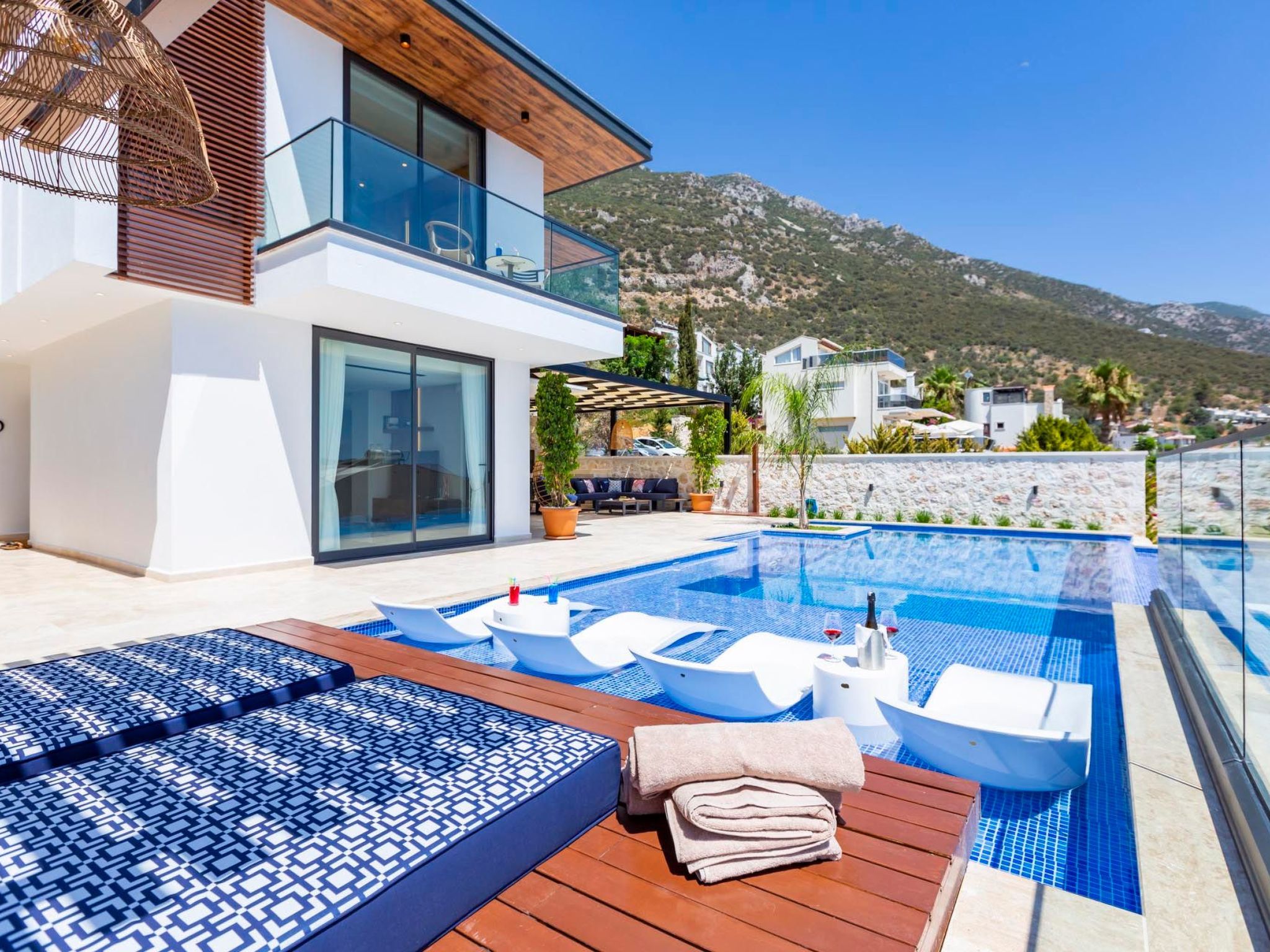 Dieses Ferienhaus in Kalkan bietet Ihnen eine exklusive Auszeit mit sämtlichen Annehmlichkeiten für einen unvergesslichen Urlaub. Genießen Sie die Ruhe und Privatsphäre Ihres eigenen Gartens, erfrischen Sie sich im privaten Pool und erkunden Sie die reizvolle Umgebung von Kalkan. Hier verbinden sich Komfort, Privatsphäre und die Nähe zu lokalen Attraktionen zu einem perfekten Urlaubserlebnis.