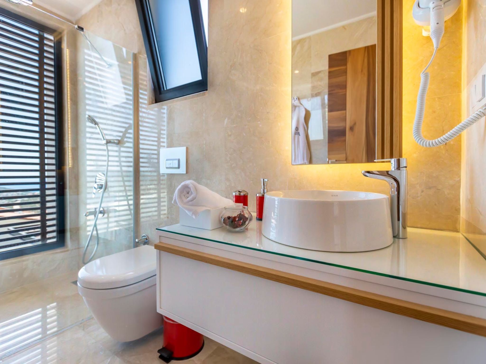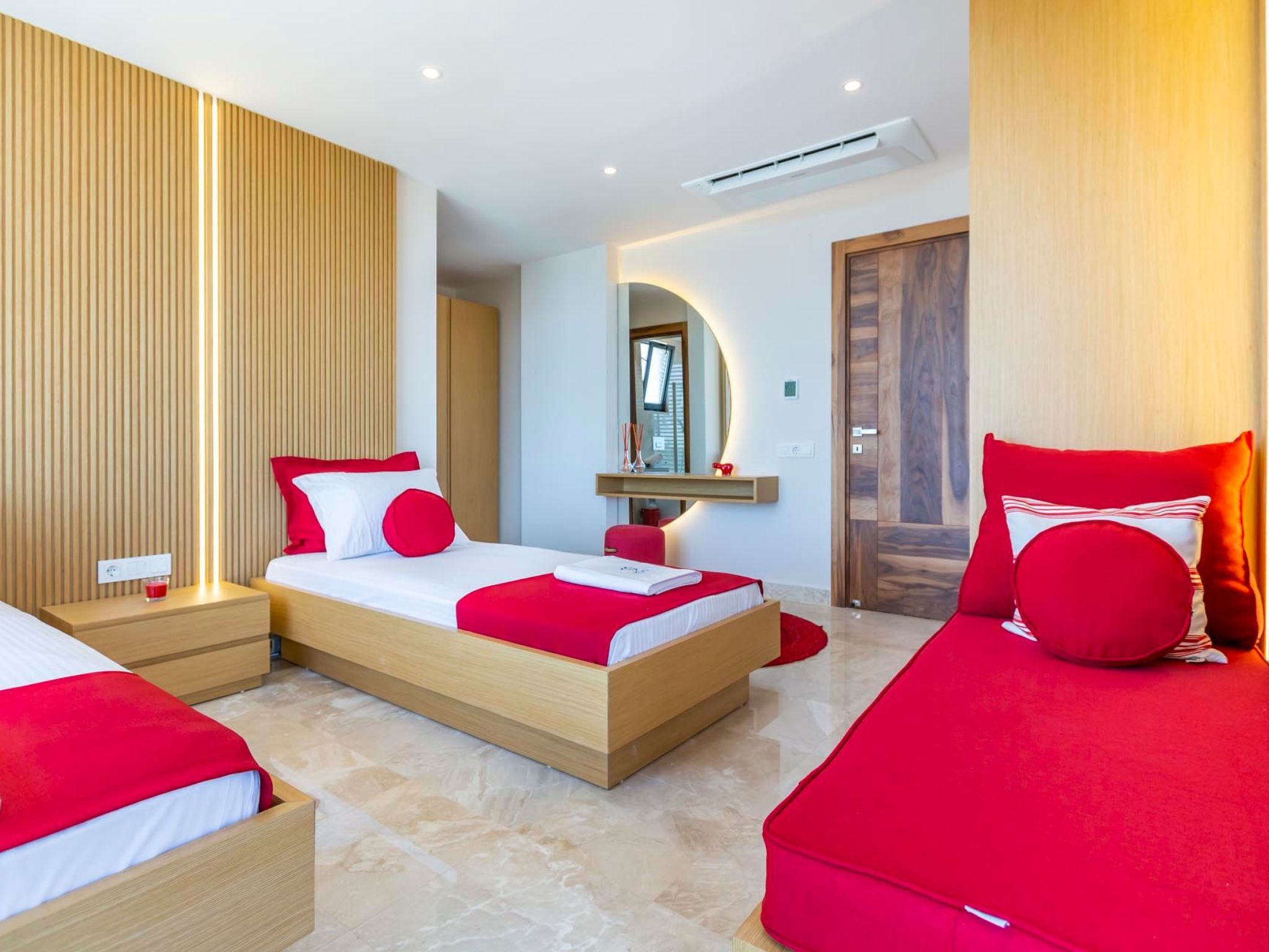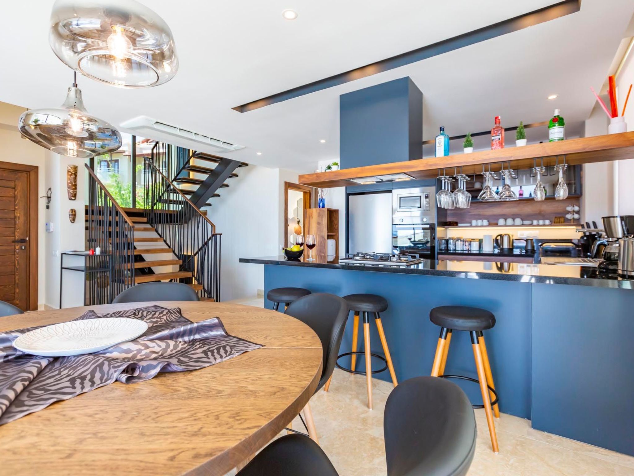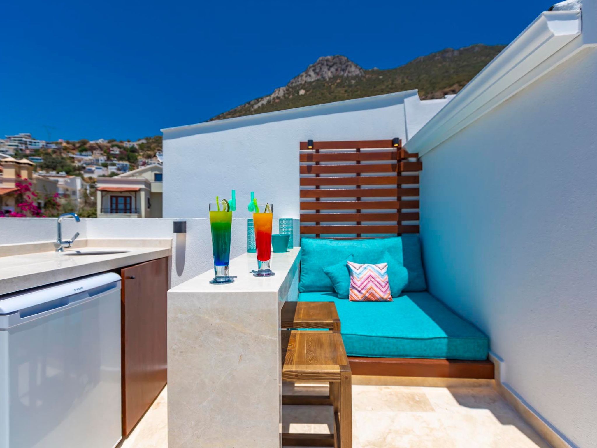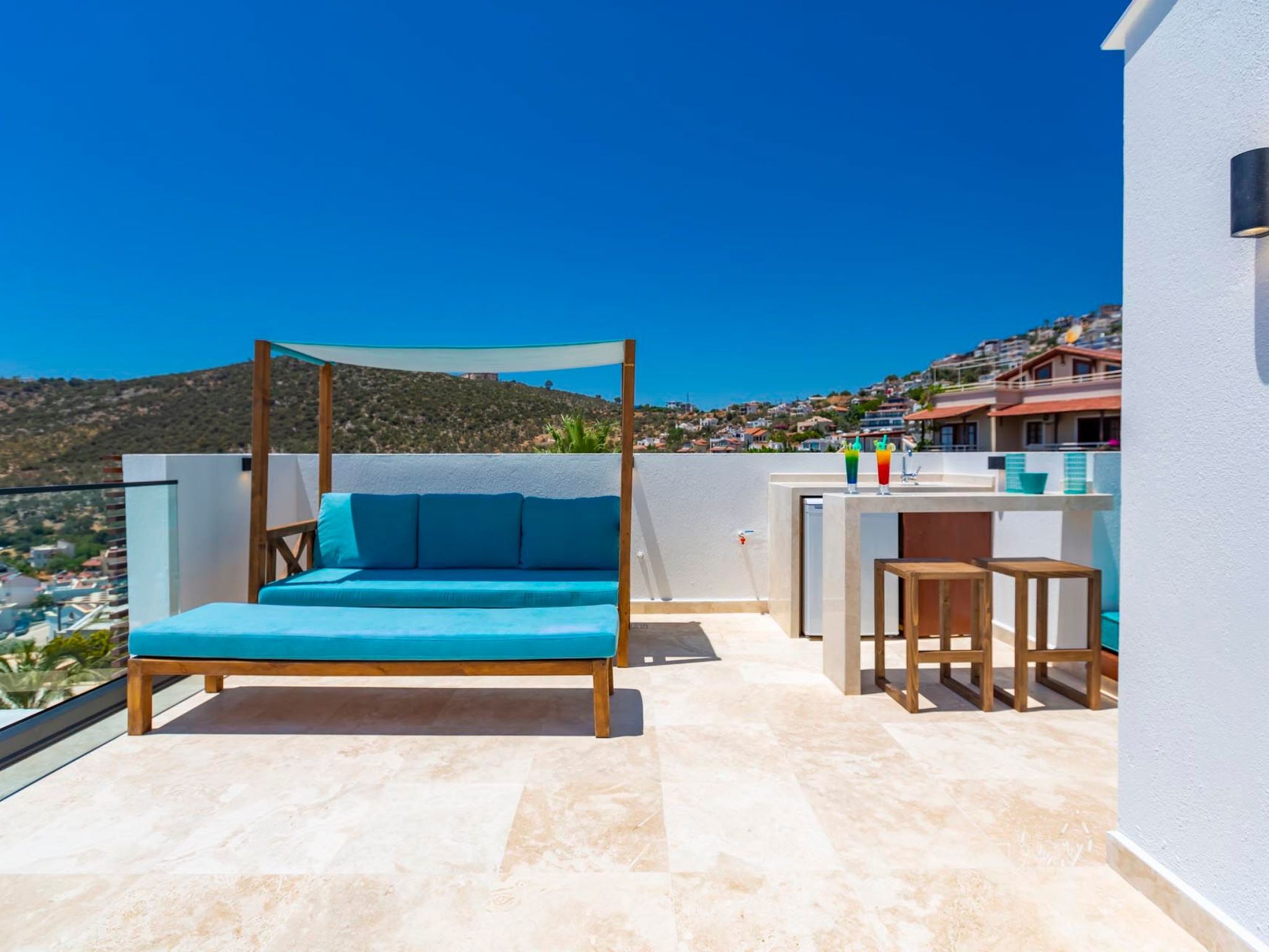 Entdecken Sie das ideale Feriendomizil für einen entspannten Urlaub in Kalkan, Anatolien. Dieses freistehende Ferienhaus empfängt Sie mit seiner einladenden Atmosphäre und bietet mit drei Schlafzimmern Platz für bis zu 6 Gäste. Mit seiner durchdachten Ausstattung garantiert es einen komfortablen Aufenthalt zu jeder Jahreszeit, dank der überall installierten Klimaanlage. Exklusive Ausstattungsmerkmale wie eine eigene Waschmaschine, ein Gasherd und eine Spülmaschine sorgen für zusätzlichen Komfort während Ihres Aufenthaltes.