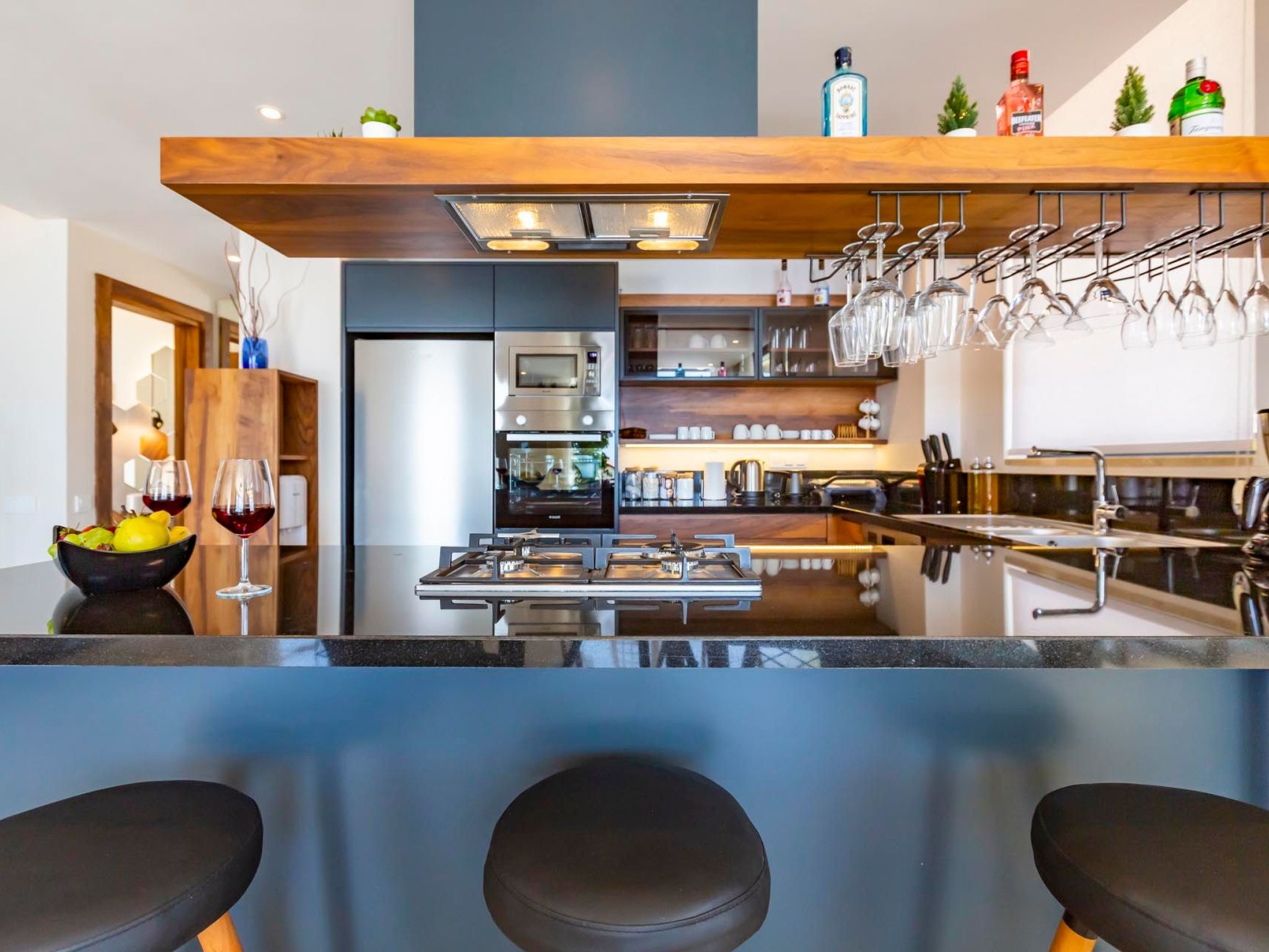 Im Inneren des Hauses trifft Funktionalität auf Komfort. Alle Schlafzimmer sind abdunkelbar, sodass Sie Ihren Schlaf nach Belieben gestalten können. Die drei Badezimmer, jeweils mit Dusche ausgestattet, versprechen einen reibungslosen Ablauf des täglichen Routines. Der Einsatz erneuerbarer Energien, durch Solarenergie, unterstreicht das nachhaltige Konzept dieses Ferienhauses. Für Unterhaltung ist ebenso gesorgt: Eine Auswahl an modernen Unterhaltungsmöglichkeiten erwartet Sie im Wohnbereich.