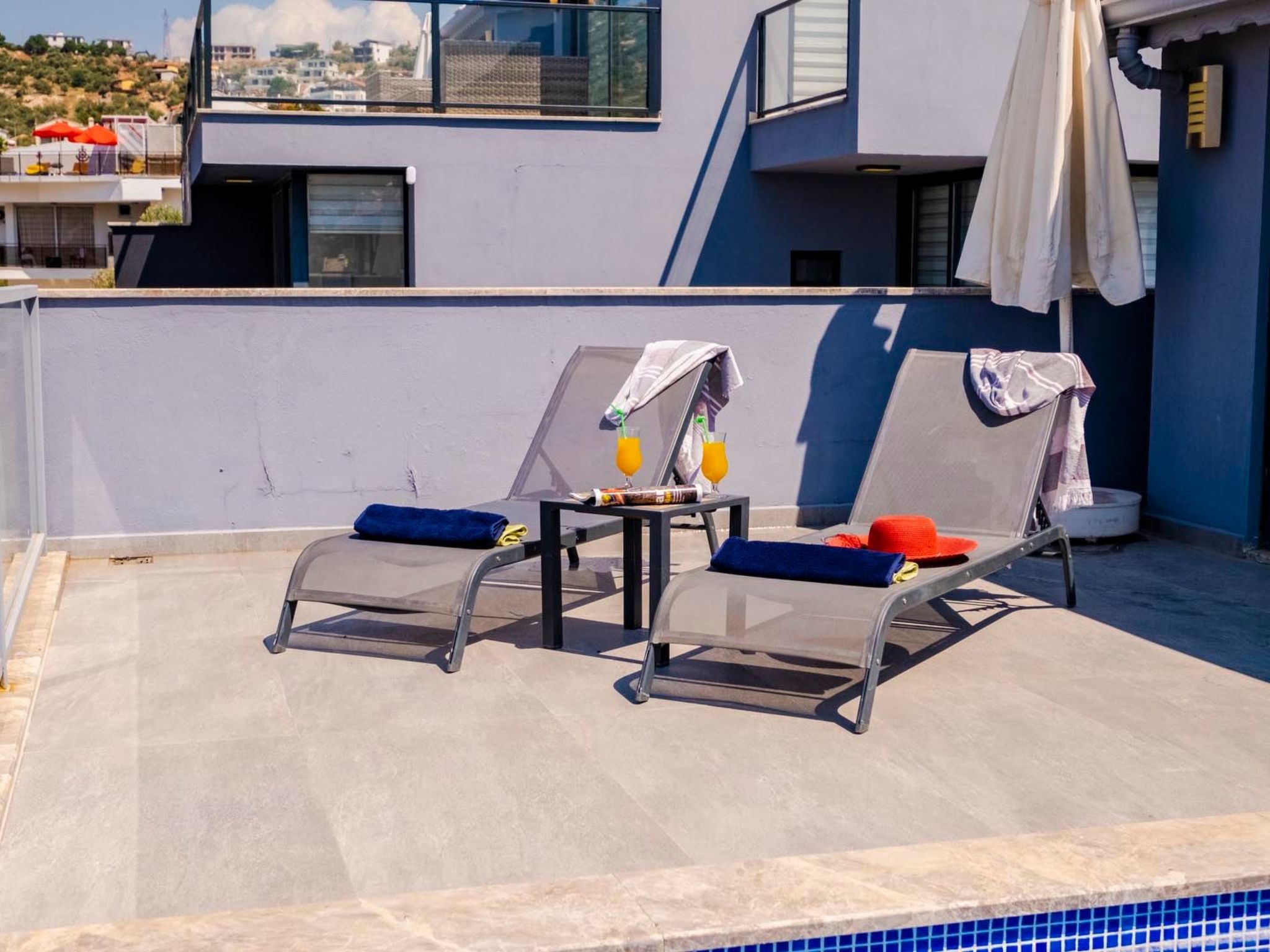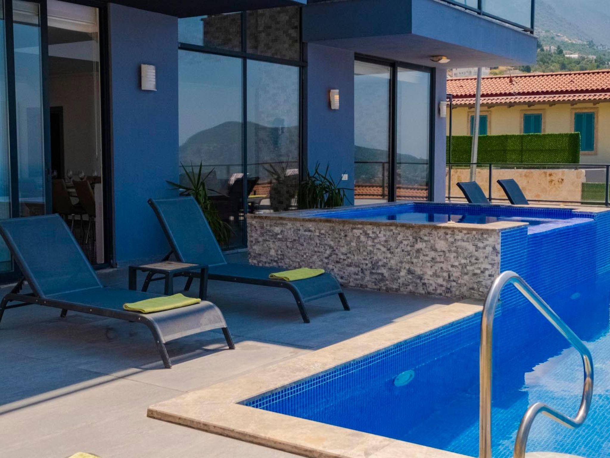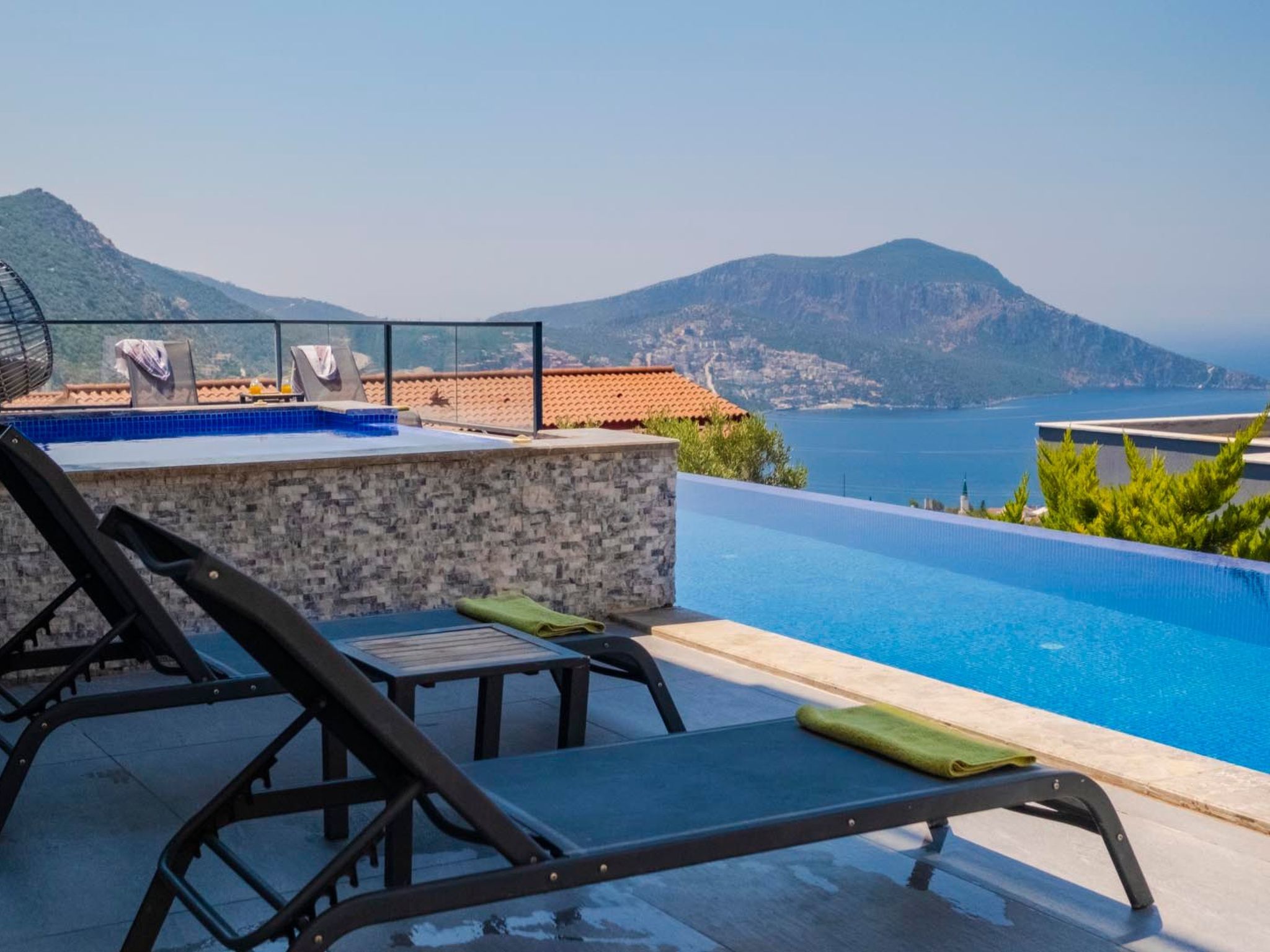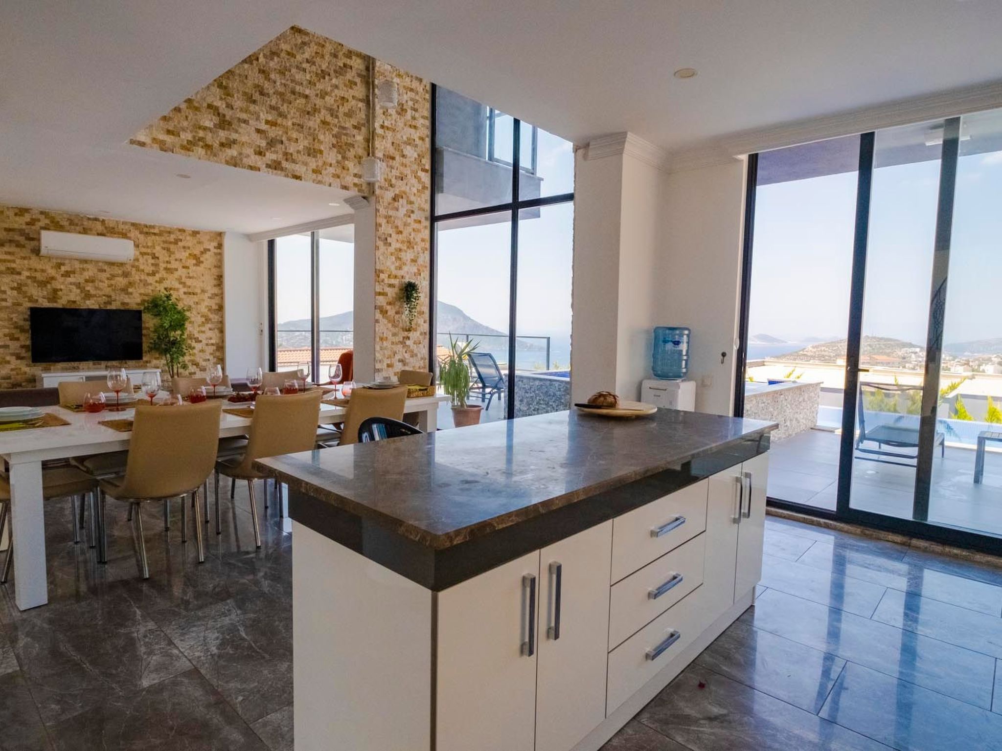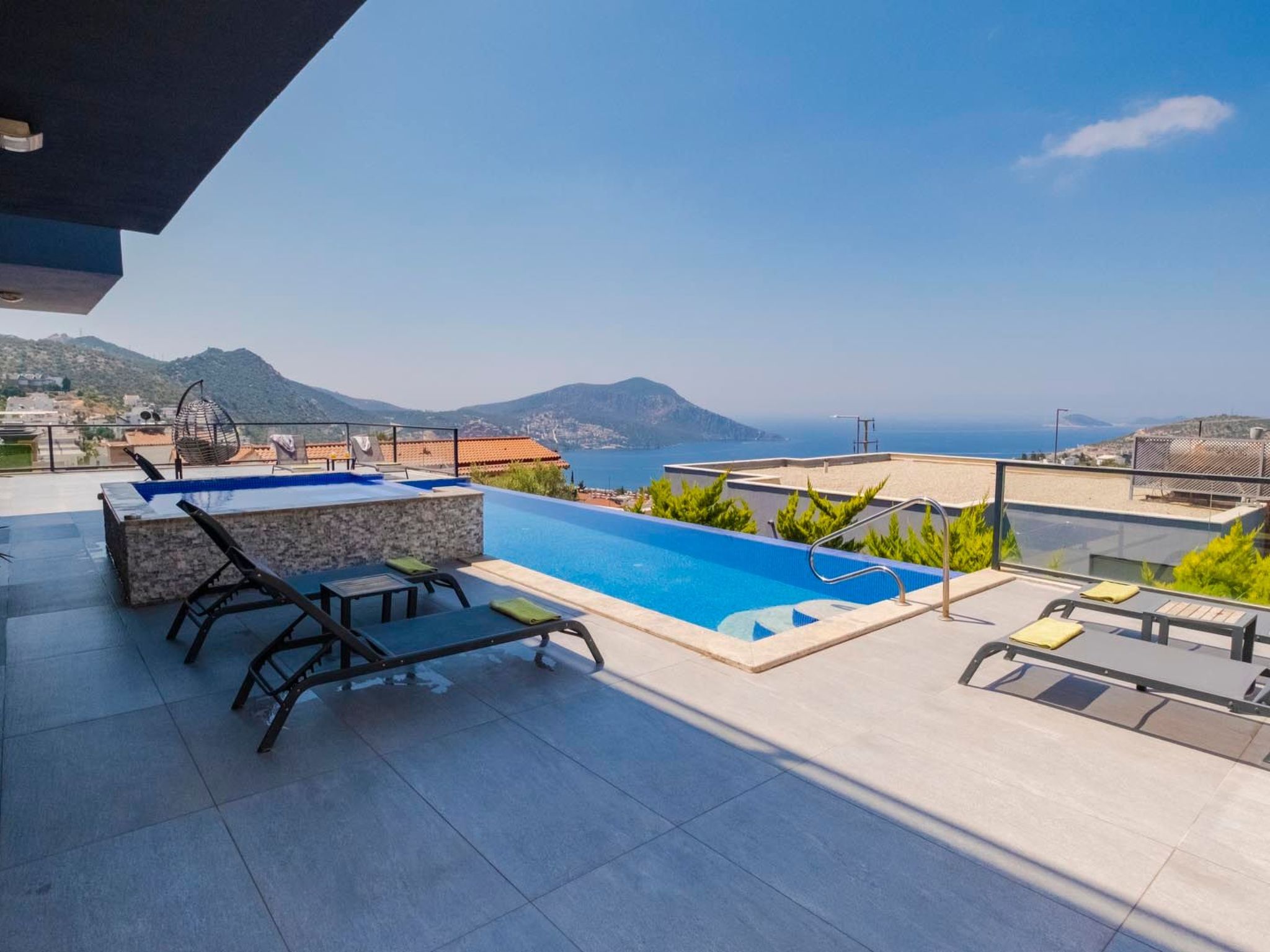 Der großzügige Außenwhirlpool bietet einen idealen Ort, um in entspannter Gesellschaft den Panoramablick auf das tiefblaue Meer und die umliegende Landschaft zu genießen. Die Villa bietet eine spektakuläre Aussicht, die sich perfekt in die Umgebung einfügt und zu jeder Tageszeit für unvergessliche Momente sorgt.