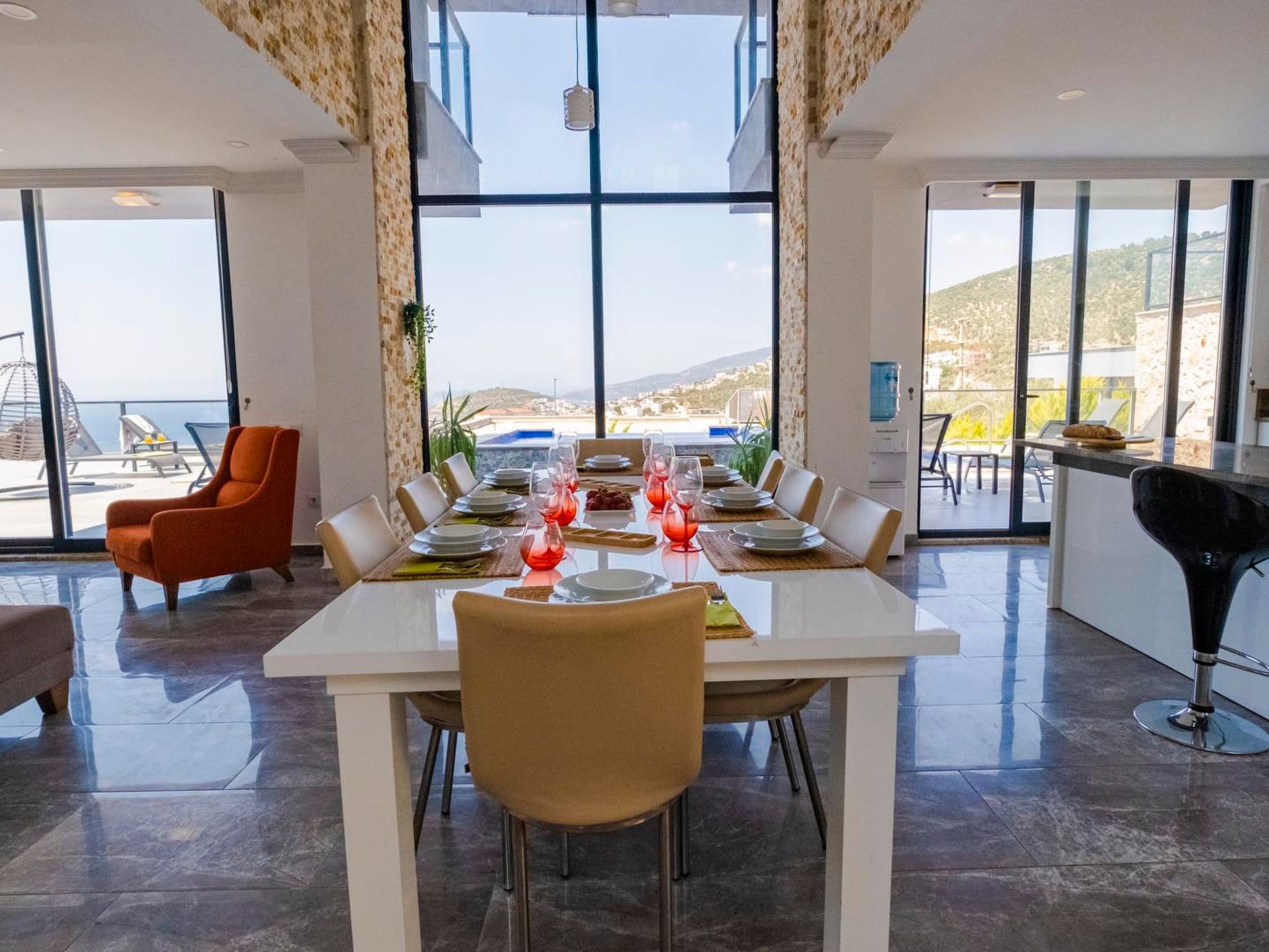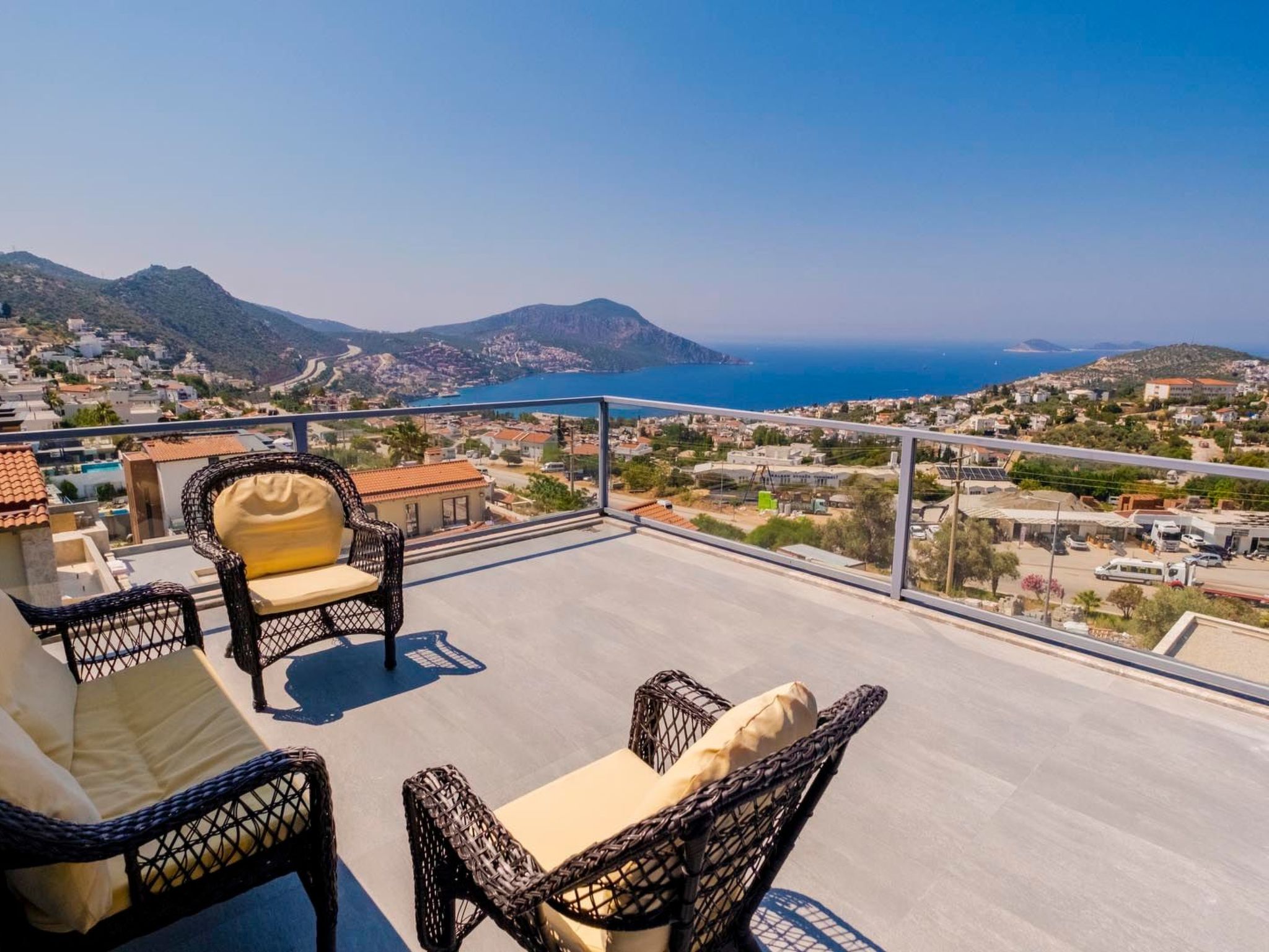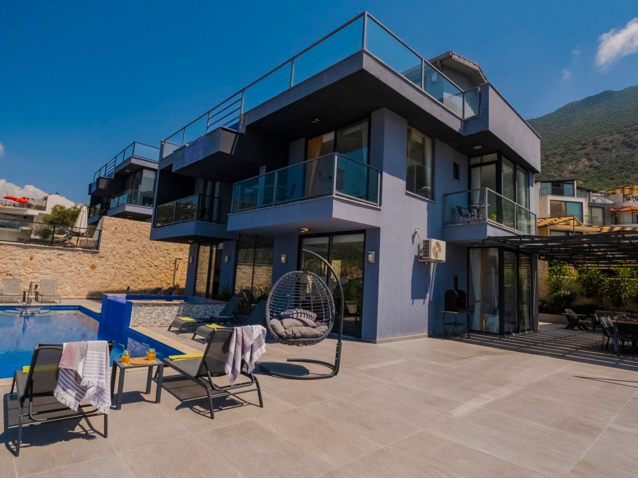 Diese beeindruckende Villa bietet Platz für bis zu 10 Personen und befindet sich in einer der exklusivsten Lagen – hoch oben in der Kızıltaş-Region von Kalkan. Ihre außergewöhnliche Architektur und die atemberaubende Aussicht machen sie zu einem wahren Juwel unter den Ferienunterkünften.