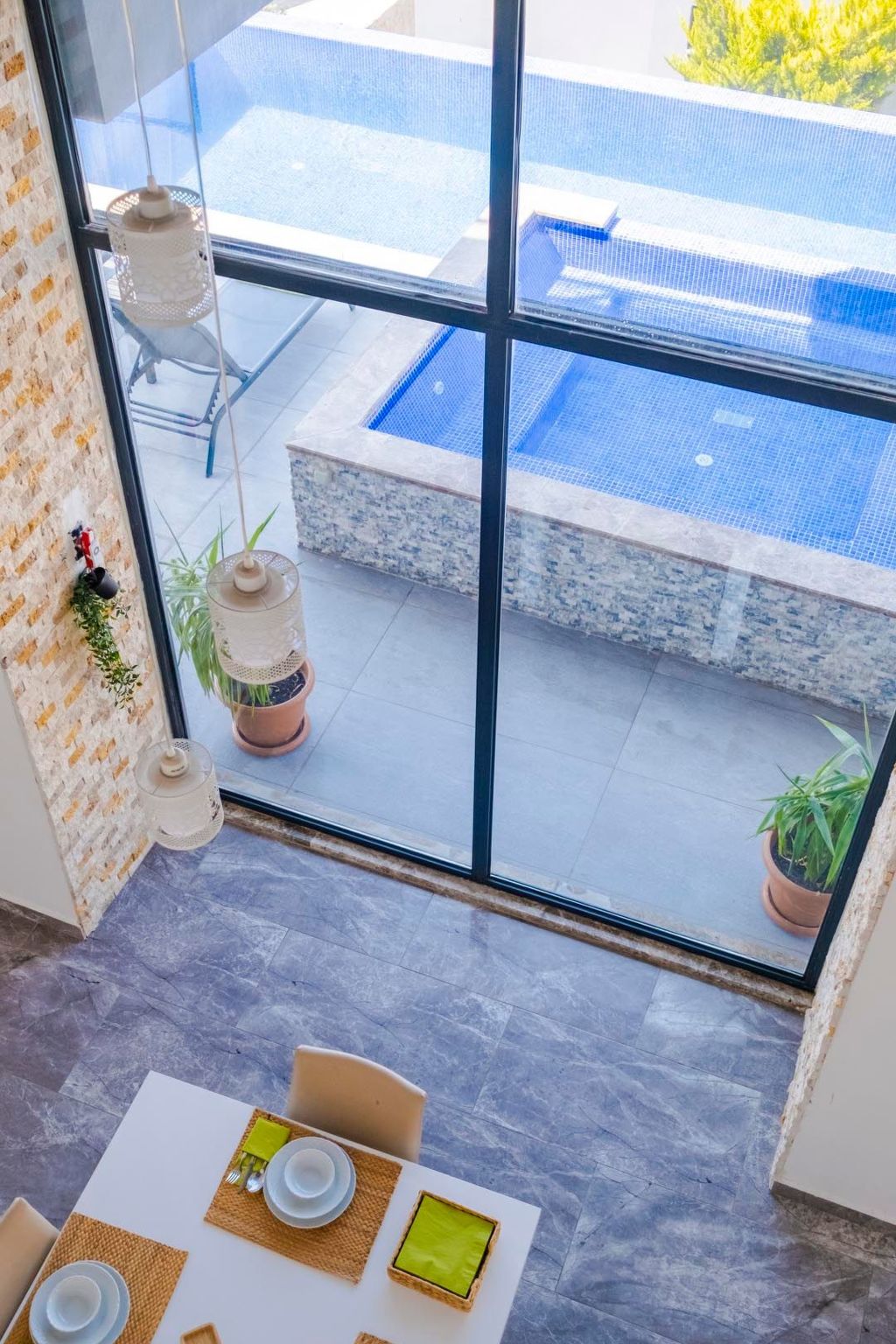 Vom Dach der Villa fließt ein malerischer Wasserfall hinunter bis zum Erdgeschoss, wo er auf den beeindruckenden Infinity-Pool trifft. Dieser fließende Übergang zwischen Wasser und Architektur verleiht der Villa eine einzigartige, ruhige Atmosphäre, die jeden Aufenthalt zu einem besonderen Erlebnis macht.