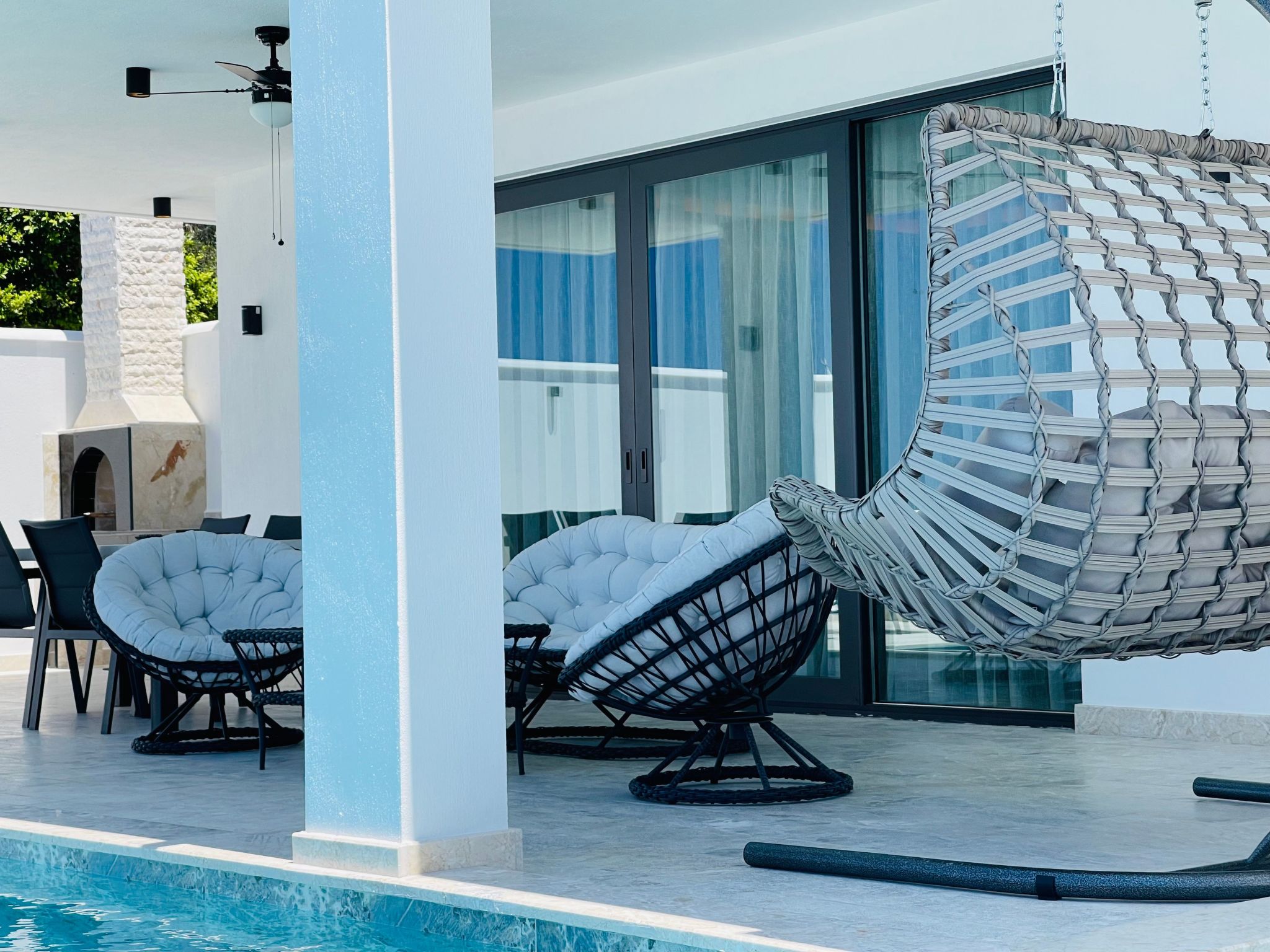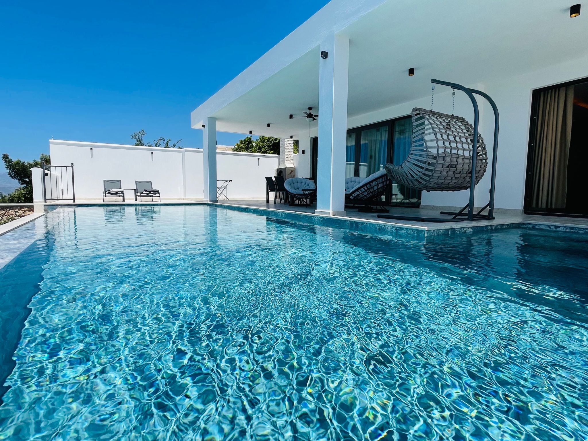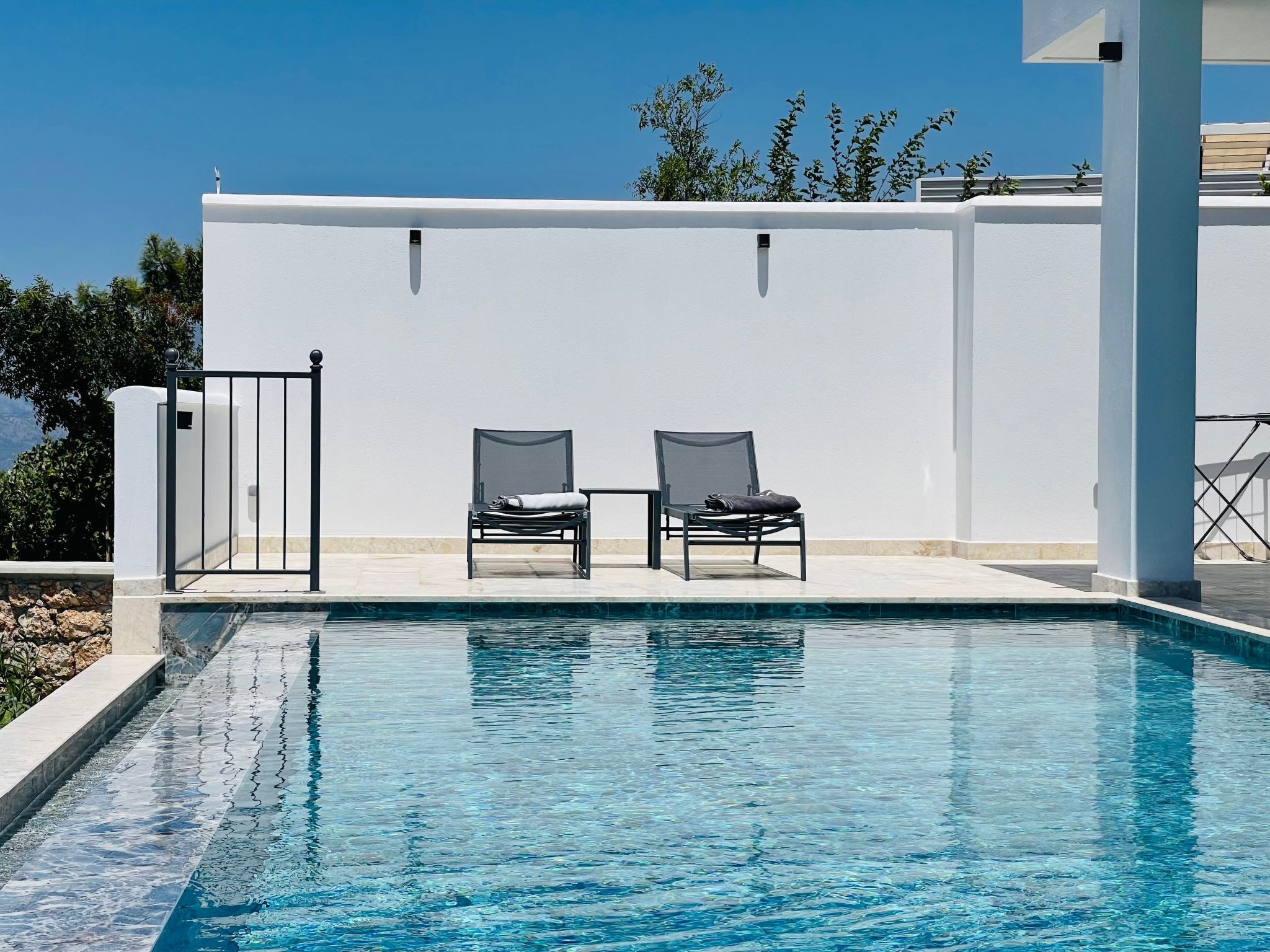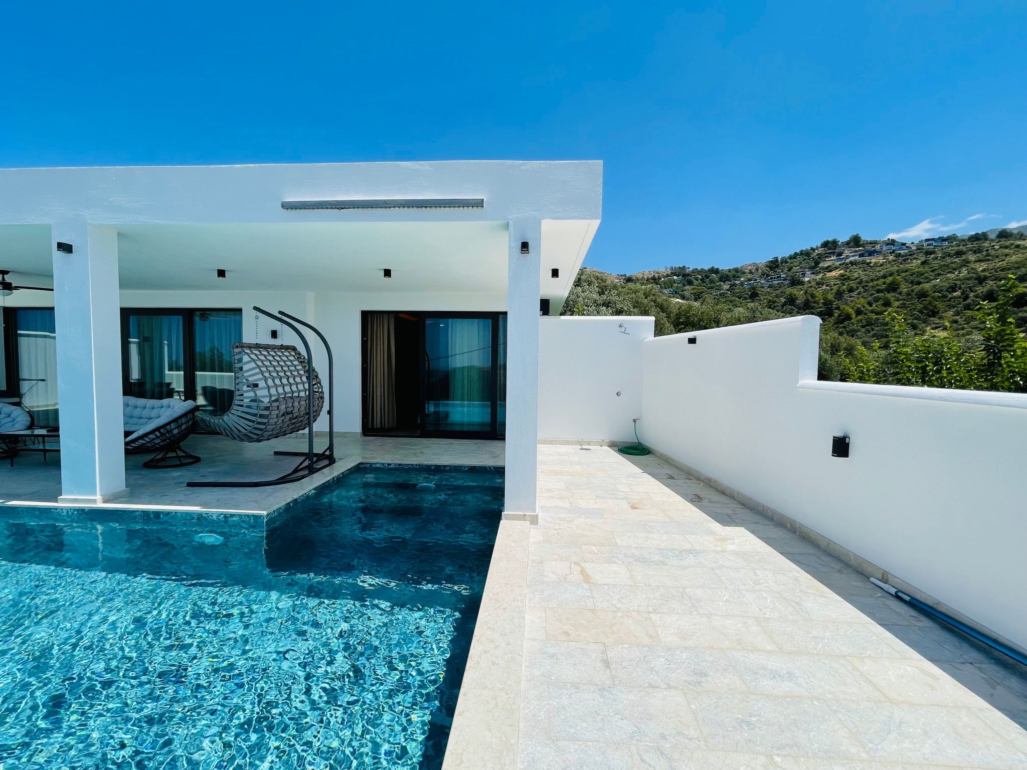 Draußen erwartet Sie ein privater Garten, der zu entspannten Stunden unter freiem Himmel einlädt. Der Pool, der ausschließlich Ihnen zur Verfügung steht, bietet eine willkommene Erfrischung an heißen Tagen. Ergänzt wird das Außenangebot durch eine Terrasse, die den perfekten Rahmen für ein Essen im Freien oder einfach nur zum Entspannen bietet. Lassen Sie sich vom Gesang der Vögel verzaubern und genießen Sie die Ruhe, die dieser Ort zu bieten hat.
