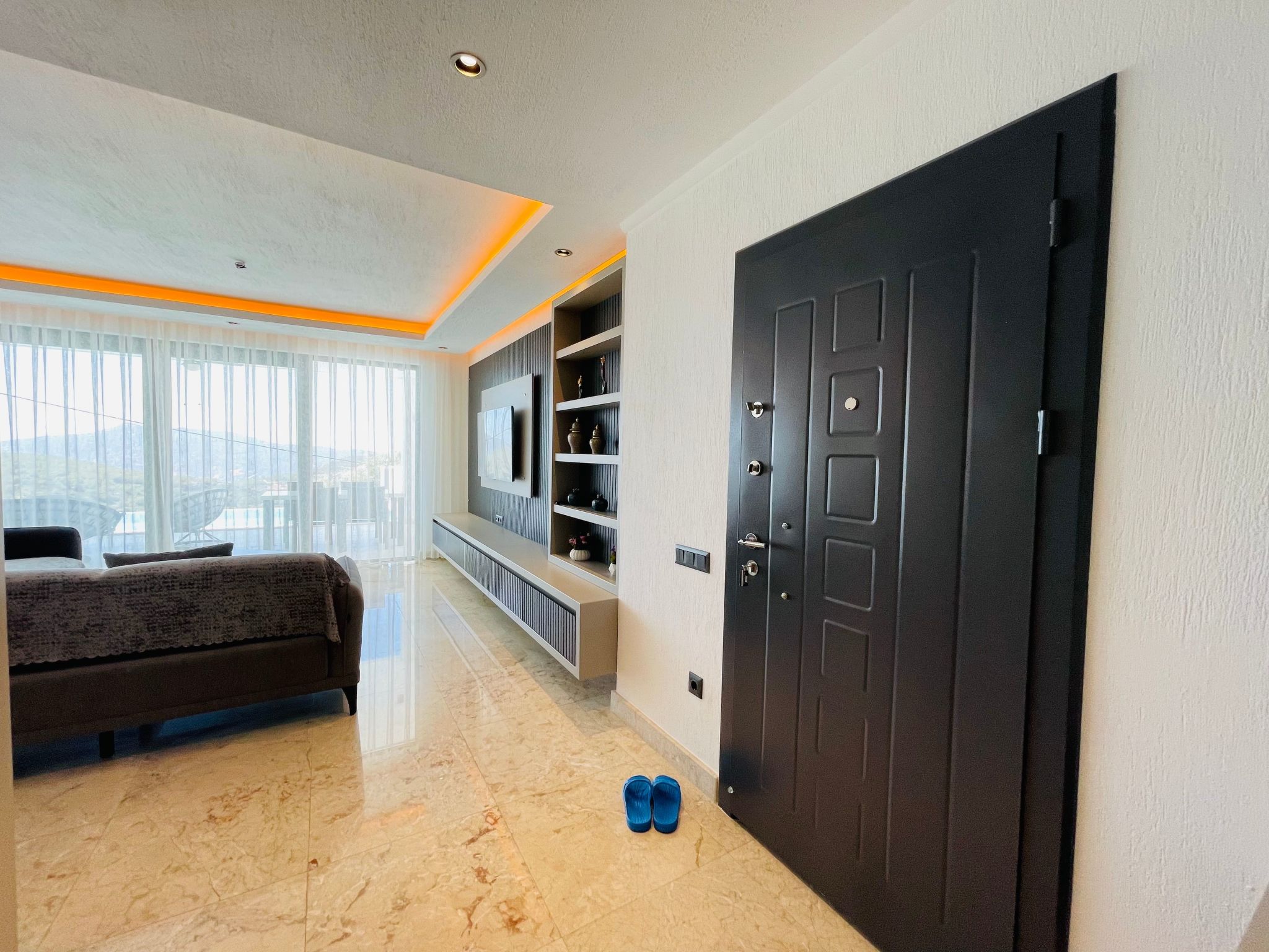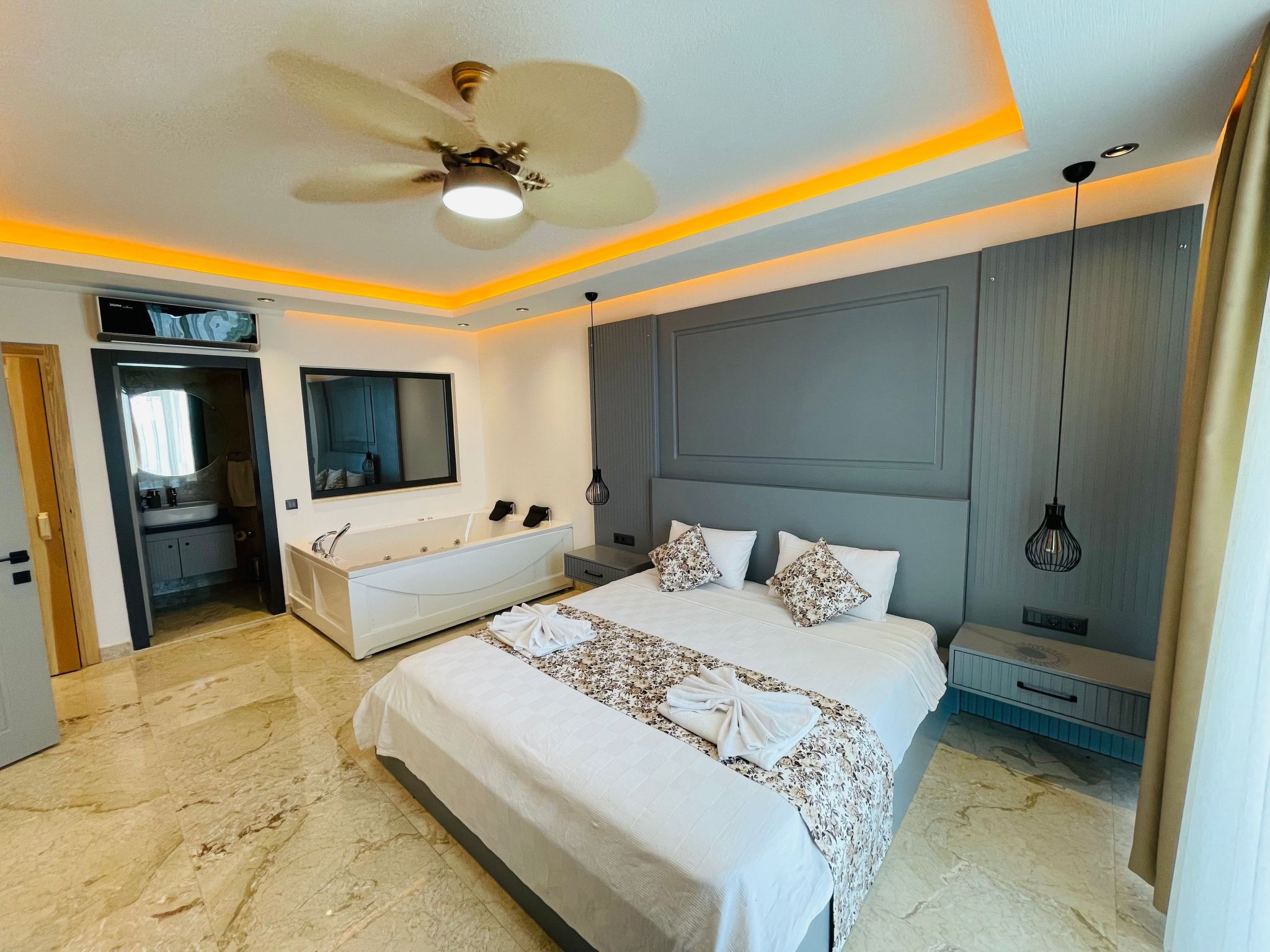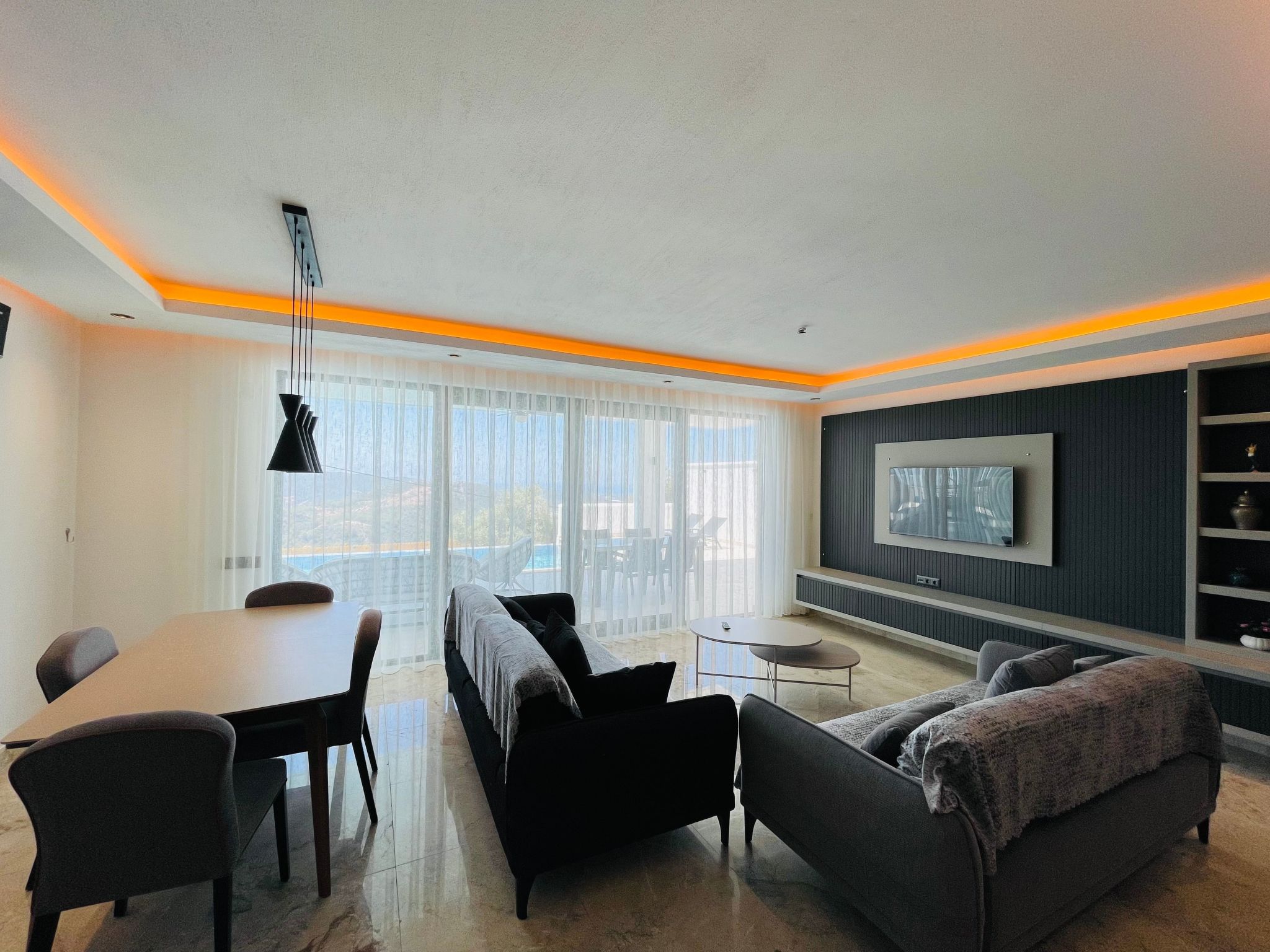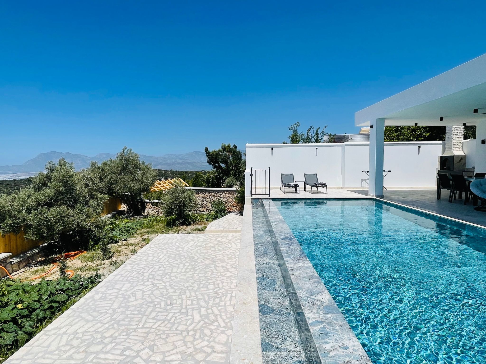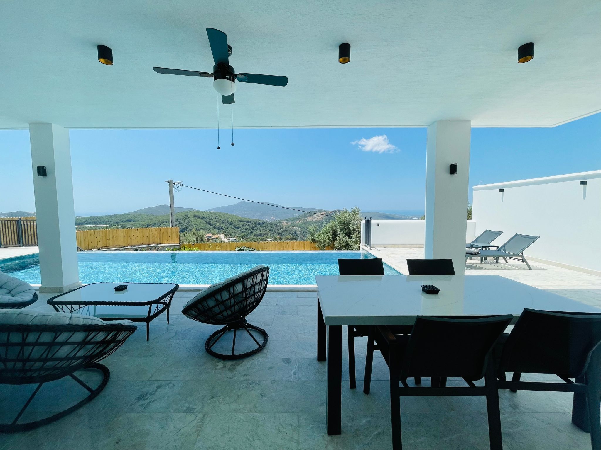 Entdecken Sie das perfekte Ferienhaus für zwei in Üzümlü, Anatolien – ein idyllischer Rückzugsort für Paare, der Ihnen und Ihrer besseren Hälfte absolute Privatsphäre inmitten der atemberaubenden Natur bietet. Eingebettet in die malerische Region Üzümlü bei Kalkan, präsentiert sich dieses freistehende Domizil als Oase der Ruhe. Hier, fernab von Lärm und Hektik, können Sie unvergessliche Momente in trauter Zweisamkeit erleben – ideal für frisch Verliebte oder für eine romantische Auszeit. Die Villa zeichnet sich durch ihre erhöhte Lage aus, die nicht nur für frische Luft sorgt, sondern auch einen faszinierenden Blick auf die umgebende Naturlandschaft freigibt.