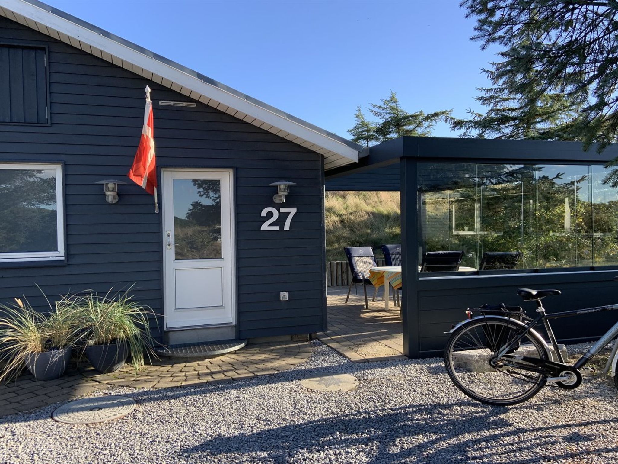 Einfamilienhaus, Baujahr 1988. 500 m vom Meer. Zur Alleinbenutzung: naturbelassenes Grundstück 2'400 m2. Aussendusche, Terrasse (124 m2), Kinderspielplatz (Schaukel). Im Hause: Sauna, Waschmaschine, Wäschetrockner. Parkplatz beim Haus. E-Ladestation. Lebensmittelgeschäft 950 m. Der Besitzer akzeptiert keine Jugendgruppen.