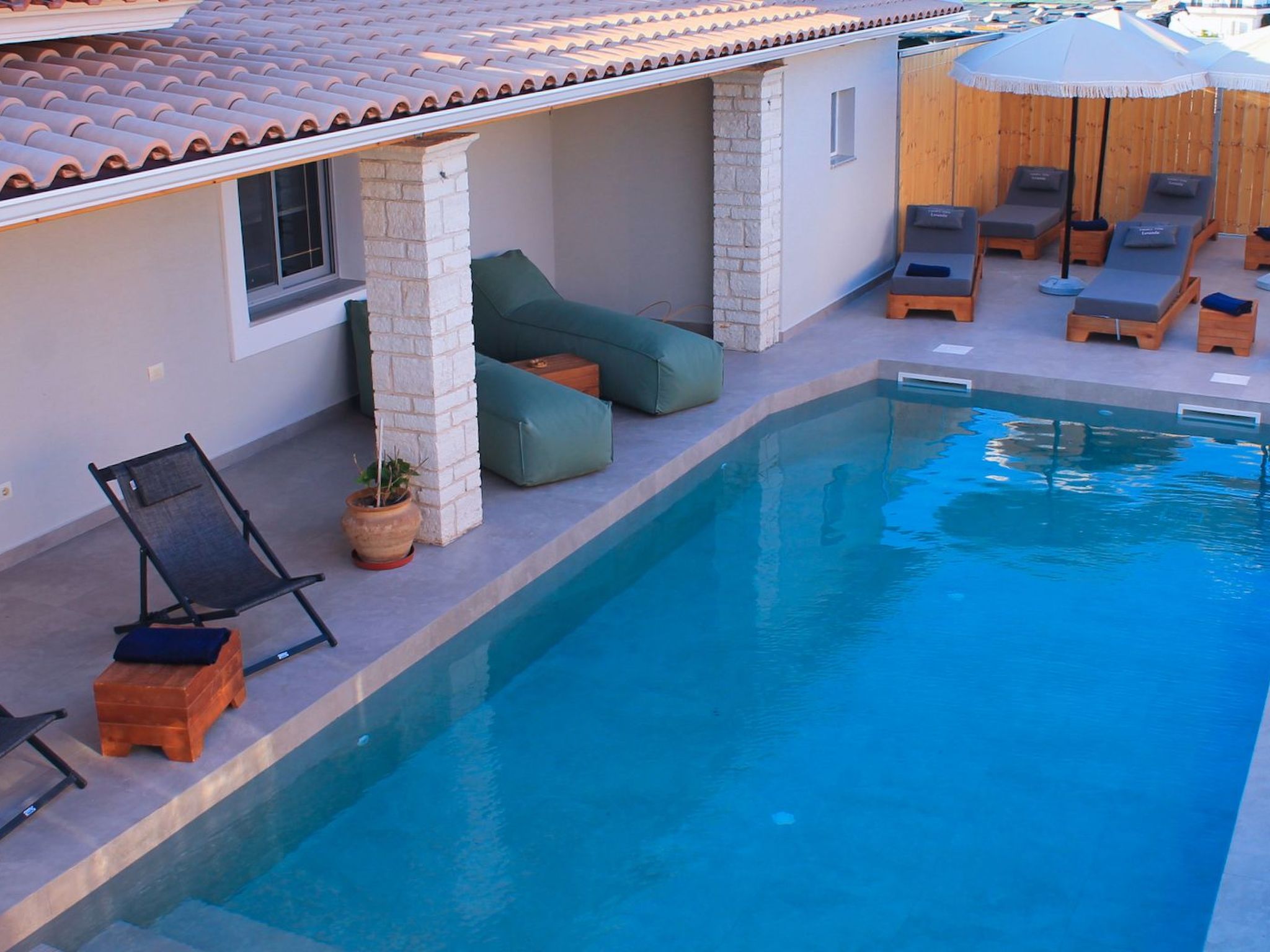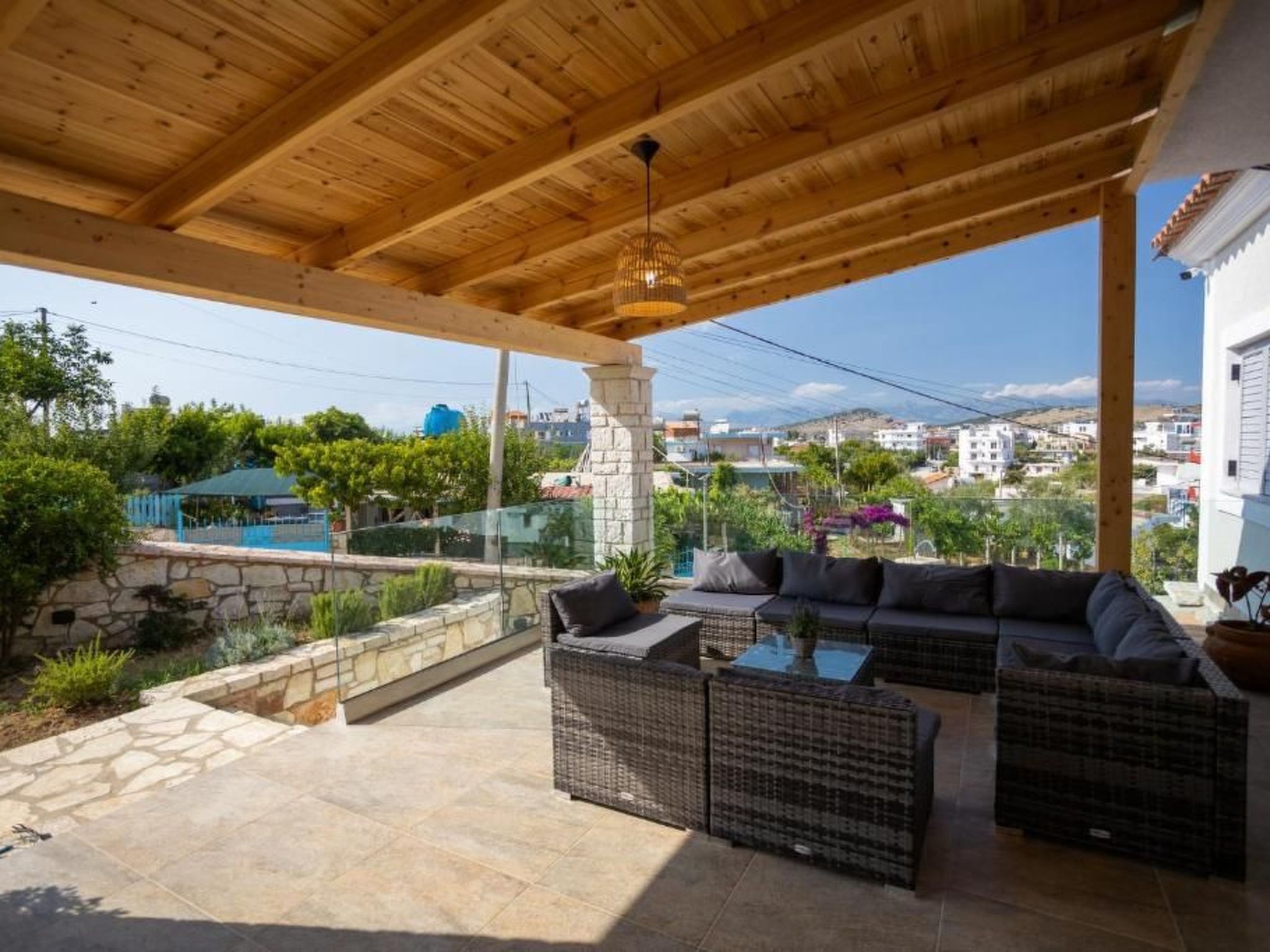 Betreten Sie den weitläufigen Innenhof, der von einem sorgfältig angelegten Garten umgeben ist, der mit einladenden Möbeln ausgestattet ist, die die Bühne für gemütliche Nachmittage und Mahlzeiten im Freien unter dem Sternenhimmel bilden. Die Nähe der Villa zu den faszinierenden Sandstränden sorgt dafür, dass das Strandglück nur einen kurzen Spaziergang entfernt ist.