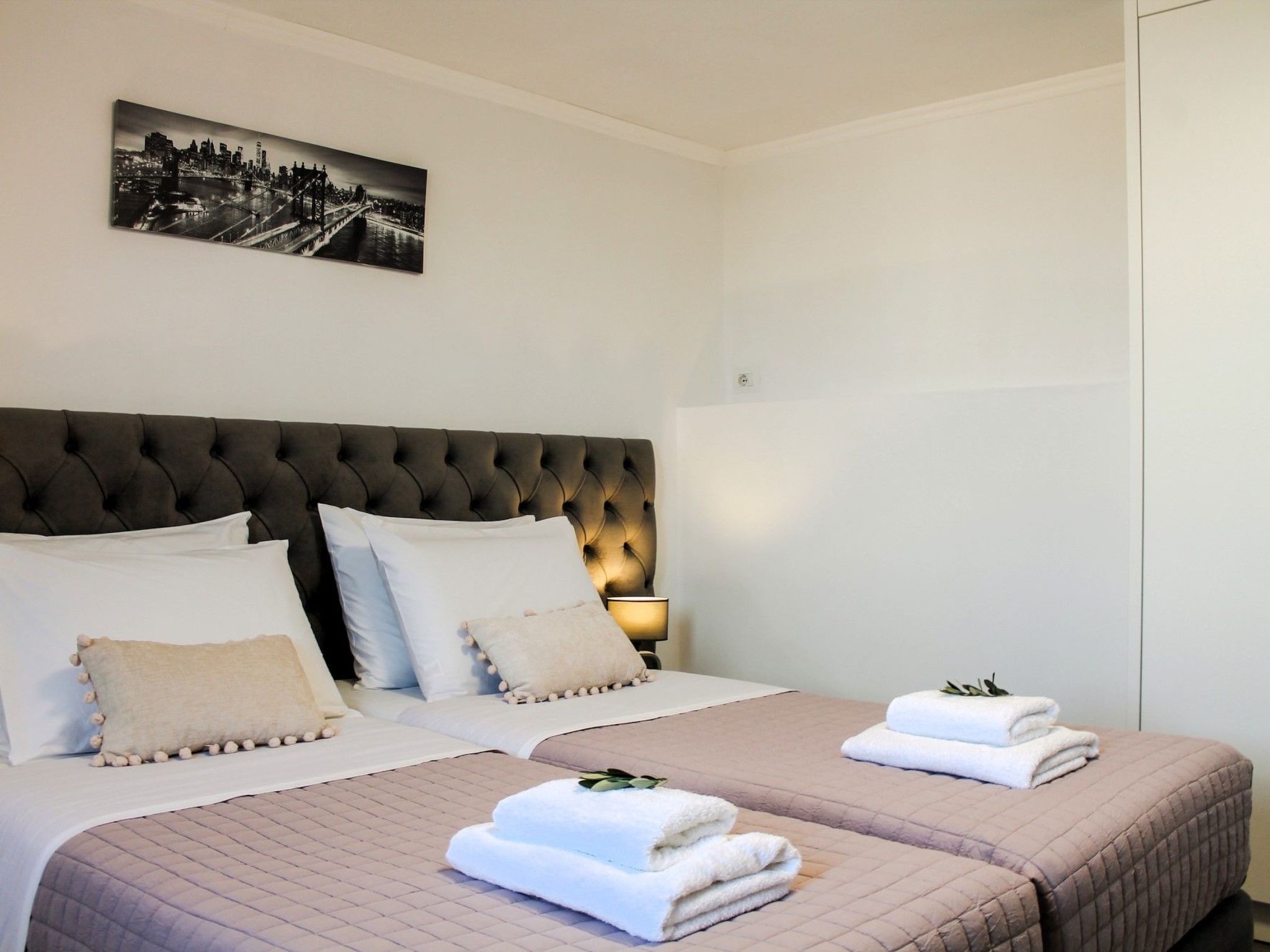 Schlafzimmer 4: Ein Doppelbett, das leicht in zwei Zwillinge umgewandelt werden kann, mit eigenem Bad.