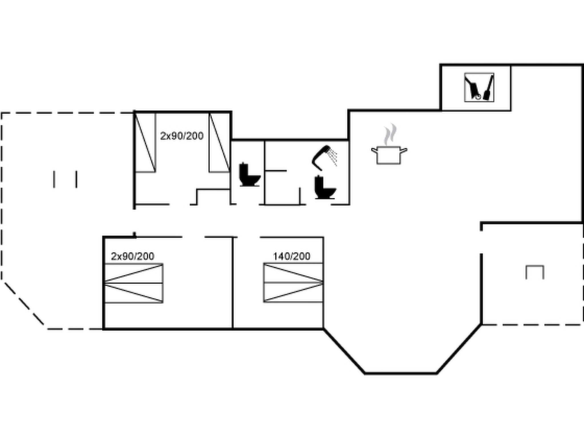 "Klint" - 1.7km from the sea", 3-Zimmer-Haus 82 m2. Objekt geeignet für 6 Erwachsene + 1 Kind. Wohnzimmer mit TV, Video, Radio, CD und DVD. 1 Zimmer mit 1 Doppelbett. 1 Zimmer mit 1 Doppelbett. 1 Zimmer mit 2 Betten. Küche (4 Kochplatten, Backofen, Geschirrspüler, Mikrowelle, Tiefkühler). 2 Duschen/WC. Zur Verfügung: Kinderhochstuhl, Babybett. Internet (WLAN). Bitte beachten: Nichtraucher-Unterkunft. 563-872