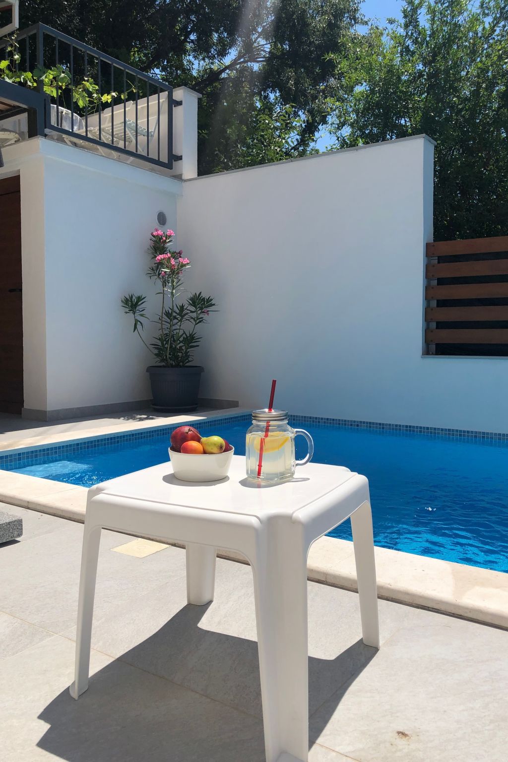 Der Pool ist 7 m lang, 3 m breit und 1,5 m tief und steht ausschließlich den Gästen zur Verfügung.