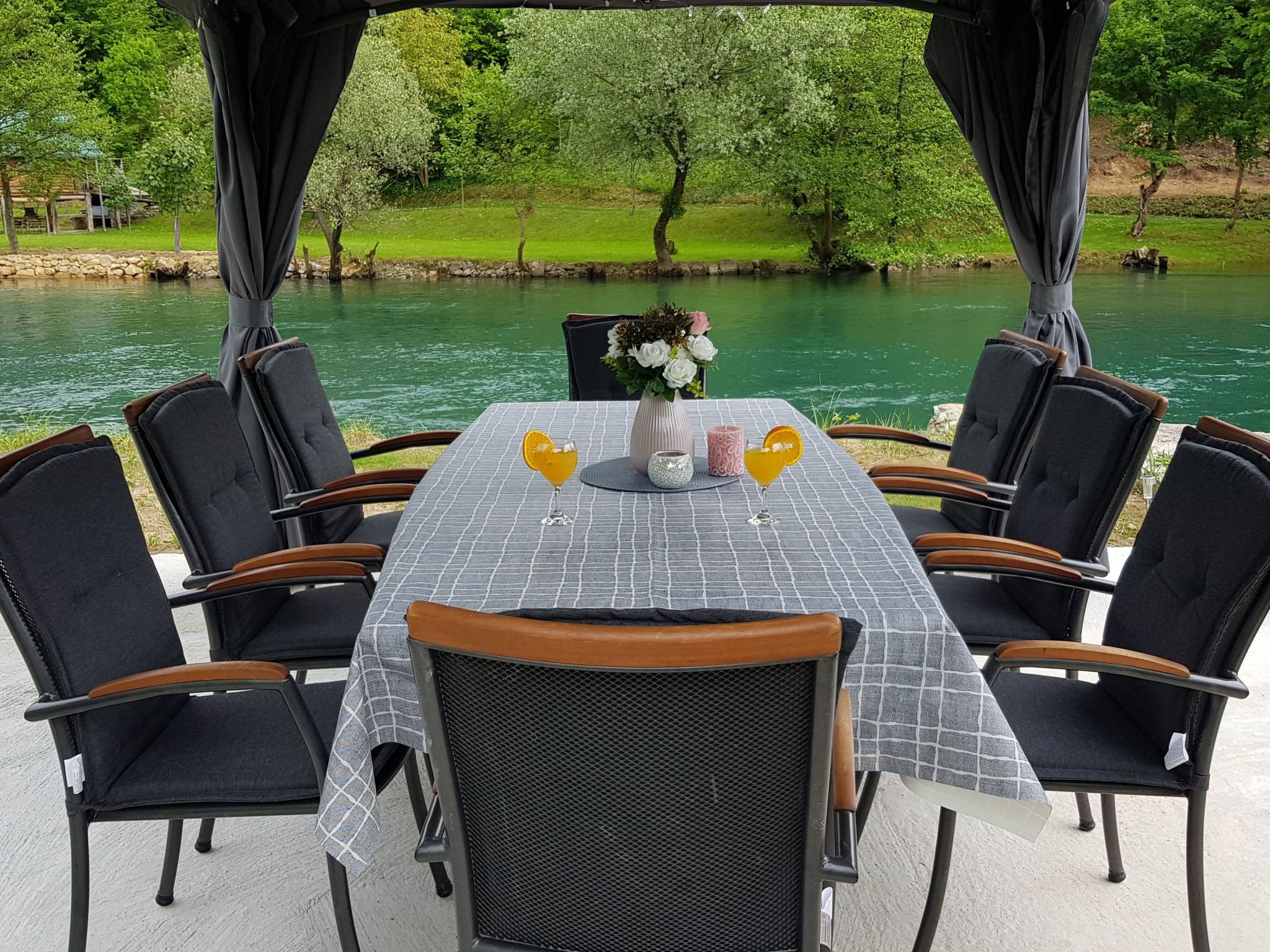 Das Una Valley Kulen Vakufis Apartment liegt im Herzen des Una-Nationalparks, 40 km von der Stadt Bihać entfernt. Das hervorragend ausgestattete Apartment bietet unseren Gästen einen luxuriösen und komfortablen Aufenthalt in einem der schönsten Naturschutzgebiete in diesem Teil Europas. Die Wohnung befindet sich in einem Gebäude am Fluss Una mit eigenem Strand. Die Wohnung erstreckt sich über eine Fläche von 100 m² und besteht aus 2 Schlafzimmern, einem Wohnzimmer, einer Küche, einer Couch und einer Terrasse von 30 m² und bietet Platz für einen angenehmen Aufenthalt in einem großen privaten Garten, der sich auf 2000 m² erstreckt. Es ist mit technischen Geräten ausgestattet, die selbst die Bedürfnisse der anspruchsvollsten Gäste erfüllen, darunter Klimaanlage, WLAN und Flachbildfernseher. Darüber hinaus stehen unseren Gästen eine voll ausgestattete Küche, ein Grill und die Möglichkeit zur Erholung im weitläufigen Hof in der natürlichen Umgebung des Nationalparks entlang des Flusses Una zur Verfügung. Die Kapazität des Apartments beträgt acht Personen. Für unsere Gäste historisch bedeutsame Gebäude sind leicht zu erreichen: die alte Havelfestung und die Altstadt von Ostrovitsa, die nur wenige Minuten von der Wohnung entfernt sind. Wir bieten unseren Gästen einen Aufenthalt in luxuriösen, modernen und hochwertigen Unterkünften in unmittelbarer Nähe von Štrbačka buka und Martin Brodska, dem Naturjuwel der bosnischen Krajina.