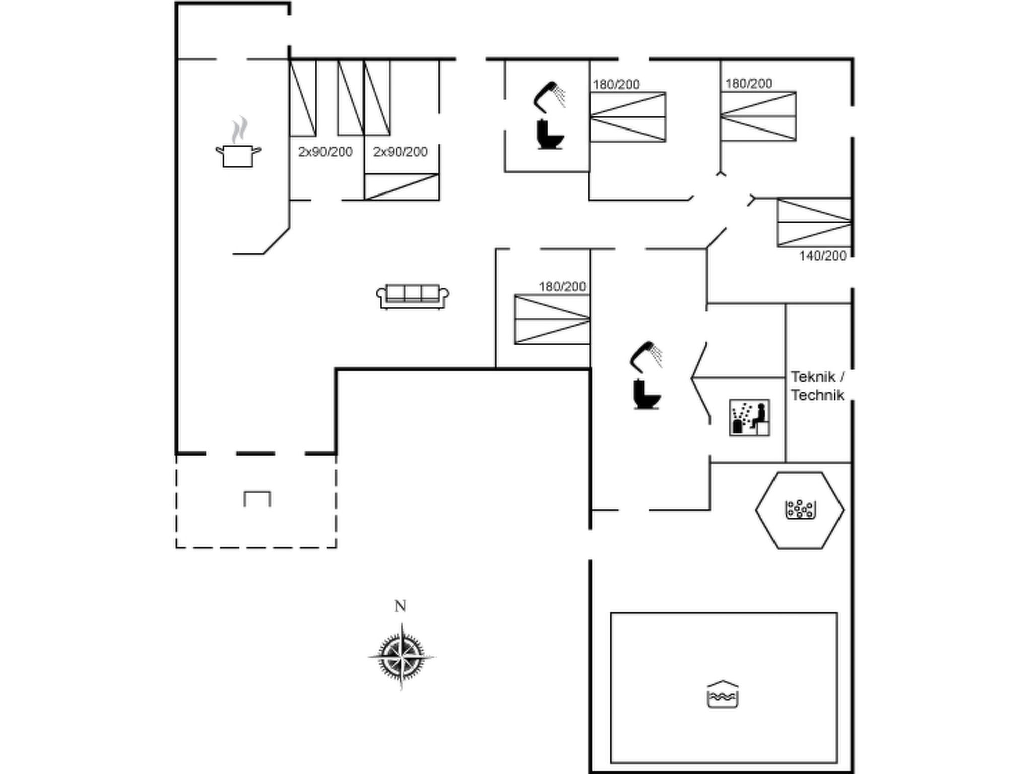 Einfamilienhaus, Baujahr 2005. 4 km vom Meer. Zur Alleinbenutzung: naturbelassenes Grundstück 3'500 m2, Hallenbad (4 x 6 m, 26 m2, 150 - 150 cm tief). Terrasse (40 m2), Kinderspielplatz (Schaukel). Im Hause: Sauna, Waschmaschine, Wäschetrockner. Parkplatz beim Haus. Lebensmittelgeschäft 1 km. Der Besitzer akzeptiert keine Jugendgruppen.