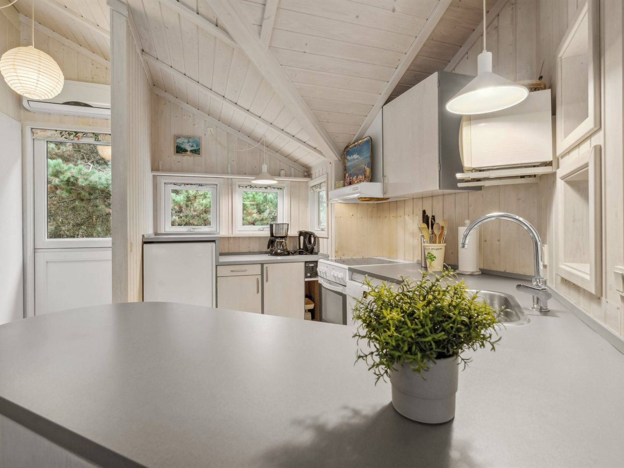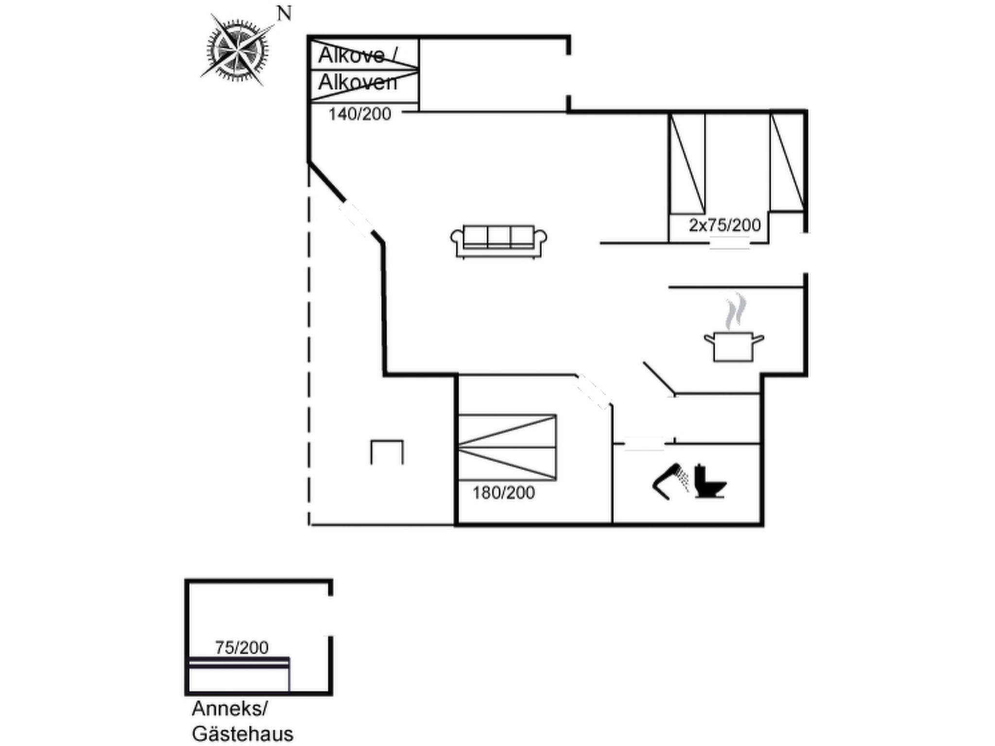 Einfamilienhaus, Baujahr 1990. 850 m vom Meer. Zur Alleinbenutzung: naturbelassenes Grundstück 3'370 m2. Terrasse (10 m2). Im Hause: Waschmaschine. Parkplatz beim Haus. Lebensmittelgeschäft 2.2 km. Golfplatz 1.8 km. Der Besitzer akzeptiert keine Jugendgruppen.