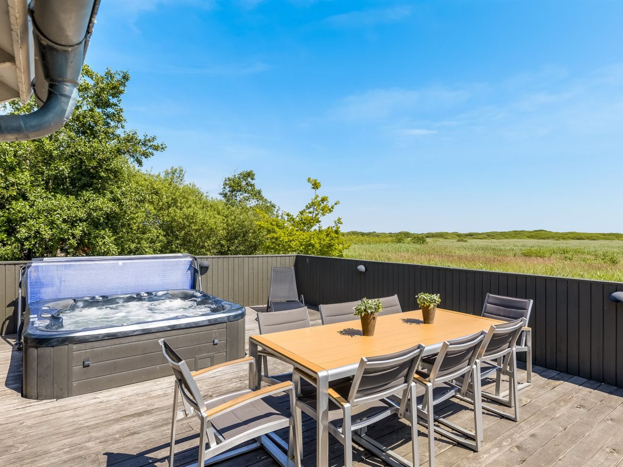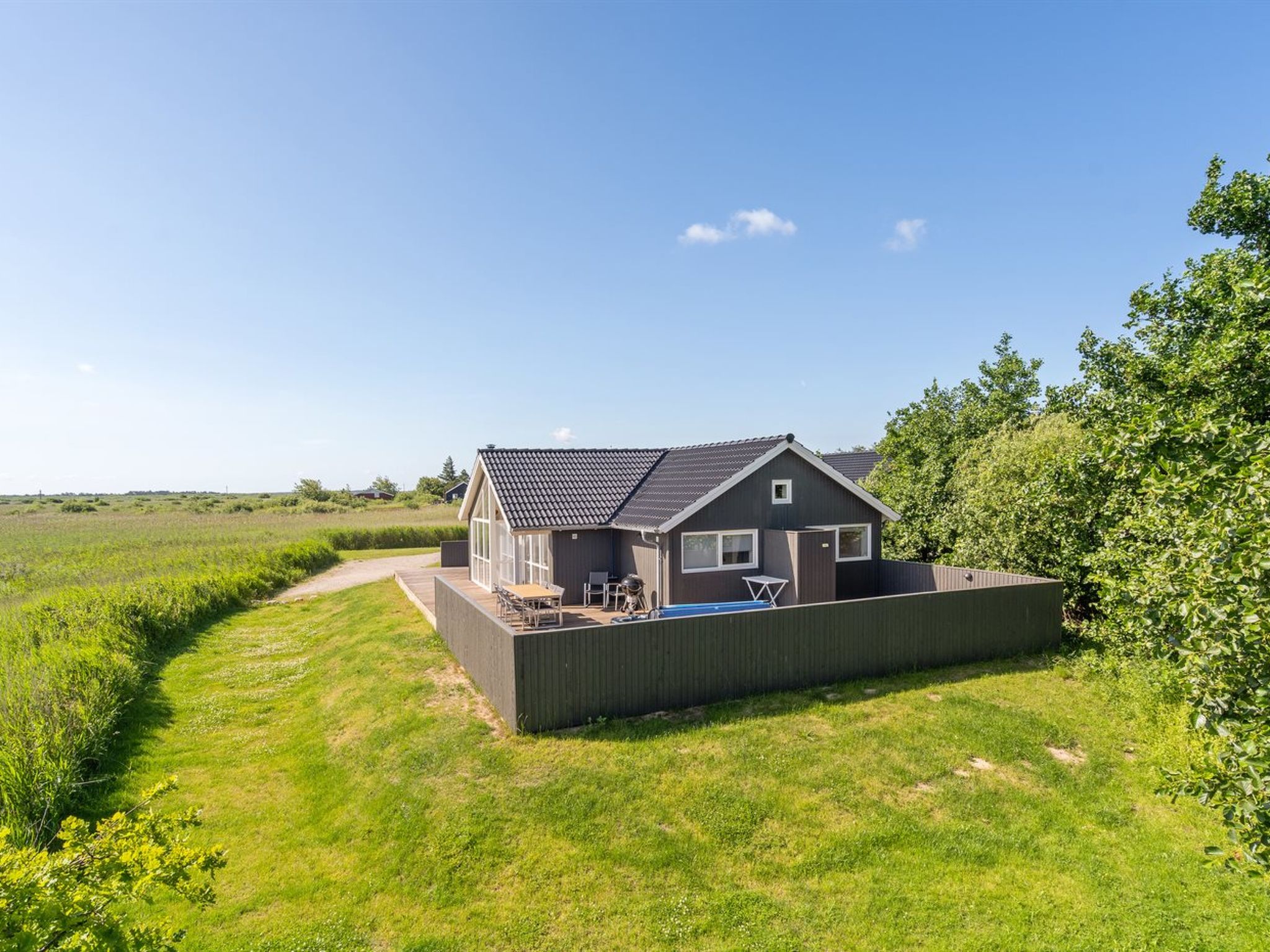 Einfamilienhaus, Baujahr 2021. 700 m vom Meer. Zur Alleinbenutzung: naturbelassenes Grundstück 1'200 m2. Aussendusche, Terrasse (150 m2). Im Hause: Waschmaschine, Wäschetrockner. Parkplatz beim Haus. Lebensmittelgeschäft 400 m. Golfplatz 7.5 km. Der Besitzer akzeptiert keine Jugendgruppen.