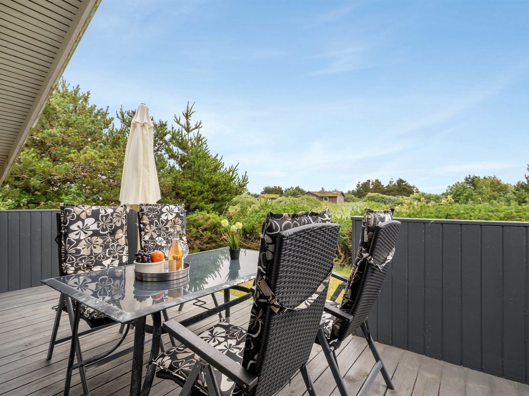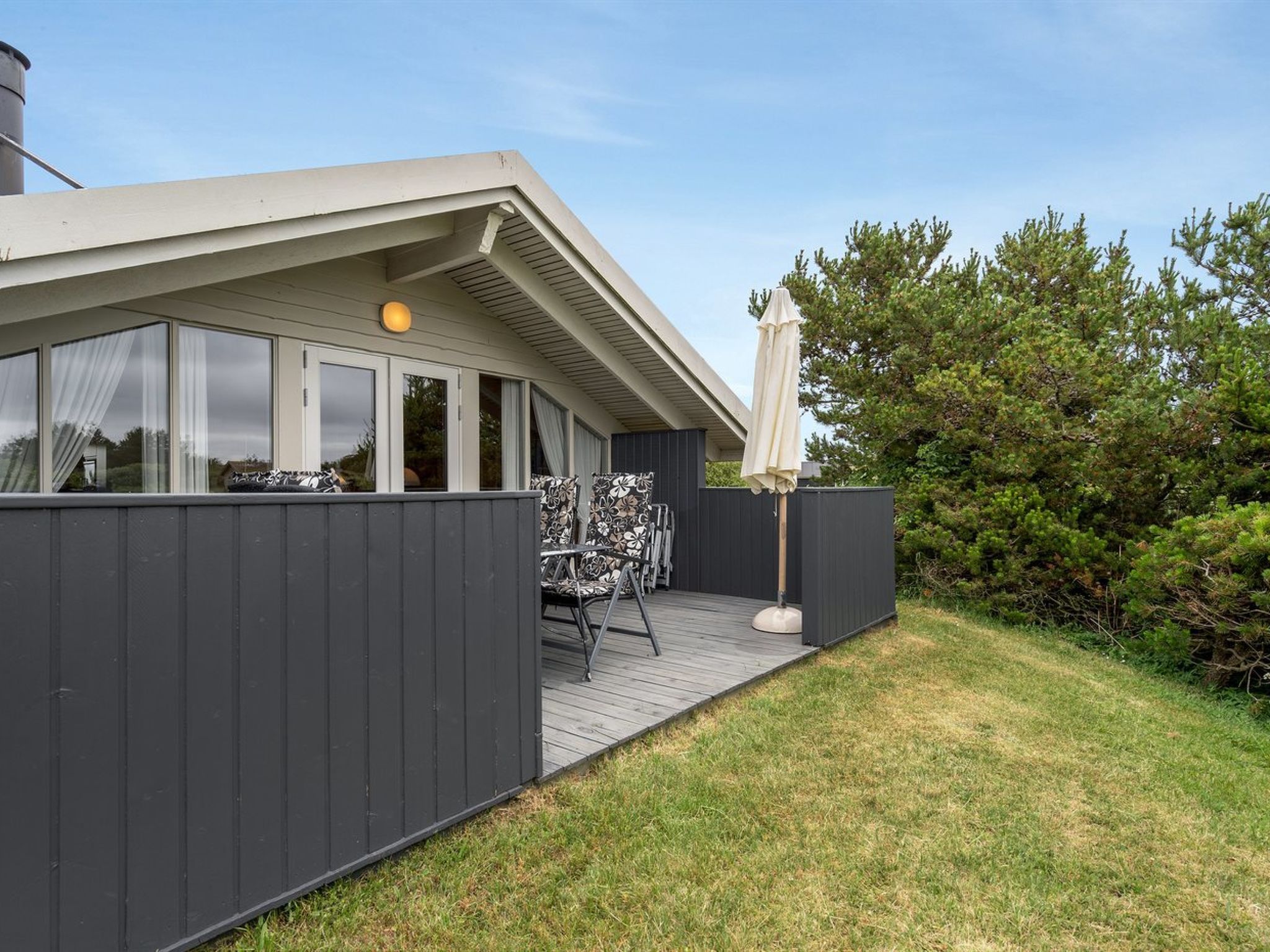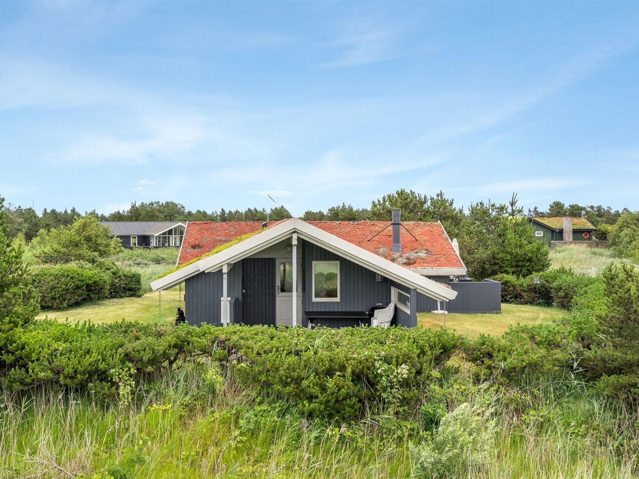 Einfamilienhaus, Baujahr 1989. 1.8 km vom Meer. Zur Alleinbenutzung: naturbelassenes Grundstück 2'500 m2. Terrasse (18 m2), Grill. Im Hause: Waschmaschine. Parkplatz beim Haus. Lebensmittelgeschäft 3.5 km. Golfplatz 13.5 km. Der Besitzer akzeptiert keine Jugendgruppen.