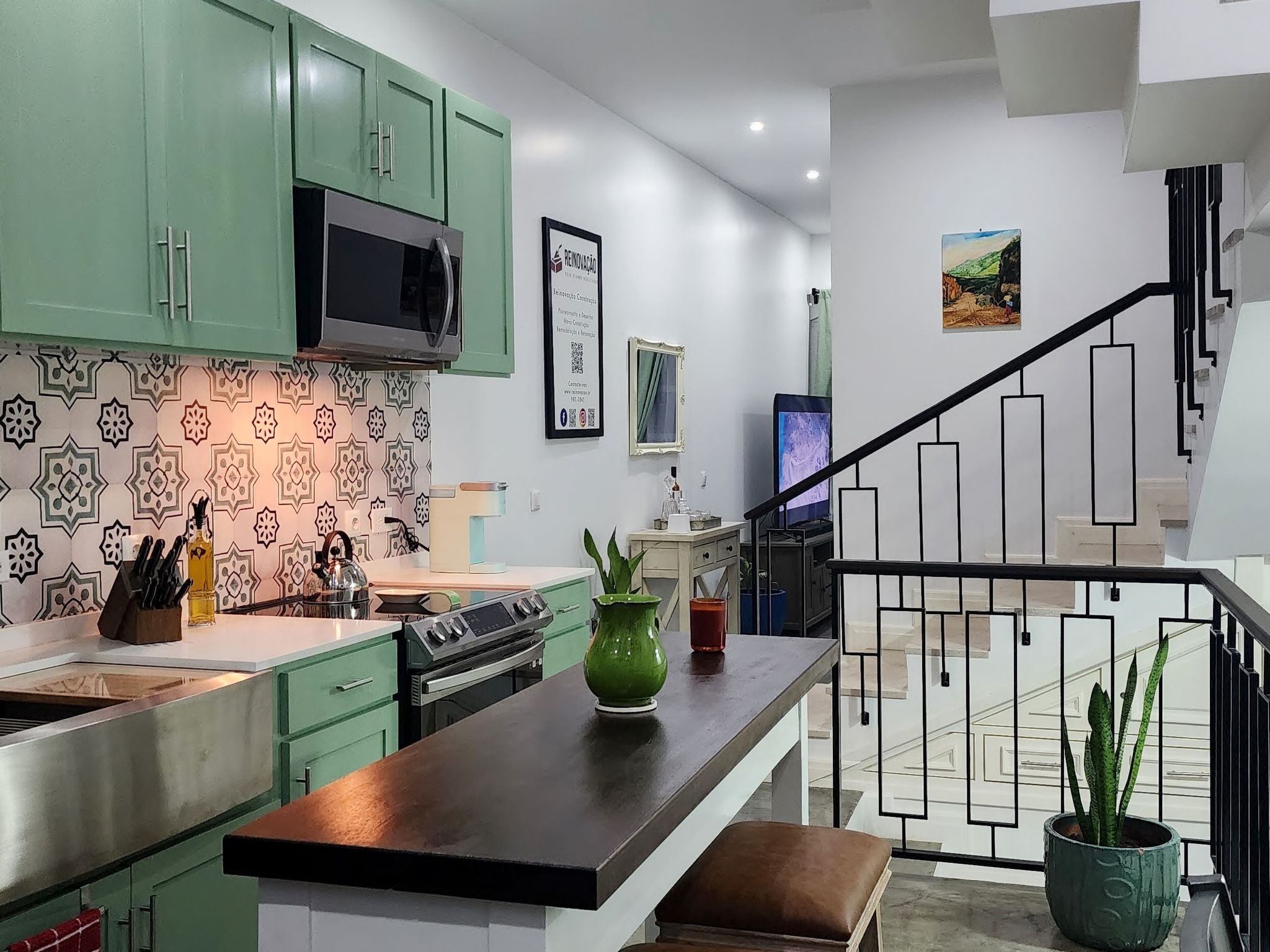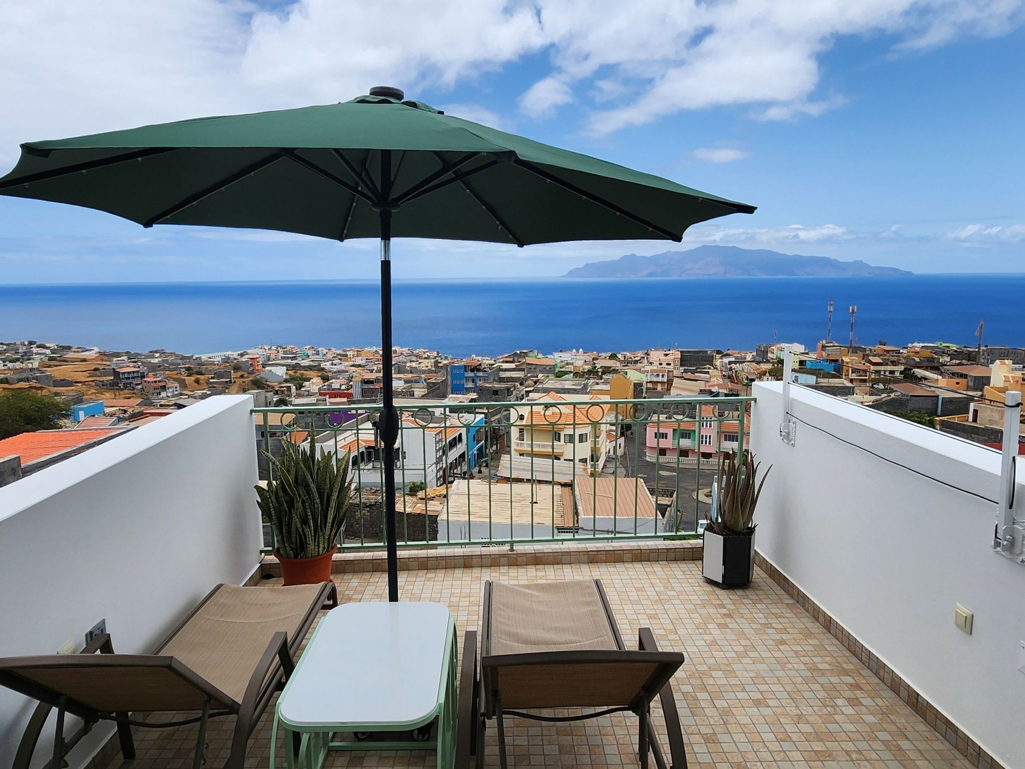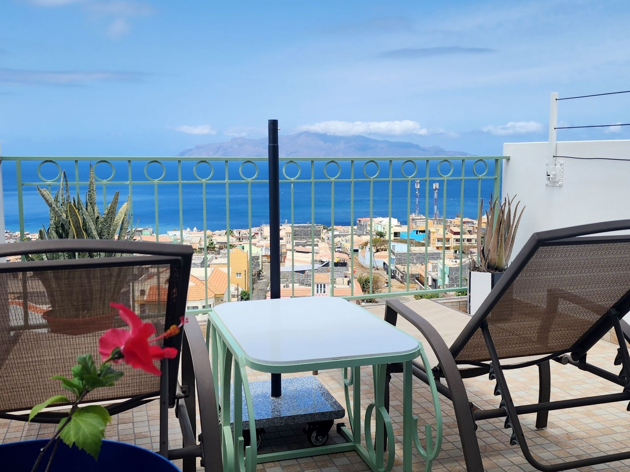Ein Highlight ist die Terrasse, die einen Panoramablick auf São Filipe, den weiten Ozean und die Nachbarinsel Brava bietet. Dieser idyllische Ort ist mit Liegestühlen, einem Elektrogrill und einem Essgeschirr ausgestattet und eignet sich ideal, um atemberaubende Sonnenuntergänge mit einem Glas des berühmten Fogo-Weins zu genießen. Eine große, intelligente Waschmaschine mit Wäscheständern sorgt dafür, dass die praktischen Dinge des Lebens zu Hause mühelos erledigt werden können, so dass mehr Zeit zum Entspannen und Genießen der Umgebung bleibt.