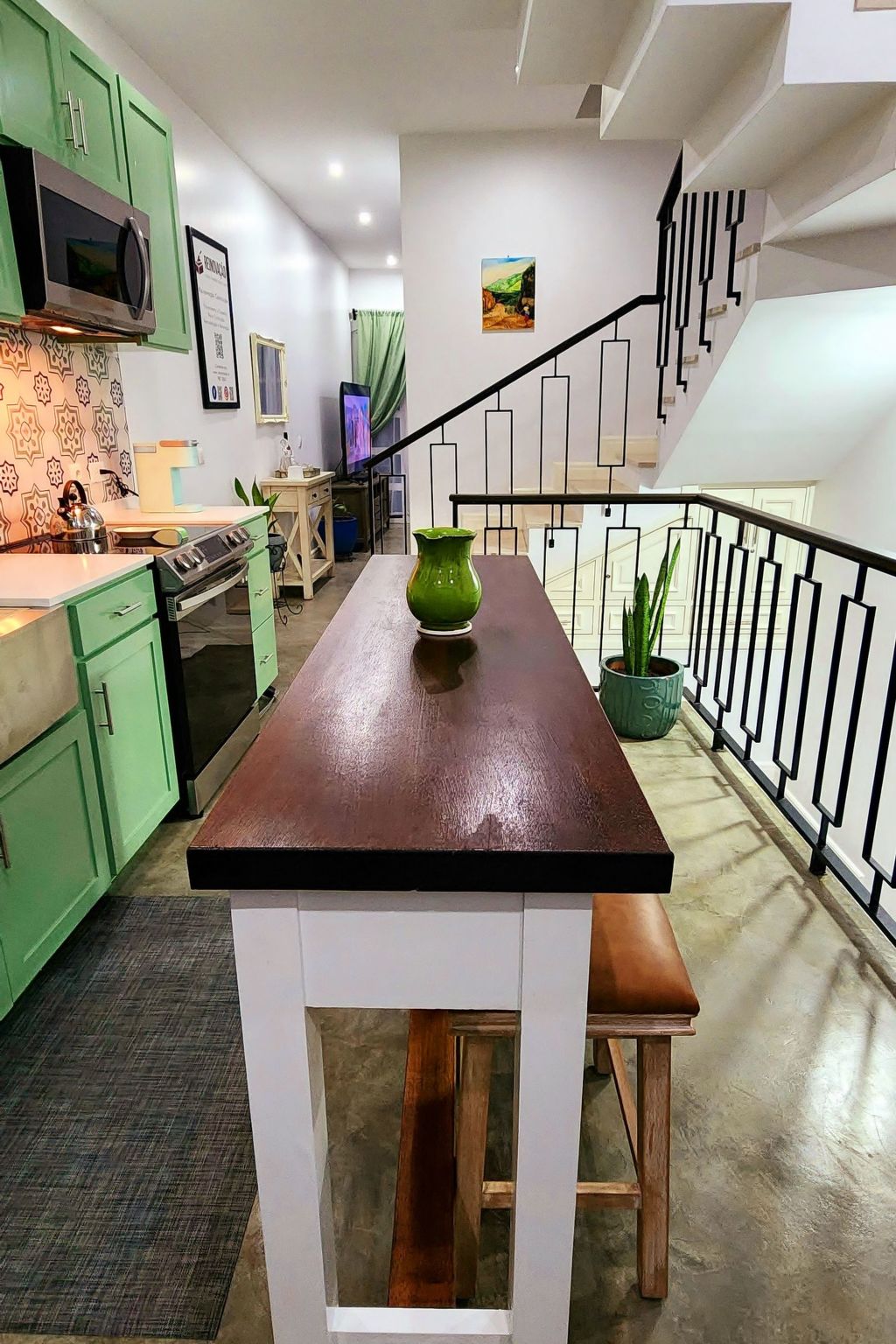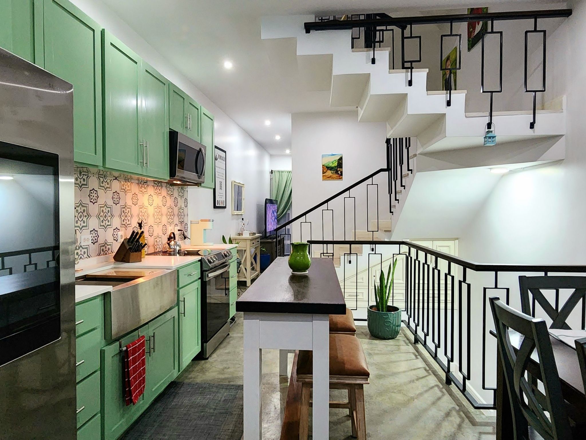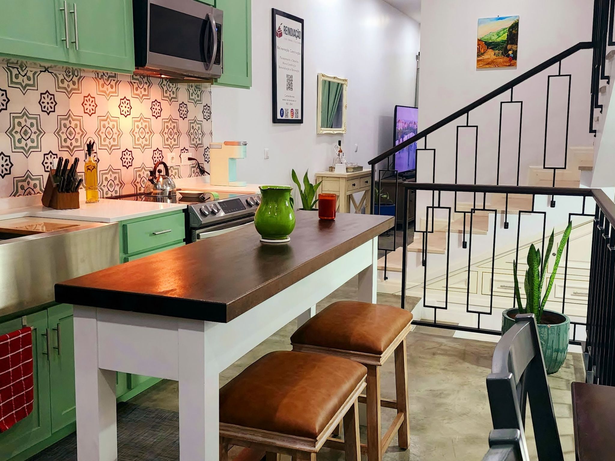 Ein Highlight ist die Terrasse, die einen Panoramablick auf São Filipe, den weiten Ozean und die Nachbarinsel Brava bietet. Dieser idyllische Ort ist mit Liegestühlen, einem Elektrogrill und einem Essgeschirr ausgestattet und eignet sich ideal, um atemberaubende Sonnenuntergänge mit einem Glas des berühmten Fogo-Weins zu genießen. Eine große, intelligente Waschmaschine mit Wäscheständern sorgt dafür, dass die praktischen Dinge des Lebens zu Hause mühelos erledigt werden können, so dass mehr Zeit zum Entspannen und Genießen der Umgebung bleibt.