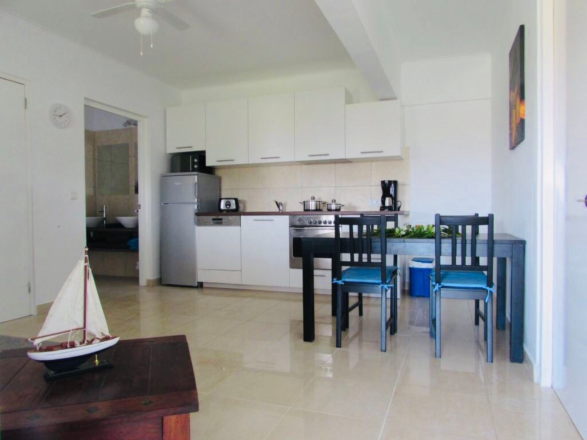 Das Apartment Trupial ist ein komplett neu ausgestattetes und liebevoll eingerichtetes 3-Zimmerapartment, wodurch Sie ihren Urlaub entspannt und unbeschwert genießen können. Die Ferienwohnung besteht aus zwei Schlafzimmer mit Klimaanlage, Ventilator, Safe sowie Badezimmer mit Toilette und einer offenen Wohnküche mit Blick auf den tropischen Garten. Die neu und modern ausgestattete Küche verfügt natürlich über einen Geschirrspüler. Sie können sich beim Pool mit einem Buch entspannen sowie Abends im beleuchteten Swimmingpool einen Drink genießen. Auf ihrer eigenen Terrasse haben Sie eine spektakuläre Aussicht. Auf einen der wunderschönen Strände von Curacao können Sie die Sonnenuntergänge beobachten. Es steht ihnen ein eigener Grill zur Verfügung. Es soll ihnen an nichts fehlen. Einfach ein traumhafter Platz der zum Entspannen einlädt.
