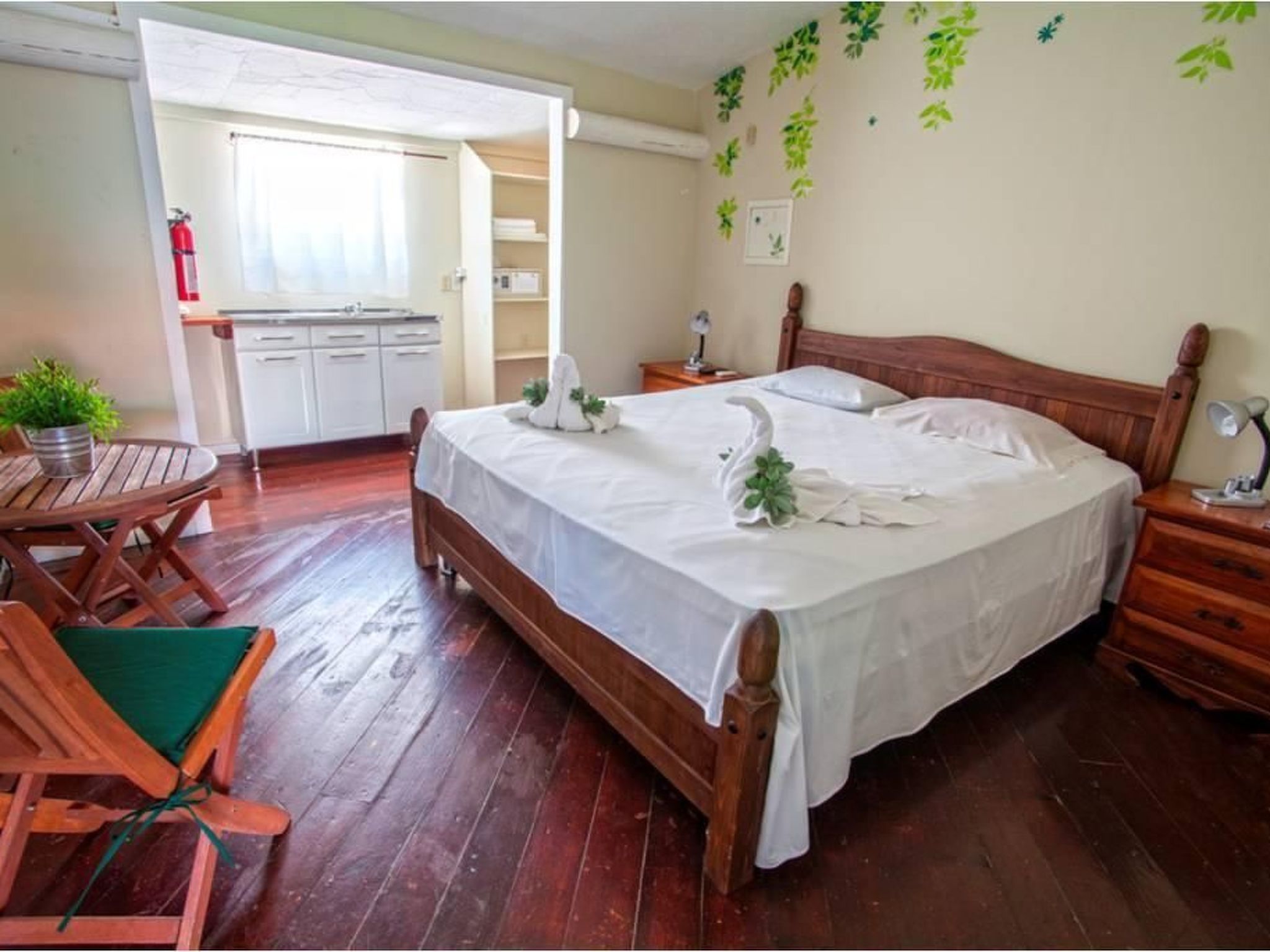 Die gemütlich eingerichtete Ferienwohnung bietet einen Wohn- und Schlafbereich, eine separate, vollständig ausgestattete Küche und ein modernes Badezimmer. Der klimatisierte Wohnbereich ist mit einem großen Doppelbett, einem Flachbildfernseher mit Kabelempfang und einem Esstisch mit Stühlen ausgestattet. Auch gibt es hier noch einen Safe für Ihre Wertsachen. Die Küche verfügt über einen Vierzonen Herd, einen Backofen, Kühlschrank mit Gefrierfach, Wasserkocher, Toaster und sogar eine Kaffeemaschine. Im Badezimmer finden Sie eine großzügige Duschkabine, einen Waschtisch mit Wandspiegel und eine Toilette vor. Für ausreichend Bettwäsche und Handtücher ist gesorgt und auch der zuverlässige WLAN Internetzugang wird Ihnen in Ihrer Ferienwohnung kostenlos geboten.