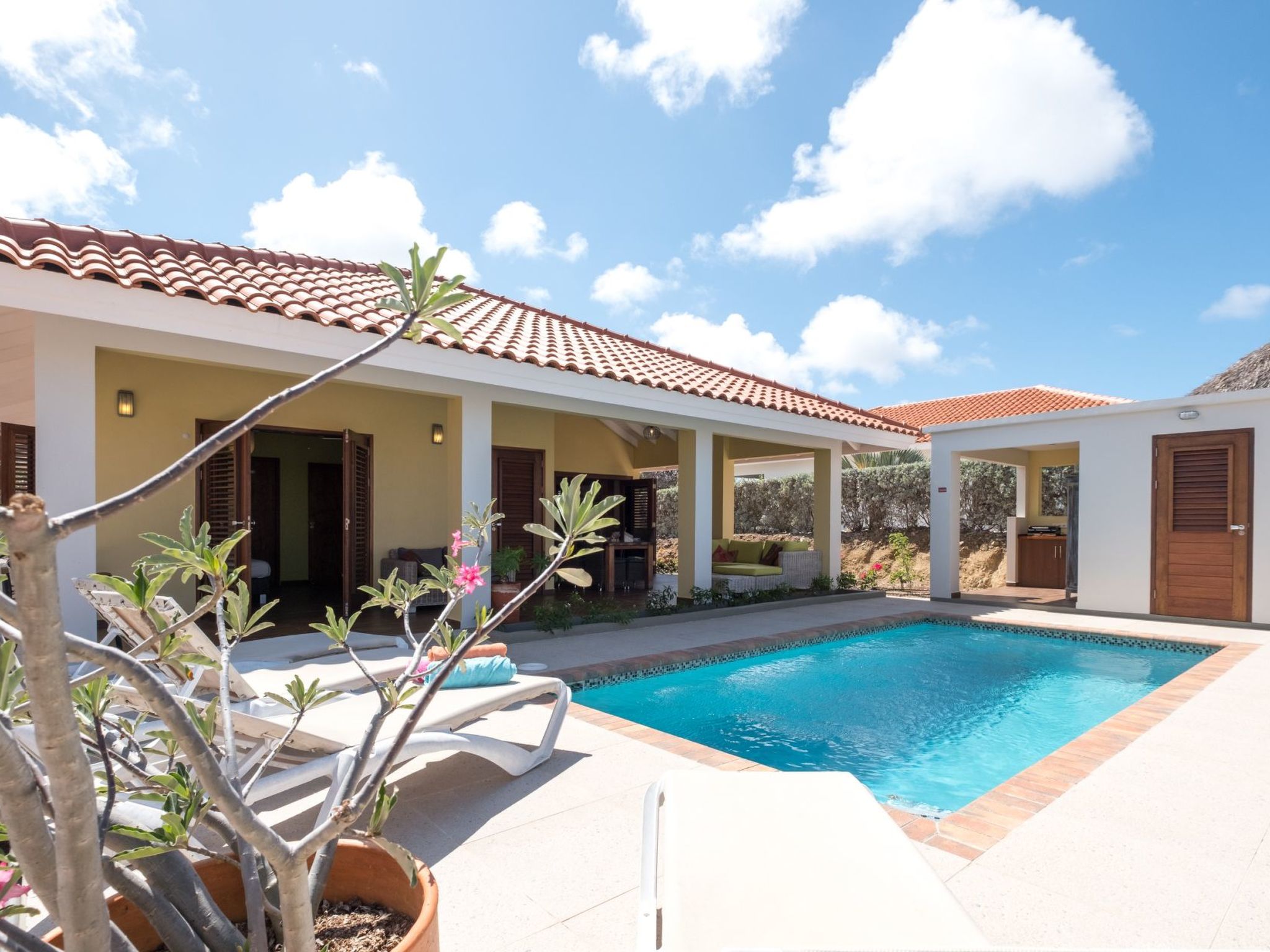 Entdecken Sie den Luxus einer privaten Villa für 6 Personen im Villapark Flamboyan, der im ruhigen Kwarchi-Viertel in der Nähe von Sint Jorisbaai liegt, abseits vom Trubel, aber dennoch nahe an allen wichtigen Orten. Ursprünglich eine Plantage, bietet Villapark Flamboyan heute eine grüne und beliebte Wohngemeinschaft östlich von Willemstad und der Küste. Diese Villa befindet sich in einer ruhigen Gegend innerhalb einer kleinen und sicheren Anlage und bietet die perfekte Kombination aus Ruhe und Erreichbarkeit. Die Ruhe der Anlage bedeutet auch, dass in oder in der Nähe der Villa Gogorobi keine Partys gefeiert werden dürfen.