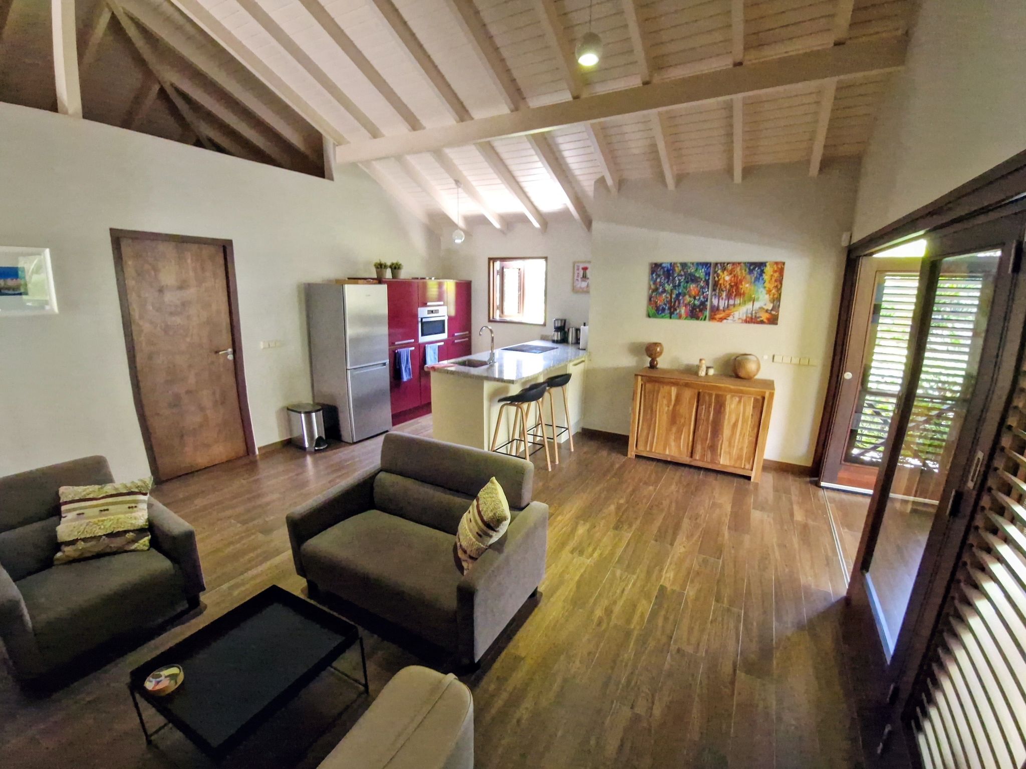 Das Innere der Villa ist auf 200 m2 Wohnfläche ausgelegt und verfügt über einen privaten Pool und eine private Auffahrt. Genießen Sie moderne Annehmlichkeiten wie kostenloses WIFI, umgeben von der grünen und ruhigen tropischen Flora. Für die Kleinsten stehen ein Kinderbett und ein Hochstuhl zur Verfügung, was diese Villa zu einer idealen Wahl für einen Familienaufenthalt macht.