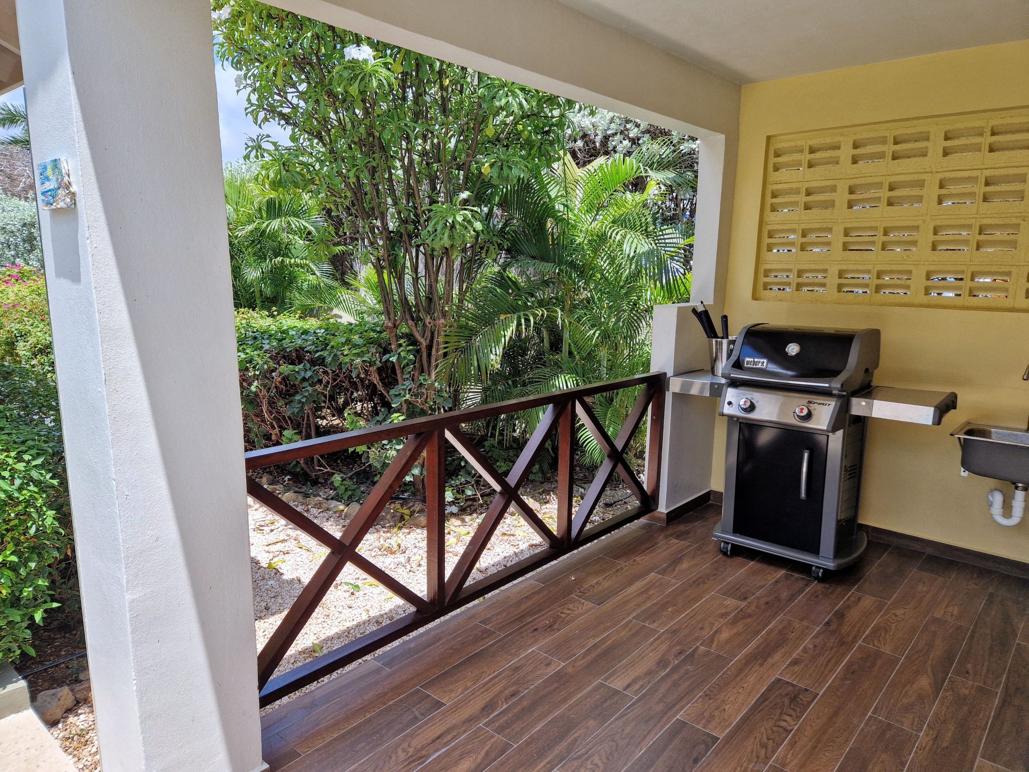 Die Umgebung der Villa ist ebenso einladend. In unmittelbarer Nähe befinden sich die Supermärkte Mangusa und Centrum sowie das bekannte niederländische Lebensmittelgeschäft Albert Tweel in Zeelandia, die alle in 15 Minuten zu erreichen sind. Beliebte Strände wie Santa Barbara Beach, Jan Thiel und Mambo Beach sowie das Stadtzentrum von Willemstad sind nur eine Autofahrt entfernt. Für Naturliebhaber gibt es im Umkreis von 1,5 km das Naturschutzgebiet St. Joris Bay sowie Attraktionen wie den Straußenpark und die Aloe-Vera-Plantage.