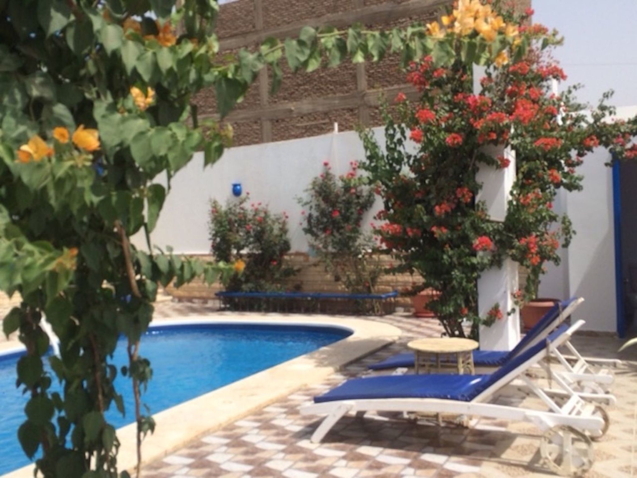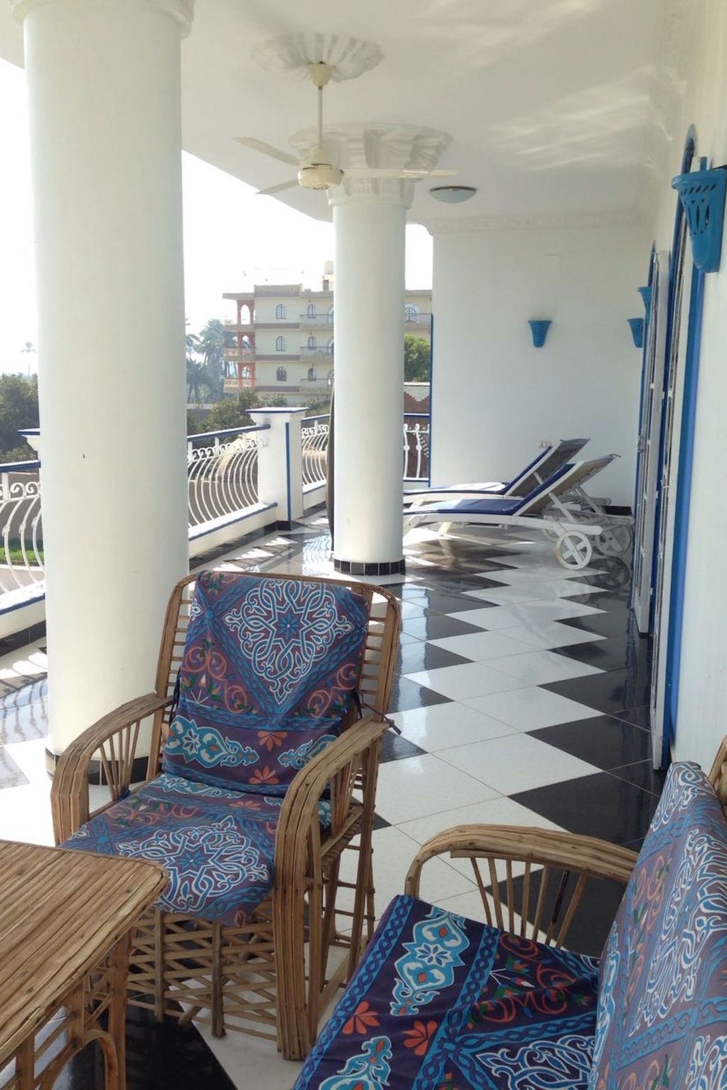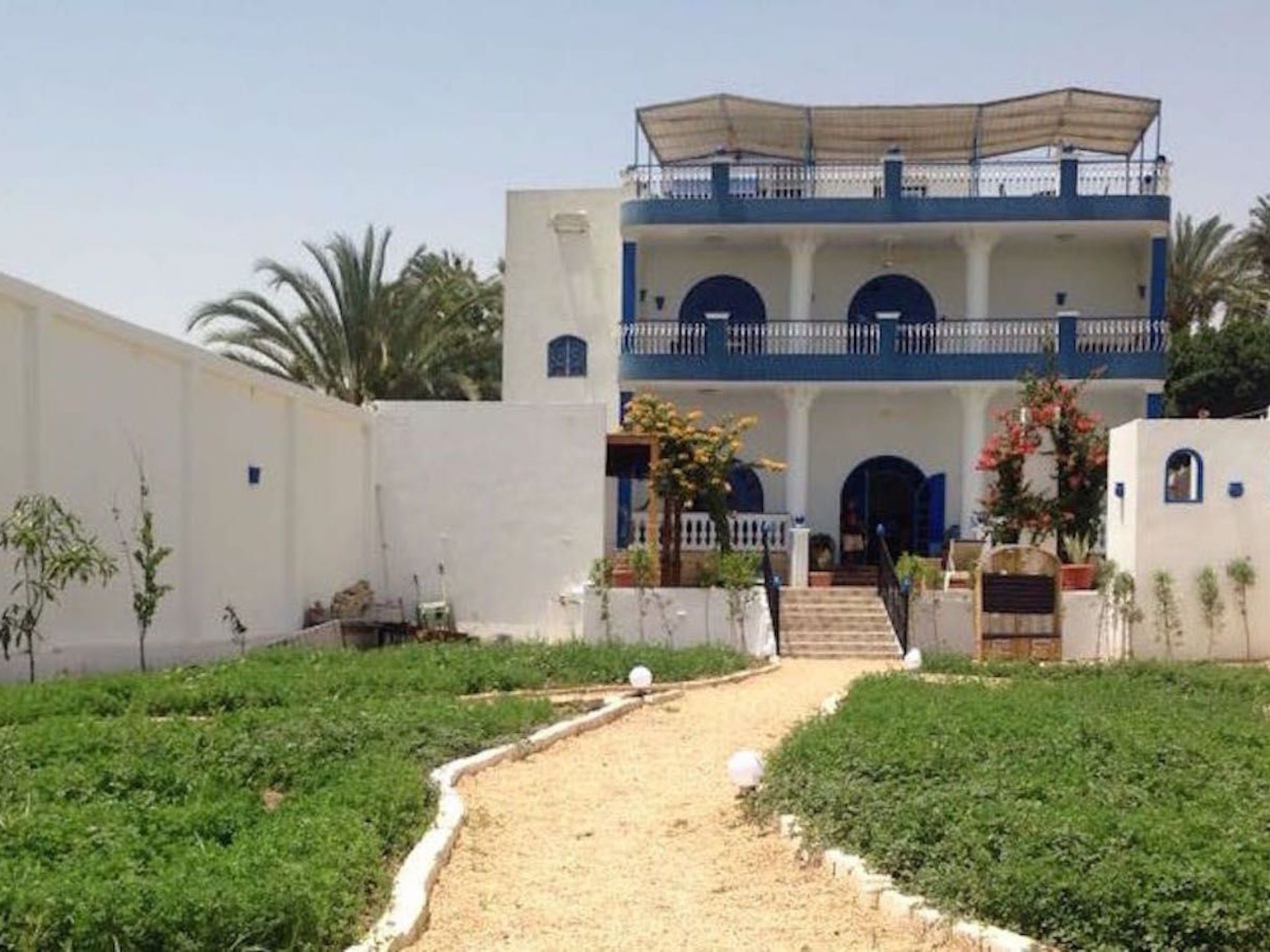 Villa Kaslan liegt sehr privat inmitten von Dattelpalmen, Bananenplantagen, Zuckerrohr- und Weizenfeldern auf der West Bank von Luxor. In der Liegenschaft selbst hat es viele Blumen, Sträucher, Limetten-, Mandarinen- und Papaya-Bäume, Pfefferminze, Basilikum..... Die Ruhe vor Ort wird tagsüber nur vom Zwitschern der Vögel und abends vom Zirpen der Grillen unterbrochen und man kann sich bei uns so richtig erholen. Sei es am oder im Swimmingpool, auf der grossen Dachterrasse mit Panormablick, im Garten oder auf den separaten Terrassen der Ferienwohnungen; irgendwo findet sich immer ein Plätzchen.