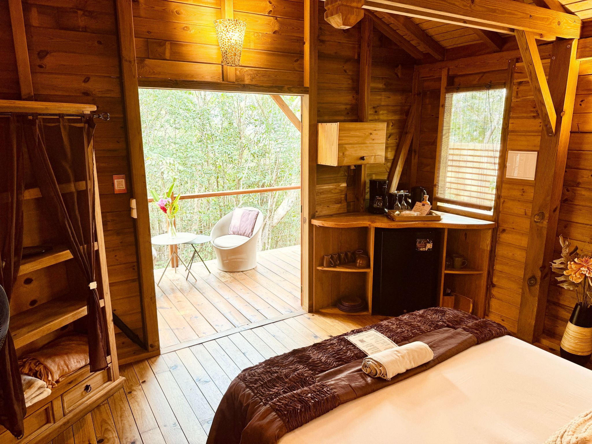 Das komplett aus Holz gebaute Kolibri-Nest befindet sich im ersten Stock der Bäume und wurde für Liebhaber von Natur, Privatsphäre und schelmischen Vögeln entworfen.