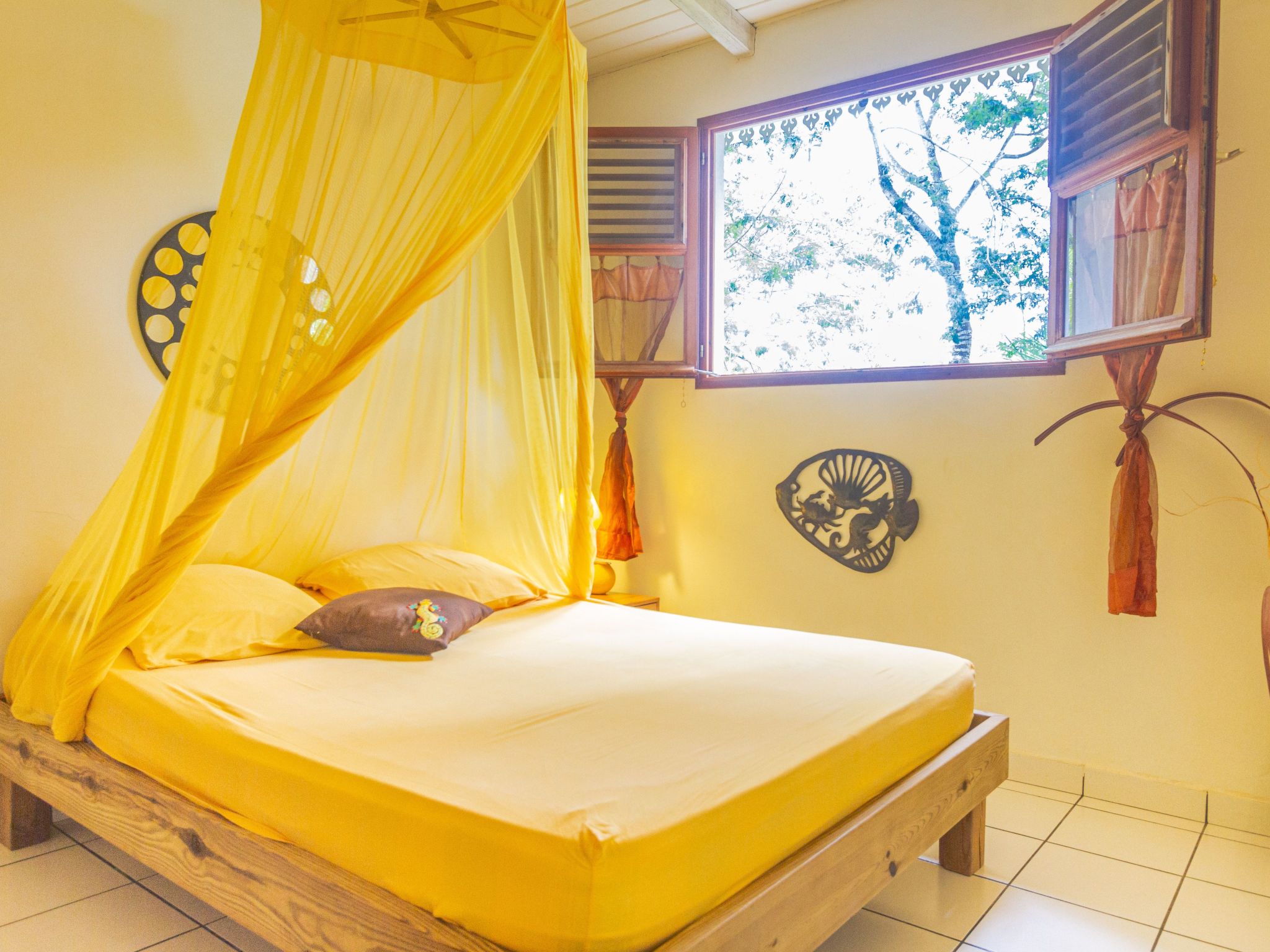Ein fröhliches und spritziges Ferienhaus im Herzen der hier bewahrten Natur. Ein hübsches, farbenfrohes und klimatisiertes Zimmer, ein Wohnzimmer mit ausgestatteter Küche und einem Schlafsofa für die Kinder. Terrasse für Mahlzeiten mit Kolibris, Hängematte und Liegestuhl zum Entspannen, und bbq weber, die auf eine Languste warten ...