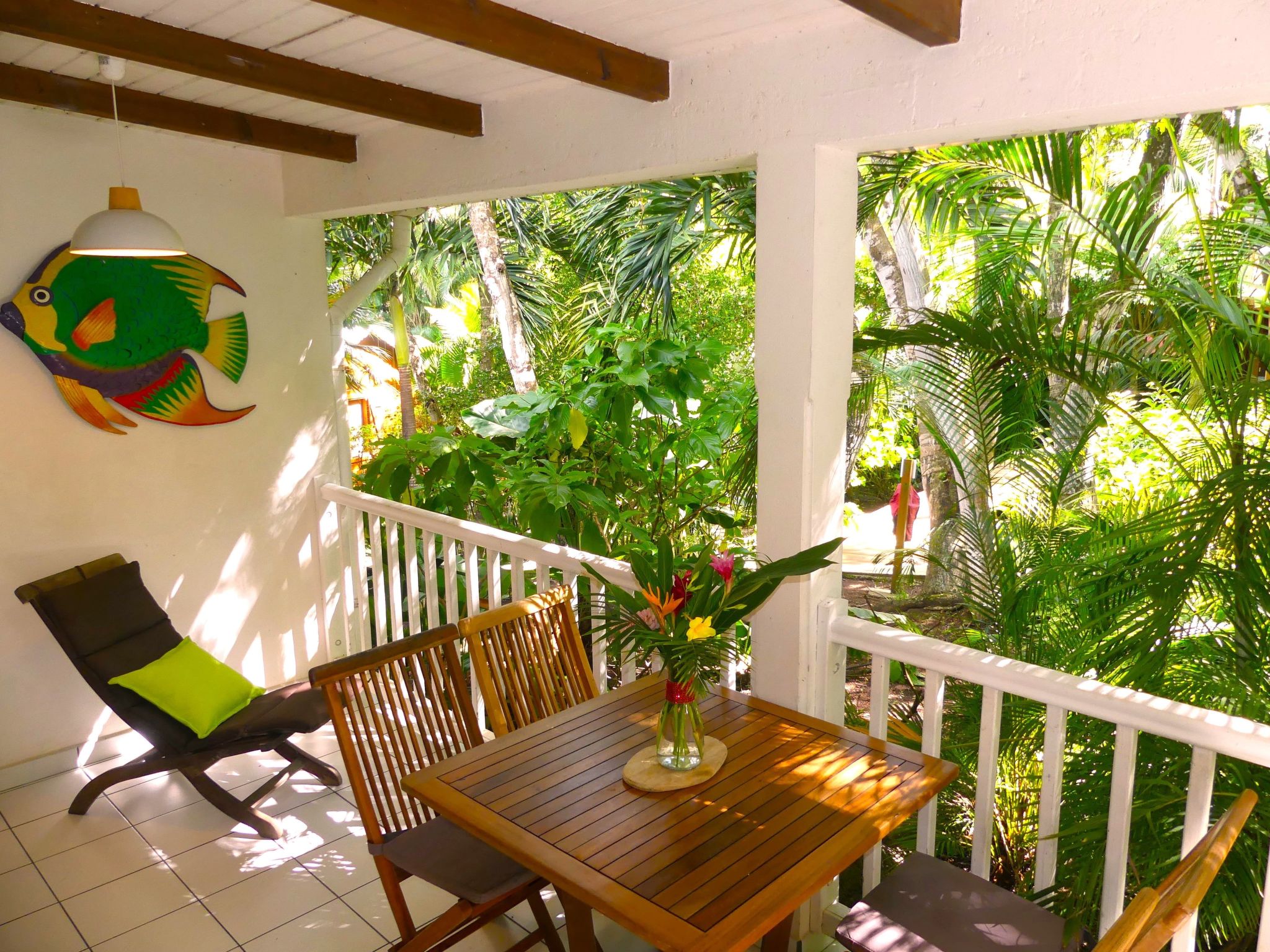 Ideal gelegen, nur wenige Schritte vom Dorf Deshaies entfernt, in einer geschützten Naturlandschaft. Das Anwesen ist eine Ökolodge, die von der Liga für Vogelschutz als Zufluchtsort eingestuft wurde. Die schönsten Sandstrände von Guadeloupe sind nur wenige Minuten entfernt, der botanische Garten nur 200m, und zahlreiche Ausflüge (Wal- und Delfintouren, Entdeckung der Lagune, der Mangroven, des Reservats Cousteau ect ...) werden angeboten. ) werden angeboten und können an der Rezeption gebucht werden, die 7 Tage die Woche geöffnet ist.