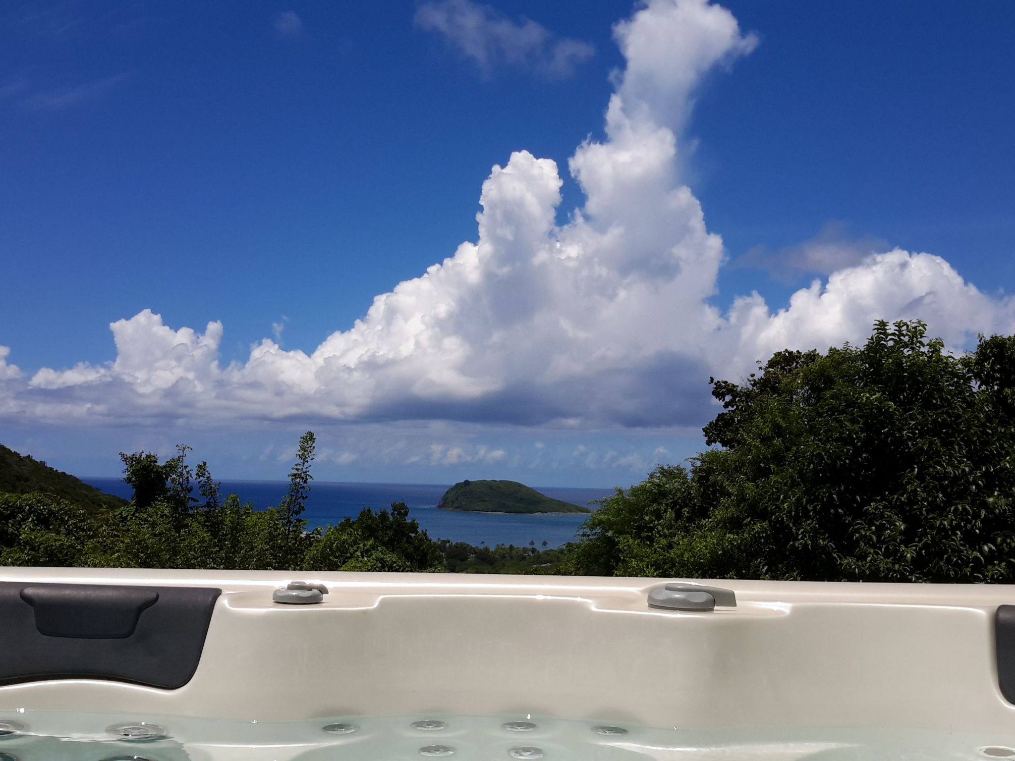 Auch der Außenbereich ist nicht zu verachten, denn die Terrasse bietet einen atemberaubenden Blick auf das Karibische Meer. Sie ist mit einer Sitzecke und einem Essbereich für Ihr Abendessen unter dem Sternenhimmel ausgestattet. Nicht zu vergessen der private Jacuzzi und der Grill für unvergessliche Abende. Der gemeinschaftlich genutzte Garten lädt zu entspannten Nachmittagen oder Spielen im Freien ein, in einer grünen, beruhigenden Umgebung am Waldrand.