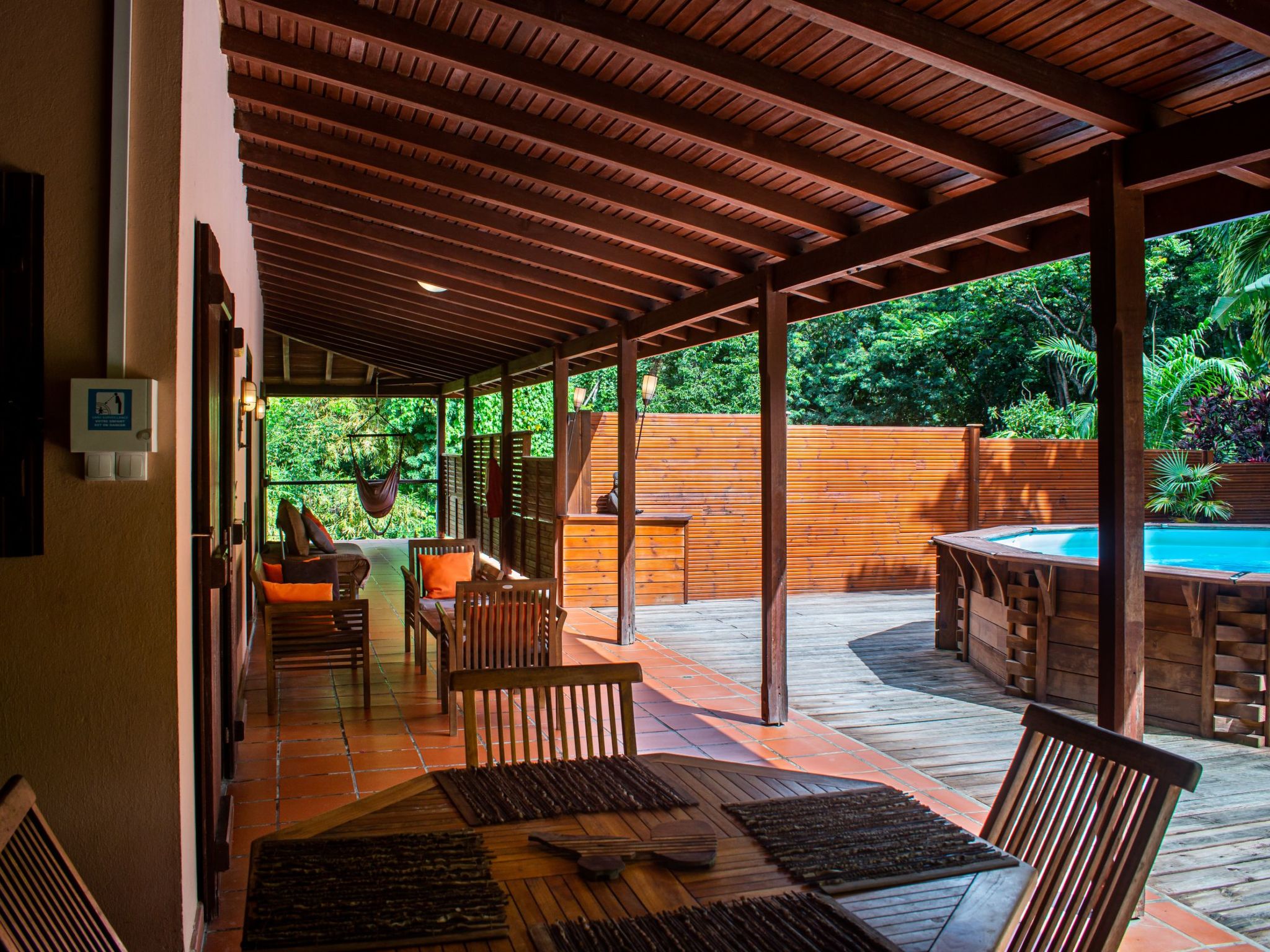 Der kreolische Charme einer Villa mit Privatpool, die aus zwei Schlafzimmern, einem Badezimmer und einem separaten WC besteht ... Die voll ausgestattete Küche befindet sich im Freien, eine riesige Terrasse bietet Platz für Mahlzeiten und Aperitifs vor dem Privatpool, eine Lounge-Ecke mit Hängematte und Hängestuhl vor einer üppigen Kulisse.
