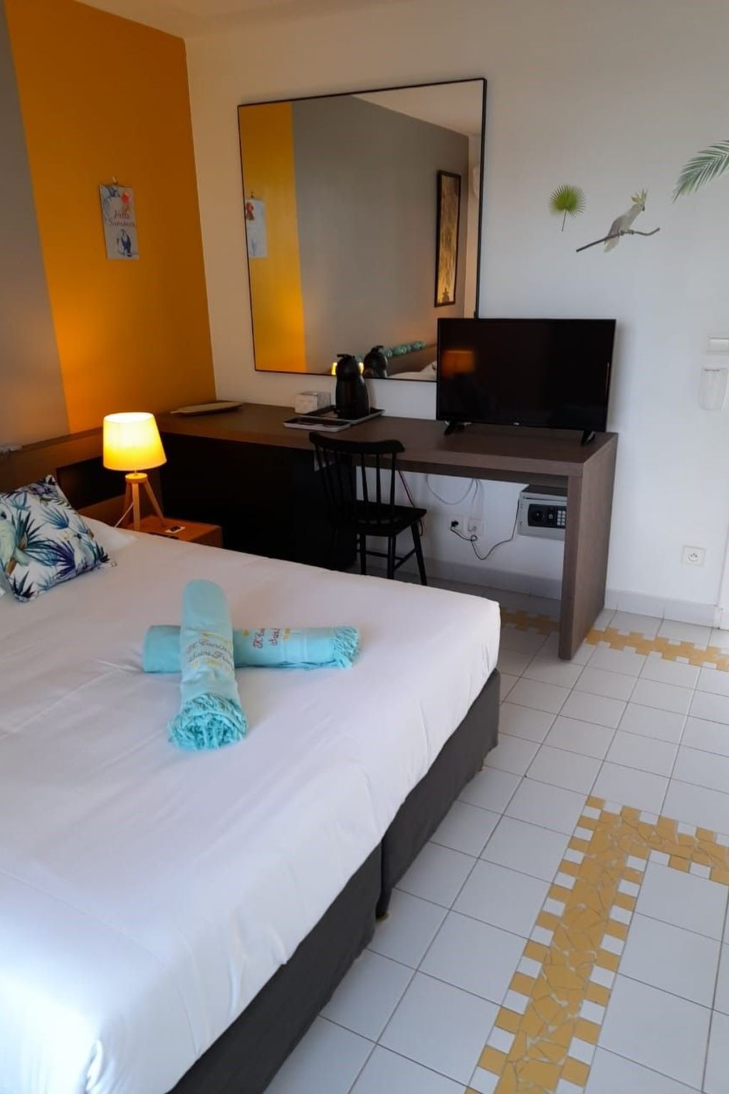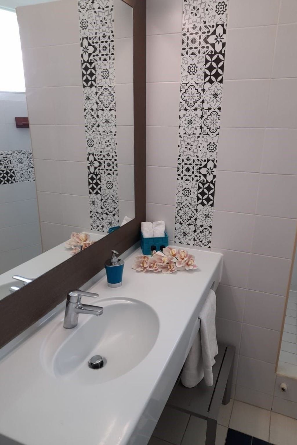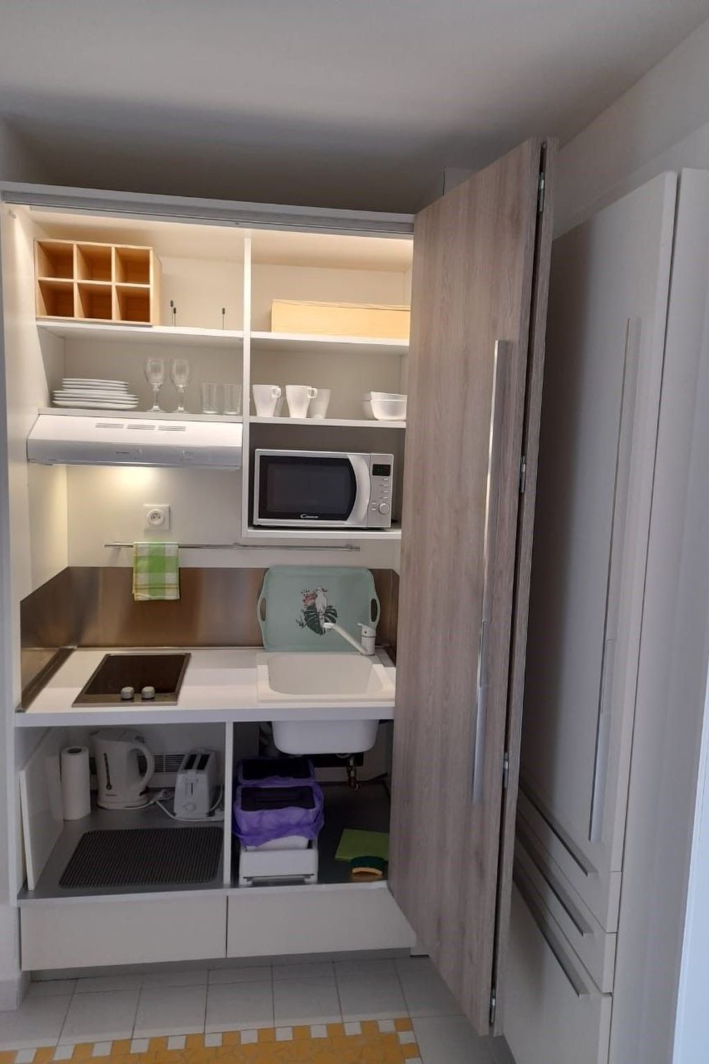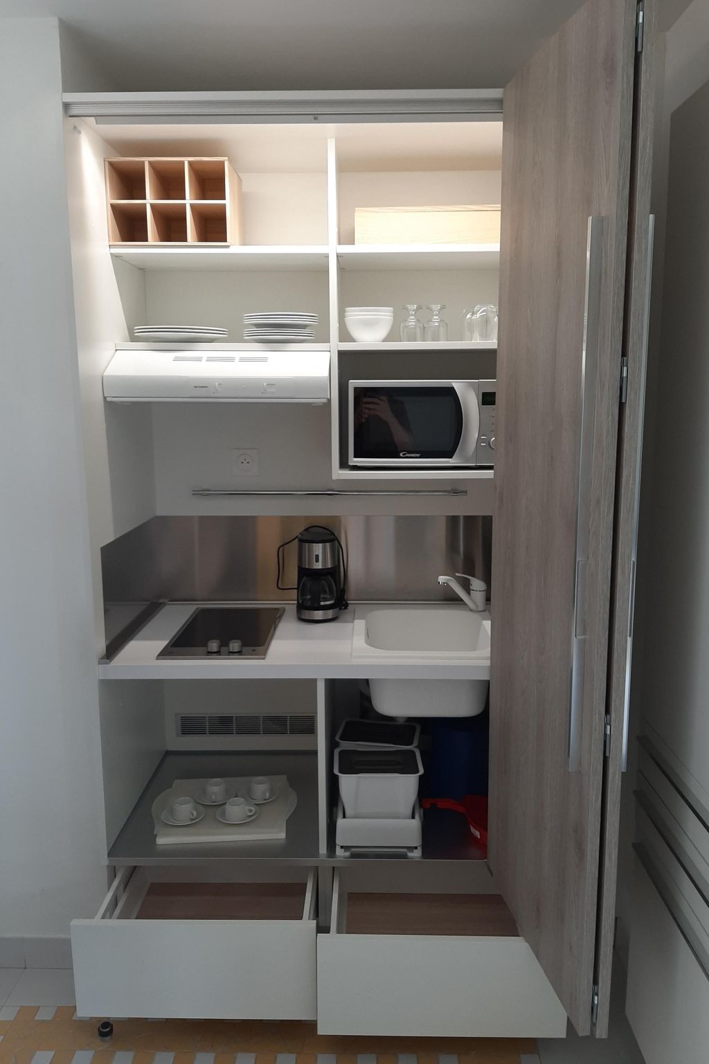 Es verfügt über ein Queensize-Bett (160x200), eine integrierte Küchenzeile, einen Safe und ein Badezimmer mit einer Dusche und einem WC. Die Wohnung ist klimatisiert und vollständig ausgestattet (Wi-Fi und Glasfaser, Fernseher, Kühlschrank/Freezer, Mikrowelle, Espressokocher, Wasserkocher, Kochplatte, Küchenutensilien usw.).