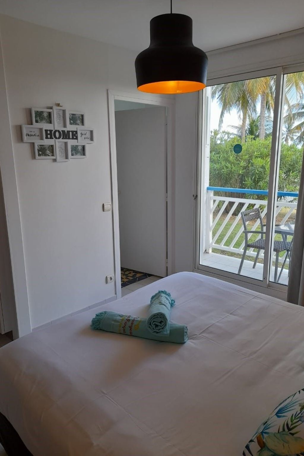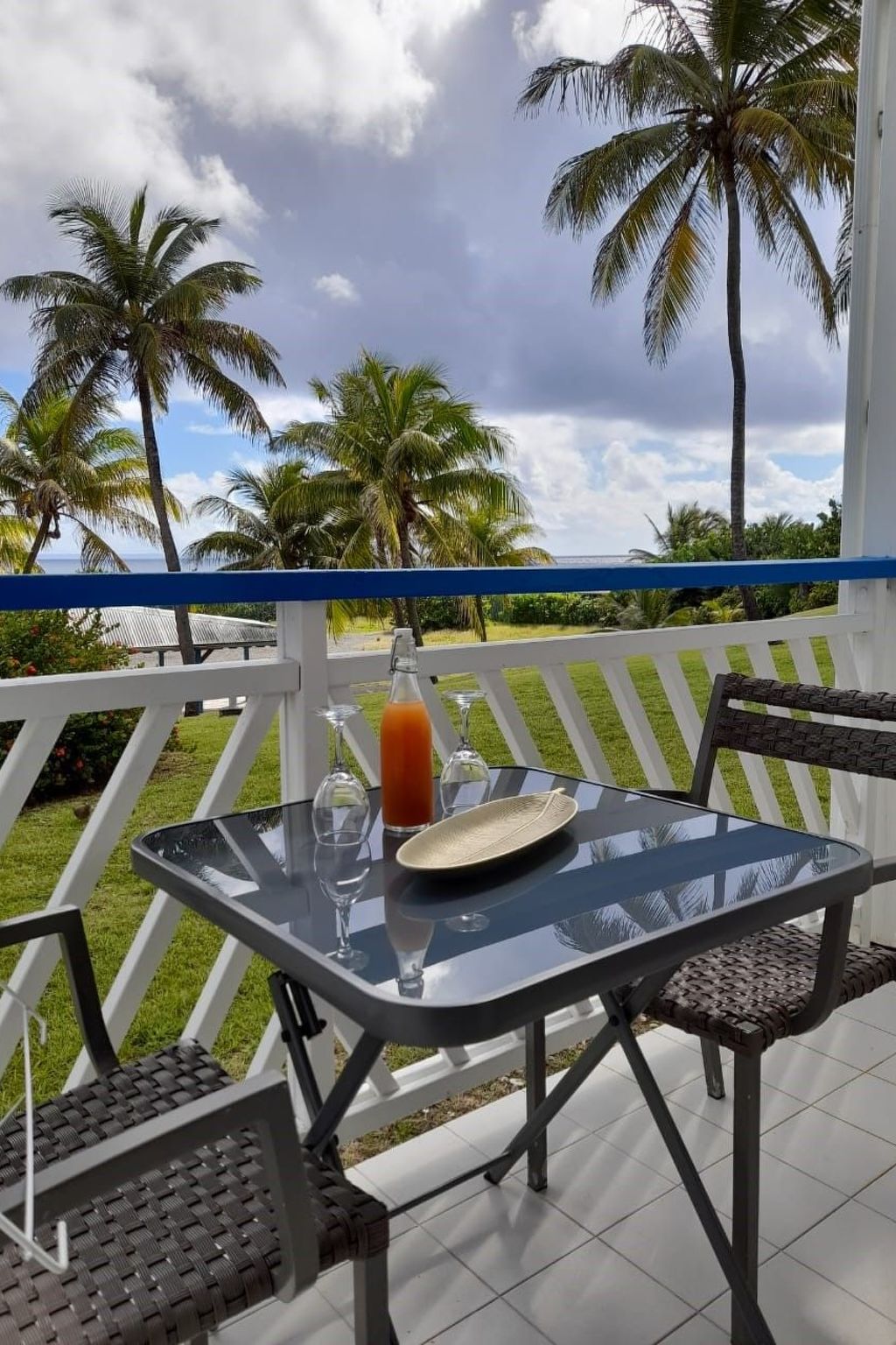 Wir vermieten unser Studio, das nur 50 Meter vom Meer entfernt ist und einen schönen Blick auf die Insel Marie-Galante bietet.