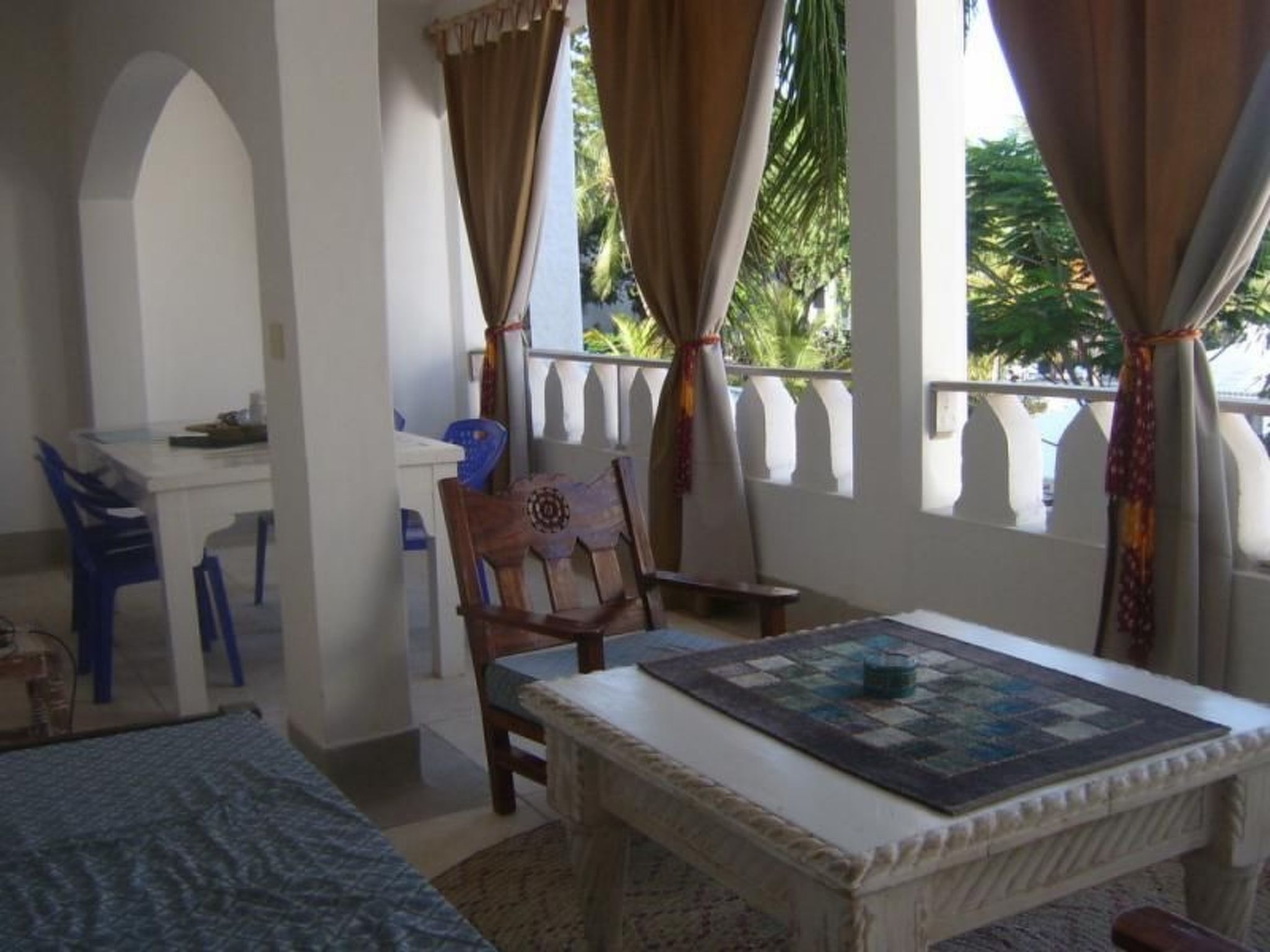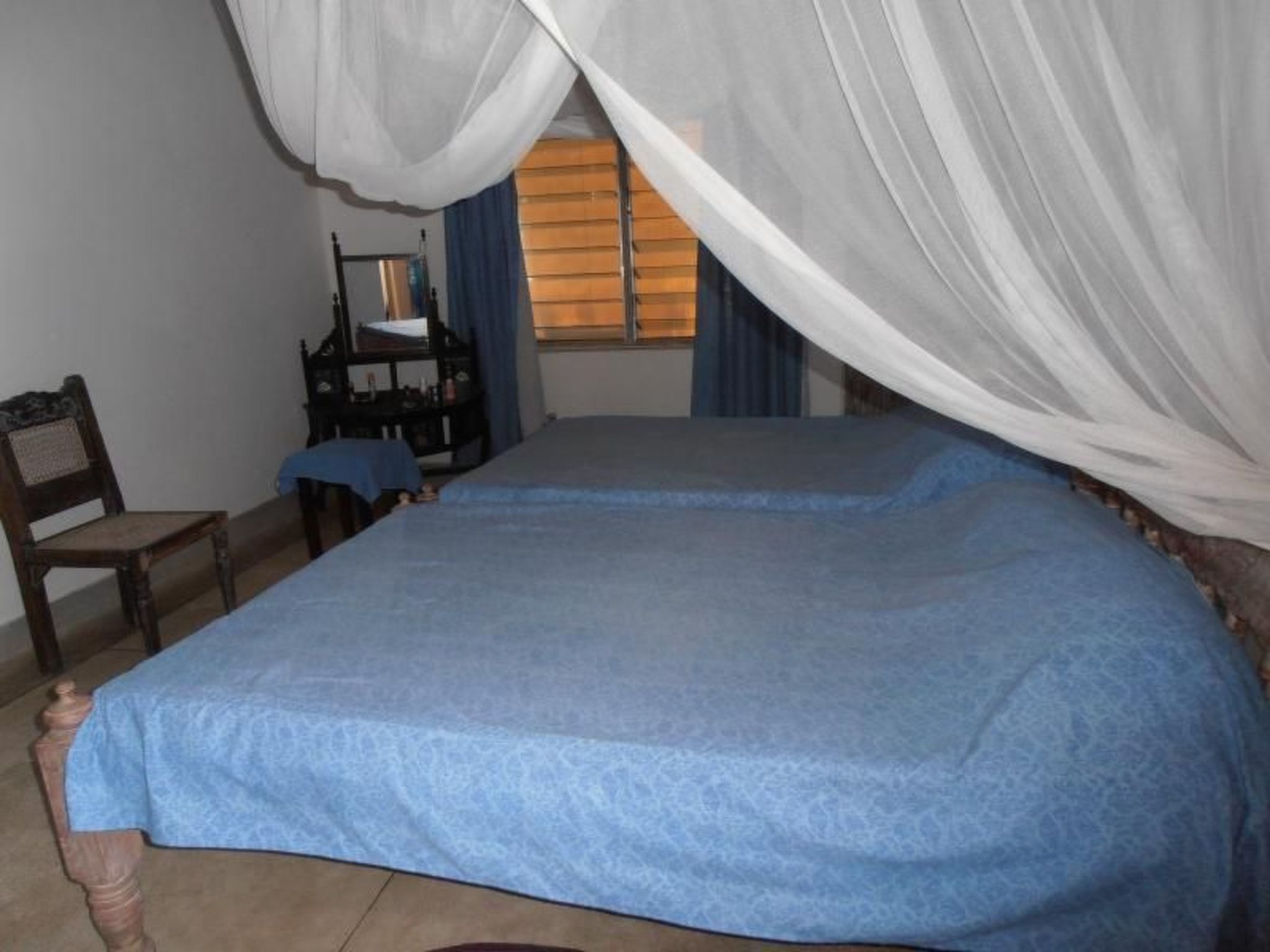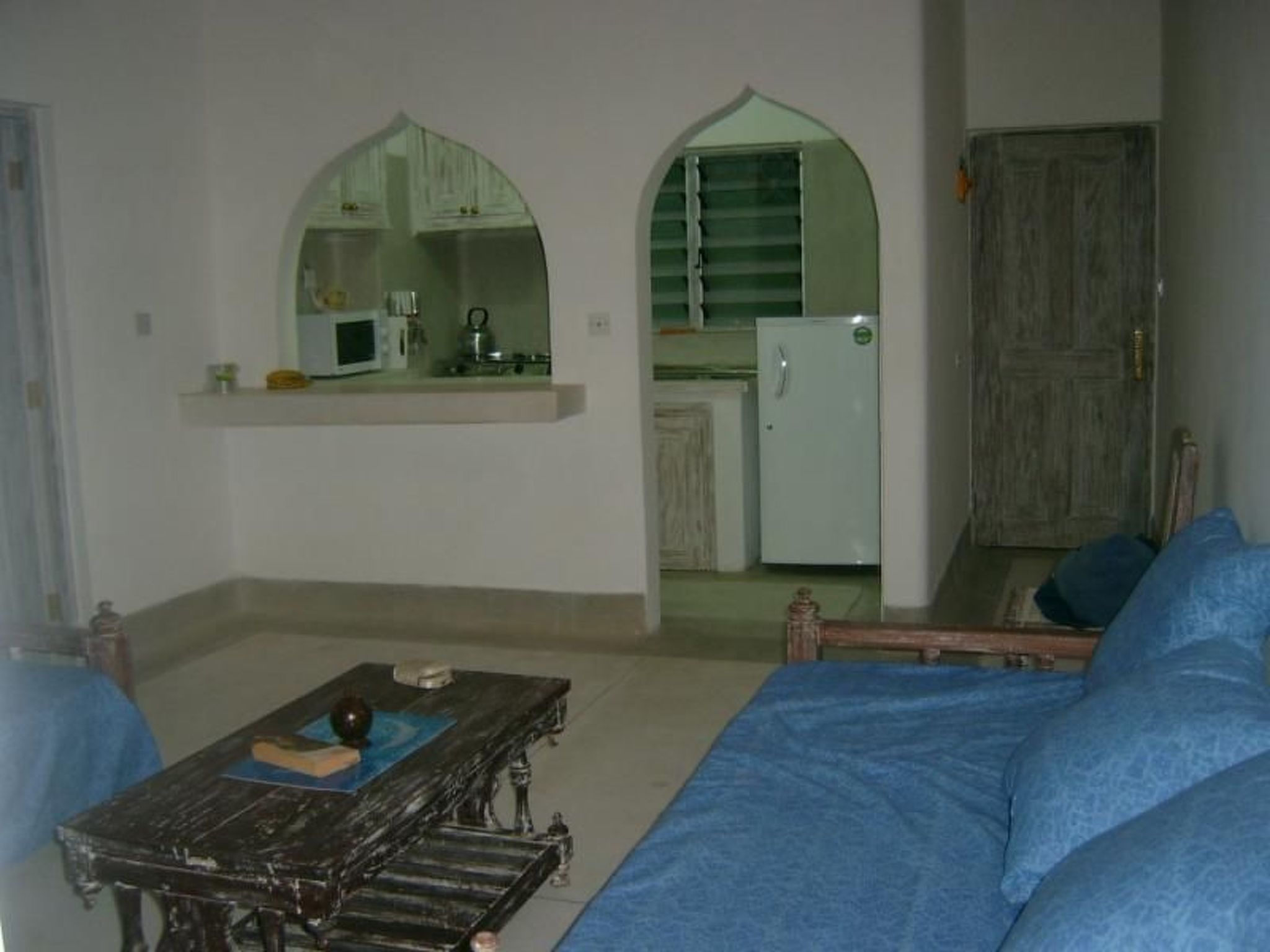 Die Wohnung ist bequem für zwei Erwachsene und maximal zwei Kinder geeignet und ist geschmackvoll eingerichtet. Es gibt ein Schlafzimmer mit zwei Betten und Moskitonetzen. Im Wohnzimmer finden Sie zwei Schlafmöglichkeiten auf einem Schlafsofa. Außerdem gibt es eine Küche, die mit Elektrogeräten ausgestattet ist. Das Badezimmer verfügt über eine Dusche und eine Toilette.