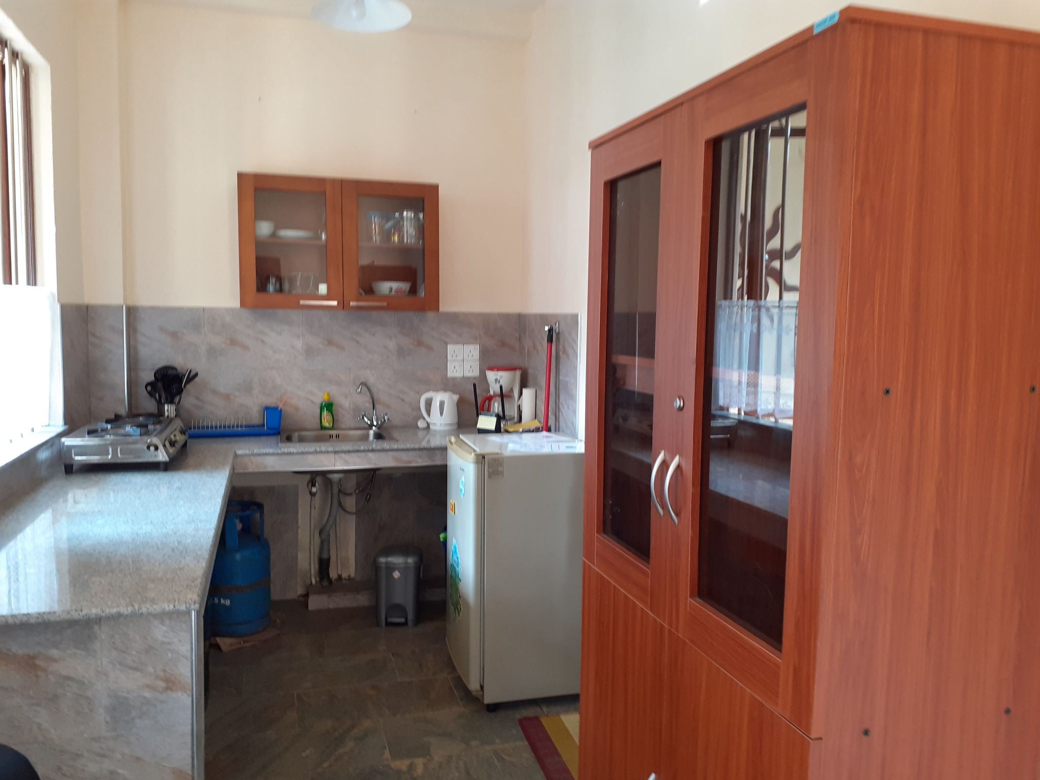Die Innenausstattung der SLG Villa ist darauf ausgelegt, Ihren Aufenthalt so angenehm wie möglich zu gestalten. Mit einer Klimaanlage in bestimmten Bereichen und verstärkt durch den natürlichen Luftzug der Ventilatoren, bietet die Villa eine willkommene Abkühlung von der tropischen Hitze. Die Ferienwohnung verfügt über eine praktische Ausstattung, einschließlich Gasherd, Kaffeemaschine und Wasserkocher. Darüber hinaus steht Ihnen und anderen Gästen eine Waschmaschine zur Verfügung, was besonders für Langzeitgäste praktisch ist.