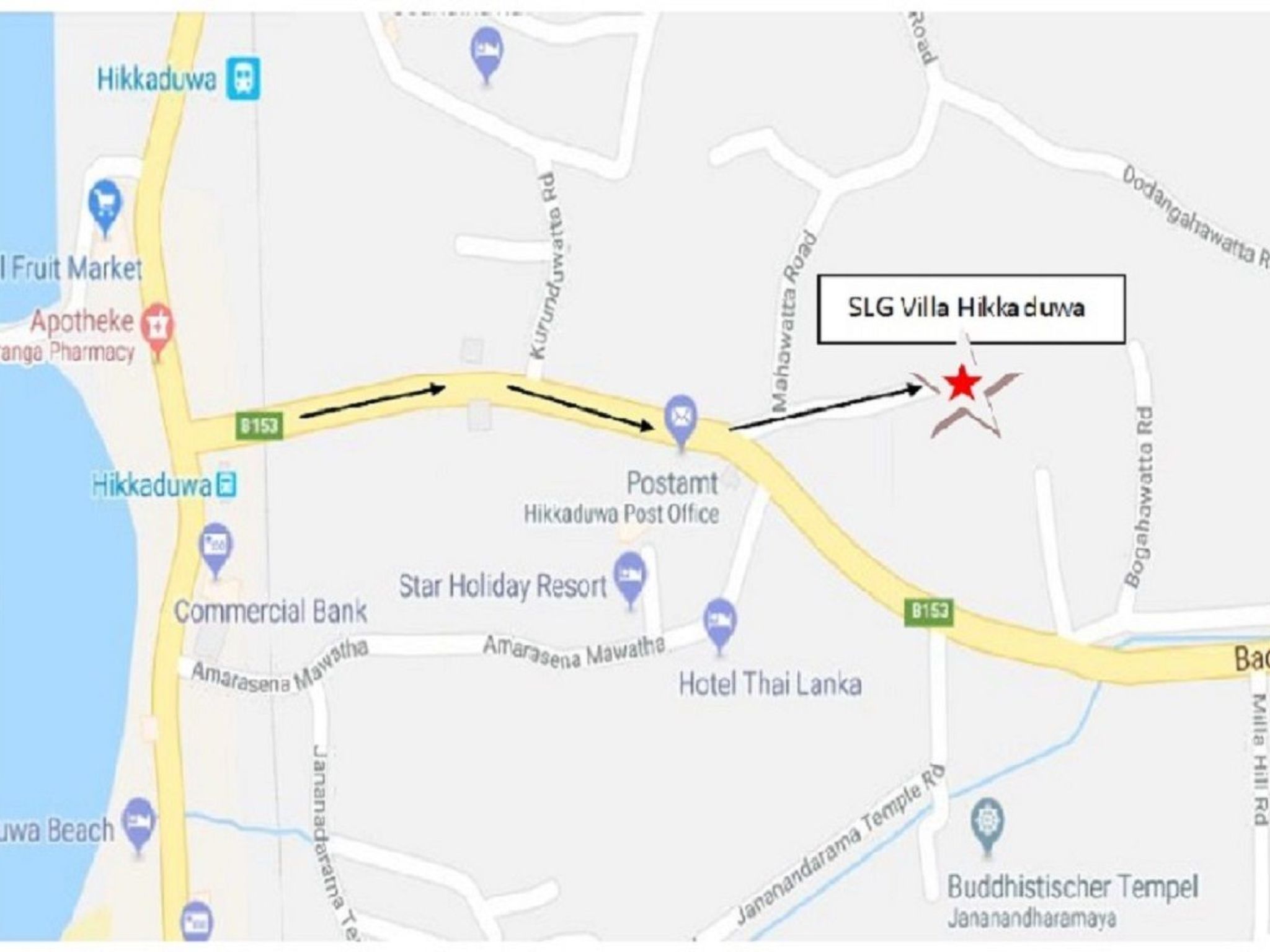 Die Lage unserer Ferienwohnung ist ideal für alle, die das lebendige Flair von Hikkaduwa aus erster Hand erfahren möchten. Ein kurzer Spaziergang führt Sie ins Herz des Ortes mit seinen vielfältigen Einkaufsmöglichkeiten, während die unberührten Strände und das Meer nur 1500 Meter entfernt sind. Die historische Stadt Galle liegt in der Nähe und bietet sich für kulturelle Ausflüge an. Zudem gewährleistet die Nähe zu Bahn- und Busbahnhof eine problemlose Erkundung weiter entfernter Attraktionen.