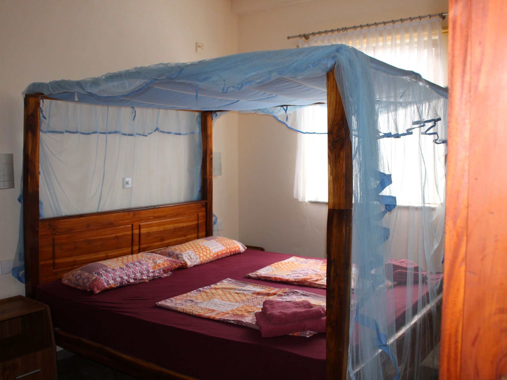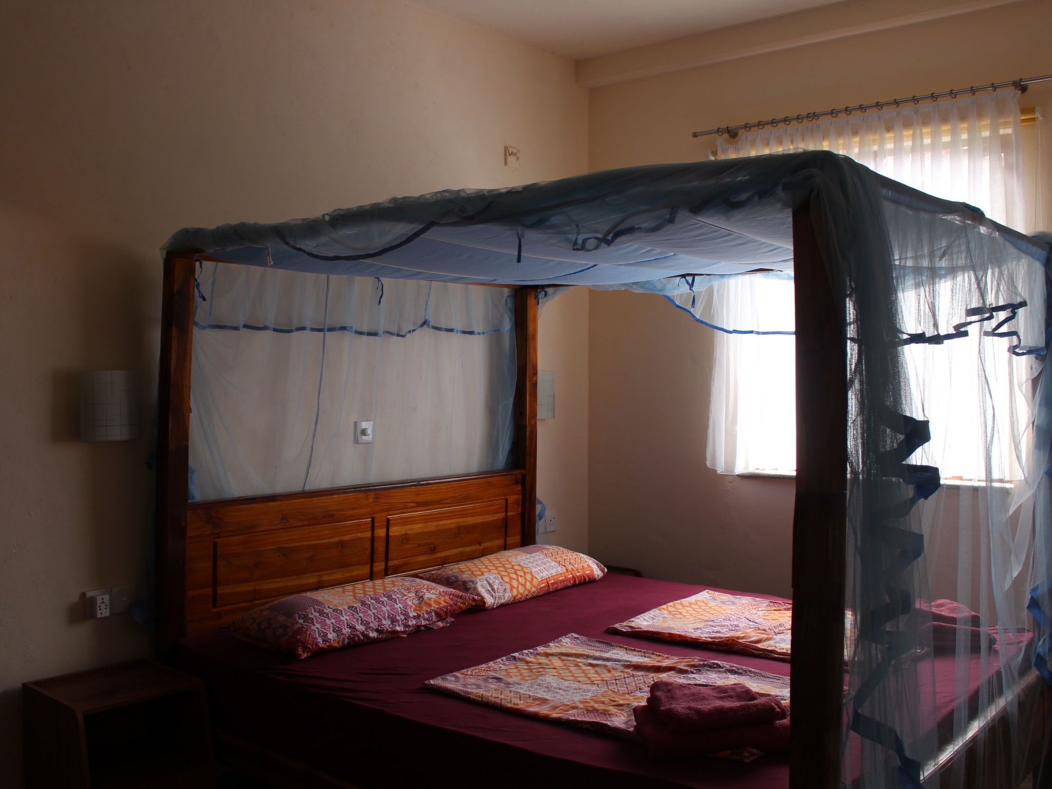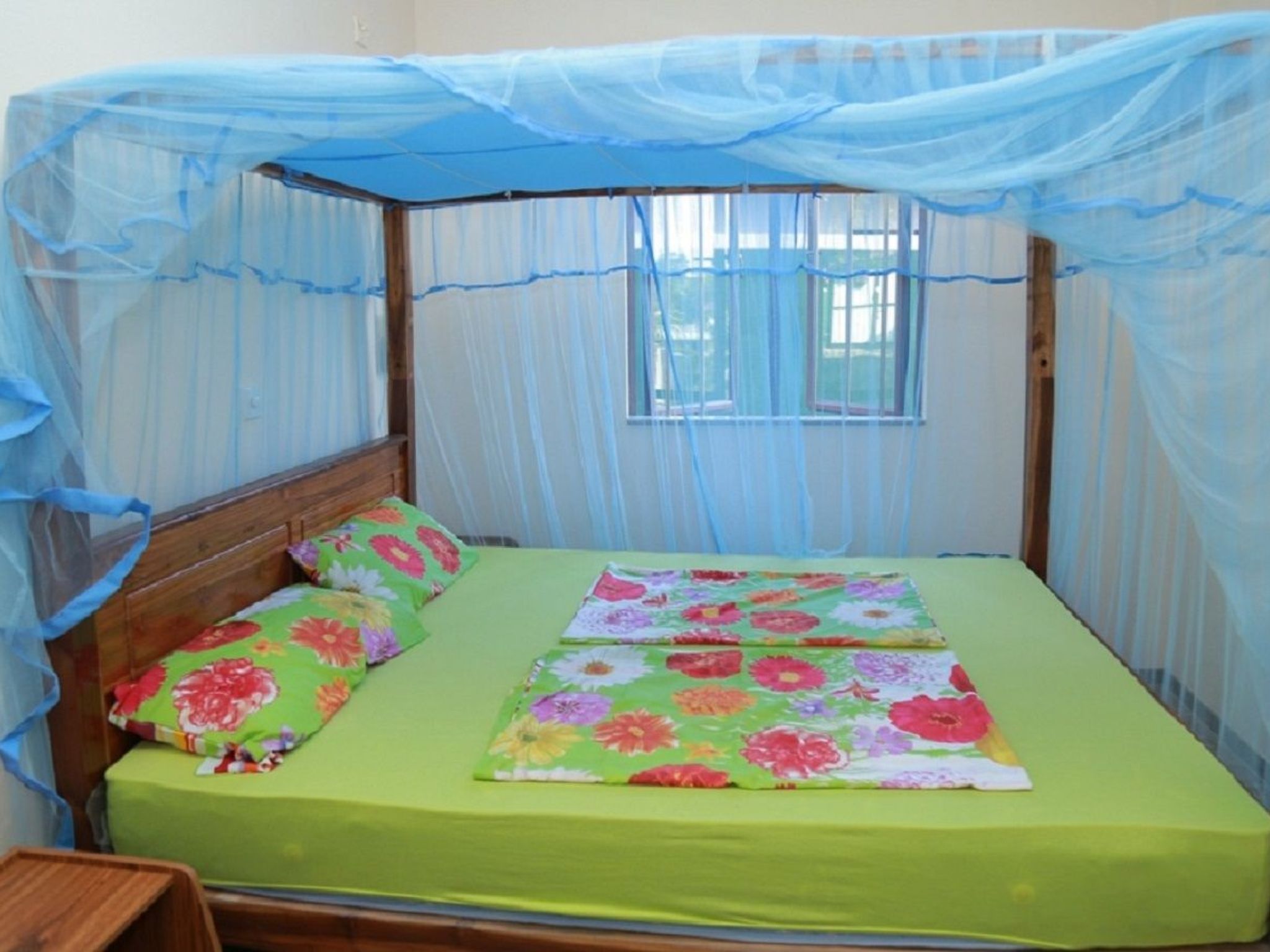 Im Inneren der Ferienwohnung im Erdgeschoss finden Gäste eine gut ausgestattete Küche mit Gaskocher, Wasserkocher und Kaffeemaschine vor - ideal für die Zubereitung leckerer Mahlzeiten. Die Unterkunft verfügt über zwei komfortable Schlafzimmer und ein Badezimmer mit Dusche, garantiert also eine erfrischende und erholsame Nachtruhe. In den Schlafzimmern der Wohnung sorgt eine Klimaanlage für angenehme Temperaturen, während Ventilatoren eine sanfte Brise in alle Räume bringen. Zudem wird das Haus mit Solarenergie betrieben, was den Aufenthalt nachhaltig gestaltet.