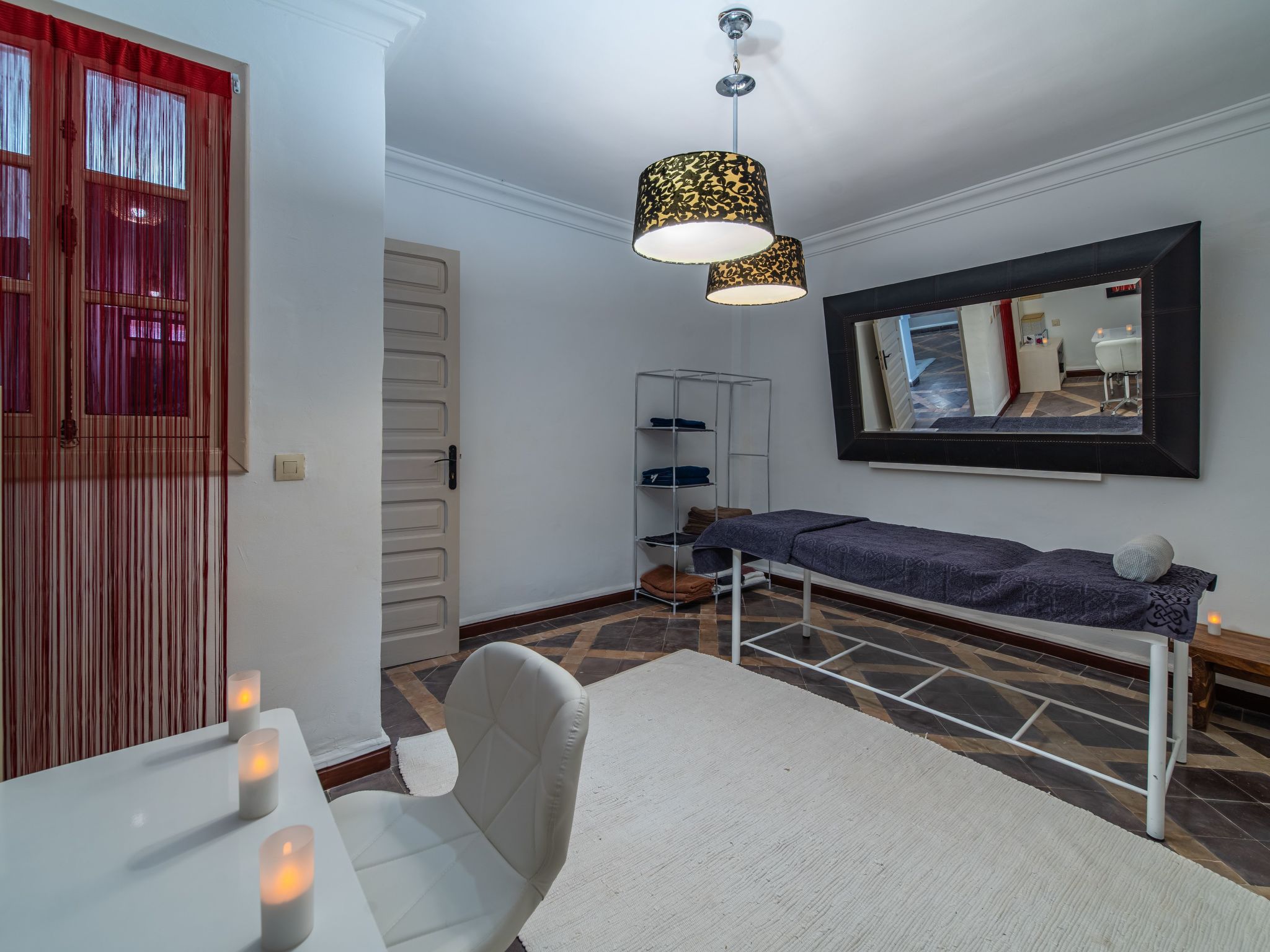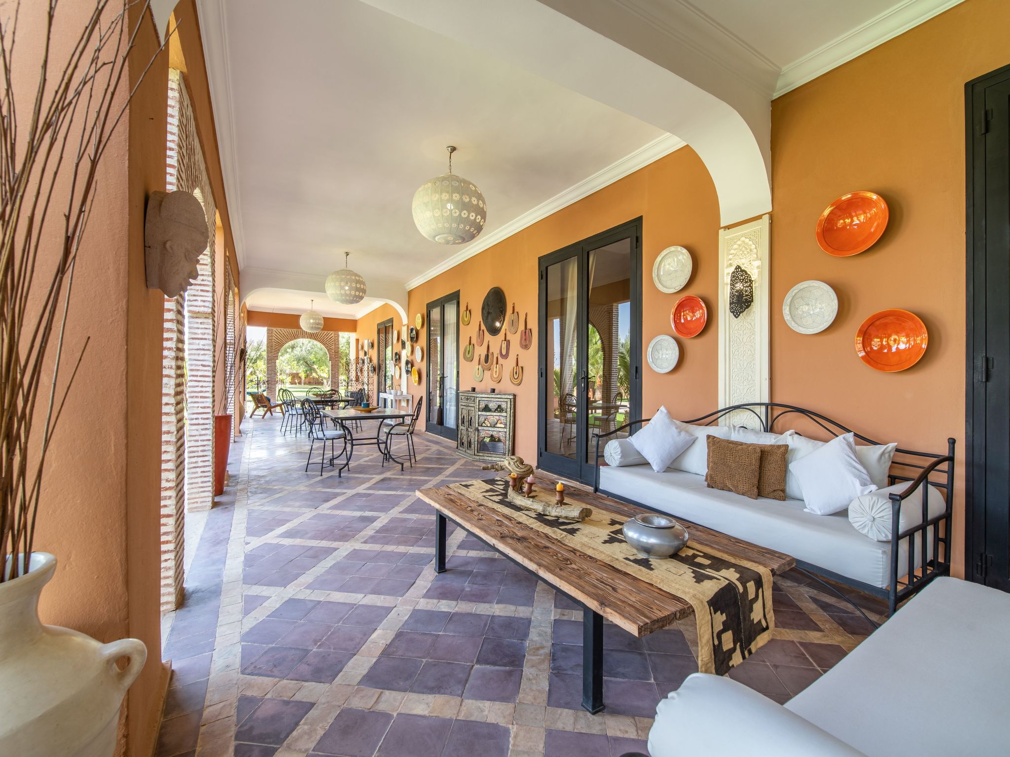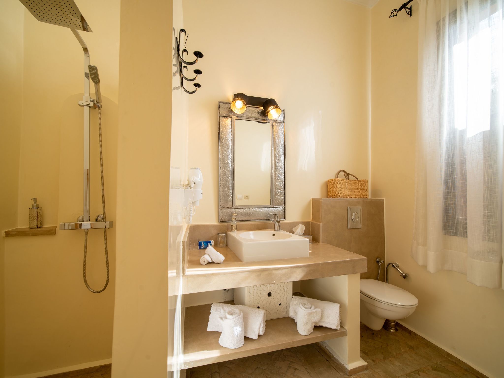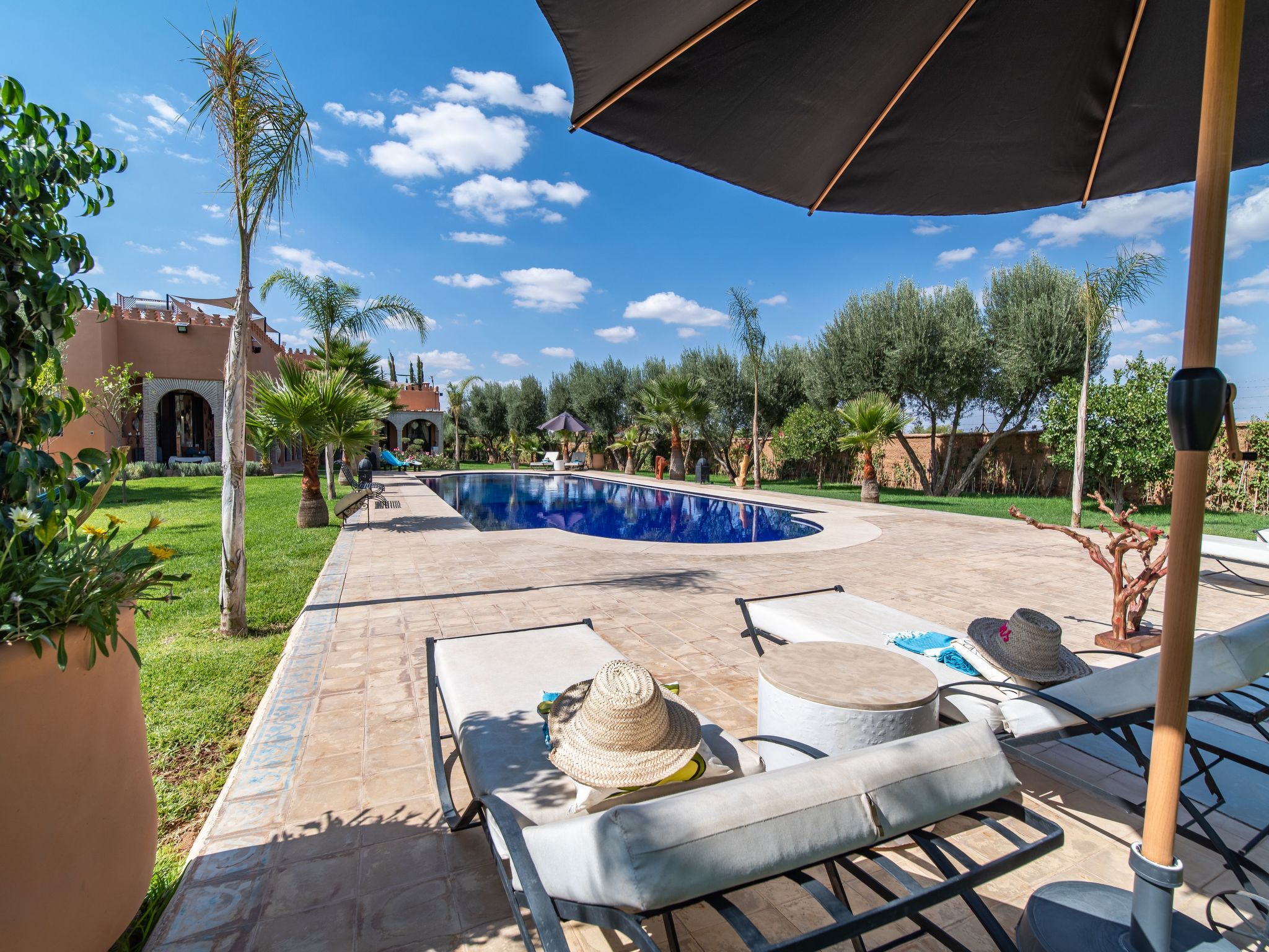 Im Außenbereich öffnet sich das Haus zu einem üppigen und sorgfältig gepflegten Außenbereich, der zur gemeinschaftlichen Nutzung zur Verfügung steht und eine Vielzahl von Optionen zum Entspannen und Genießen des milden Klimas von Marrakesch bietet. Die Terrasse und die Dachterrasse laden zu geselligen Stunden oder entspannenden Momenten ein, während Sie die Aussicht genießen, während der belebende Pool nach einem Tag voller Erkundungen willkommene Erfrischungen verspricht. Der Garten mit seinem Grillplatz eignet sich perfekt für Grillabende unter dem Sternenhimmel.