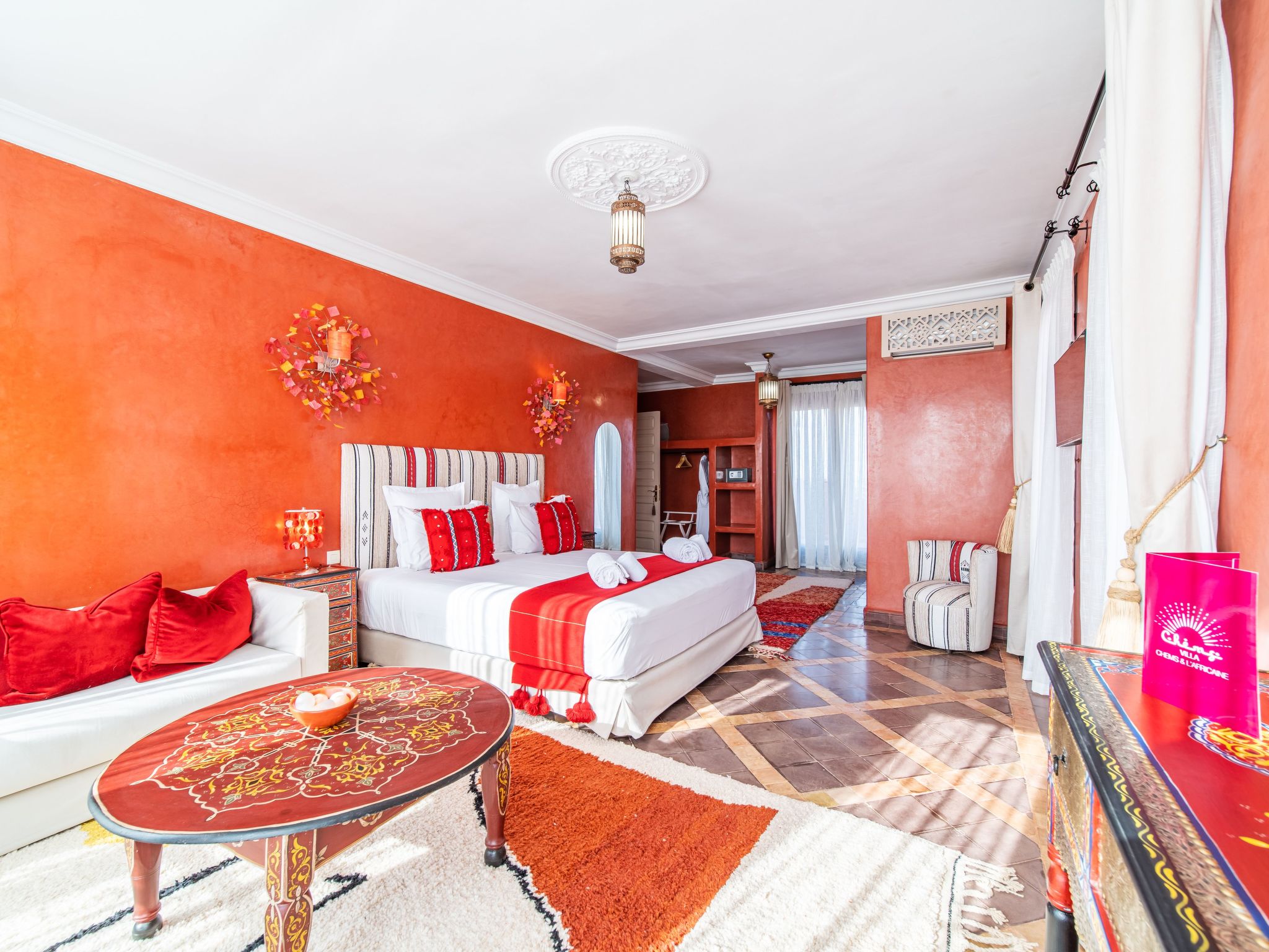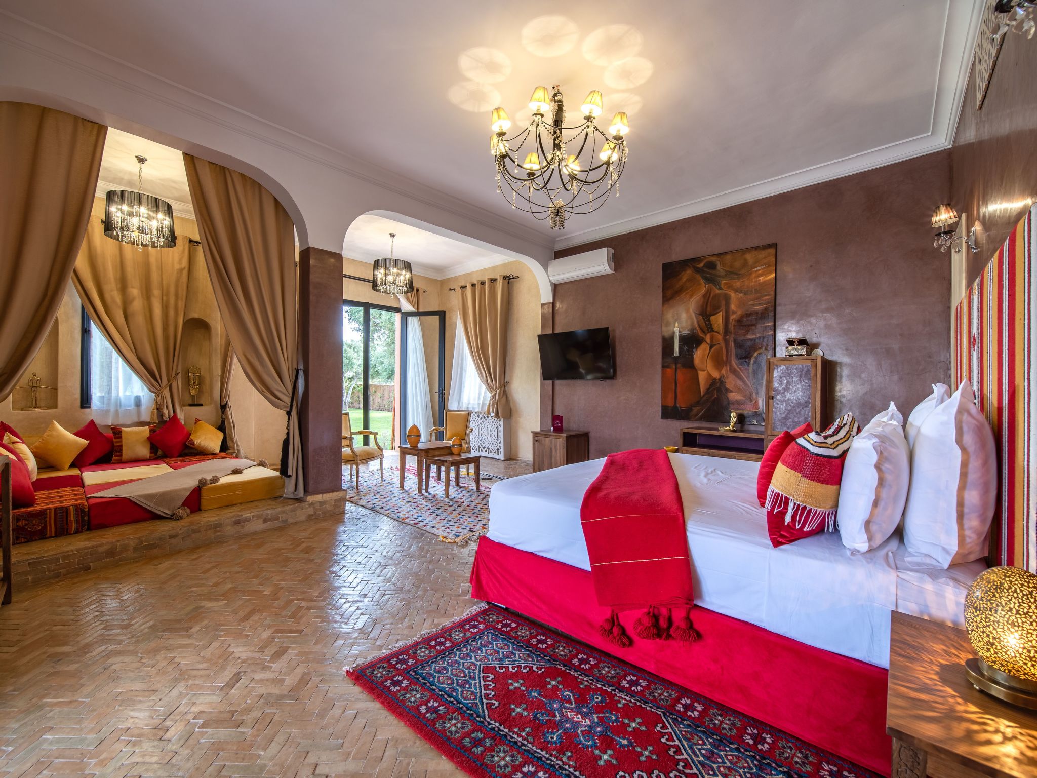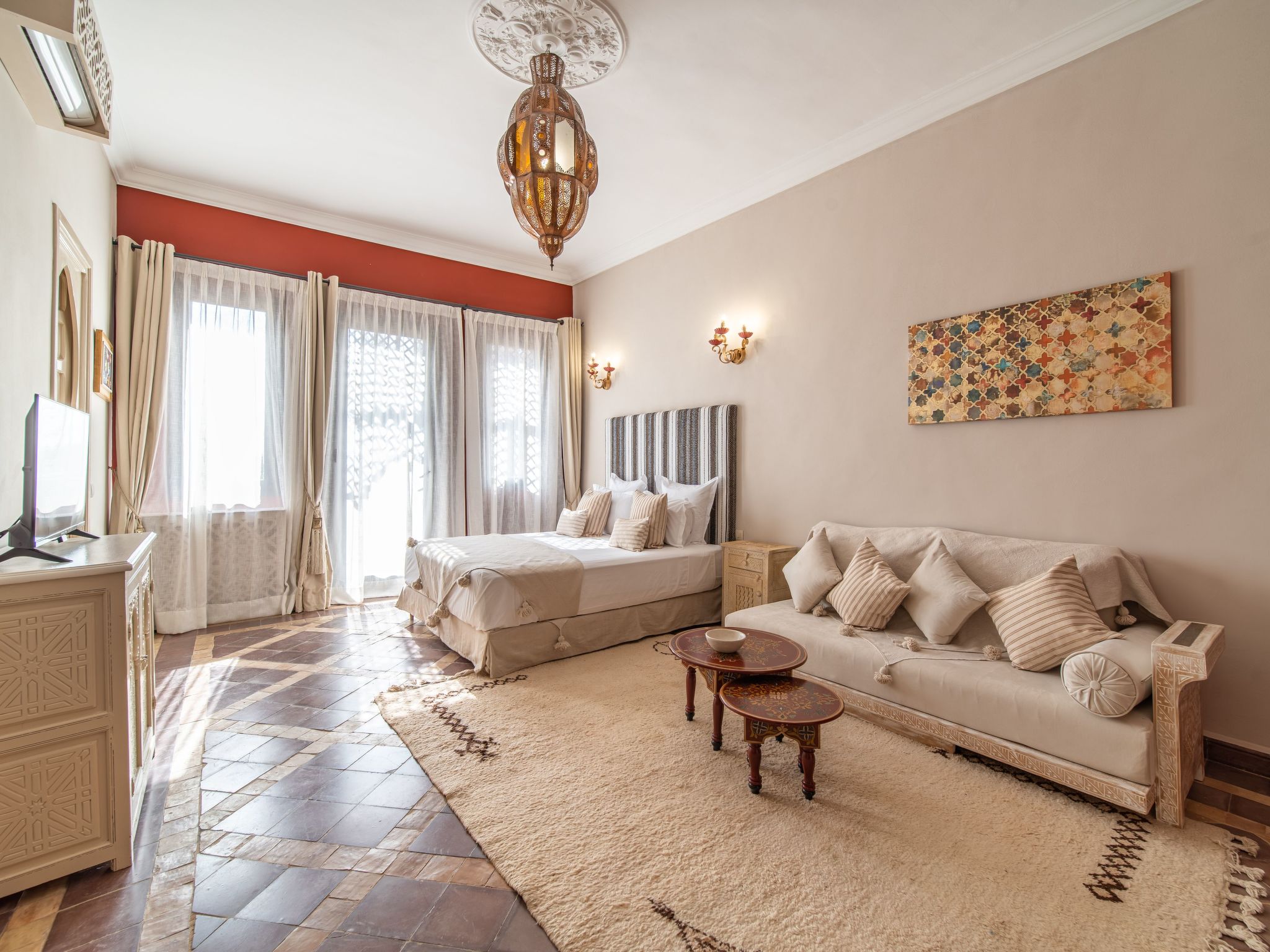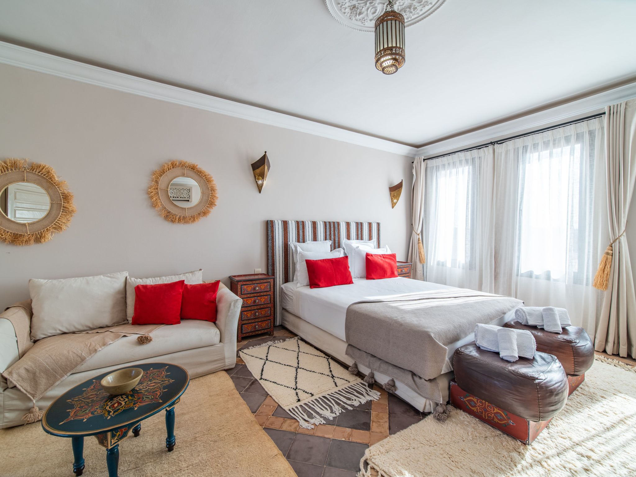 Im Außenbereich öffnet sich das Haus zu einem üppigen und sorgfältig gepflegten Außenbereich, der zur gemeinschaftlichen Nutzung zur Verfügung steht und eine Vielzahl von Optionen zum Entspannen und Genießen des milden Klimas von Marrakesch bietet. Die Terrasse und die Dachterrasse laden zu geselligen Stunden oder entspannenden Momenten ein, während Sie die Aussicht genießen, während der belebende Pool nach einem Tag voller Erkundungen willkommene Erfrischungen verspricht. Der Garten mit seinem Grillplatz eignet sich perfekt für Grillabende unter dem Sternenhimmel.