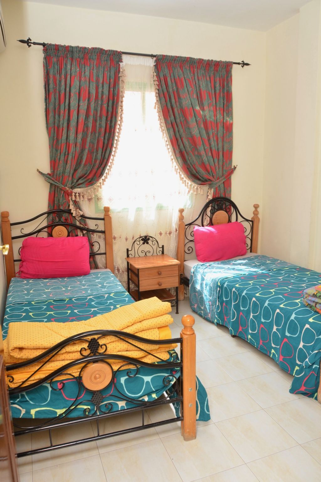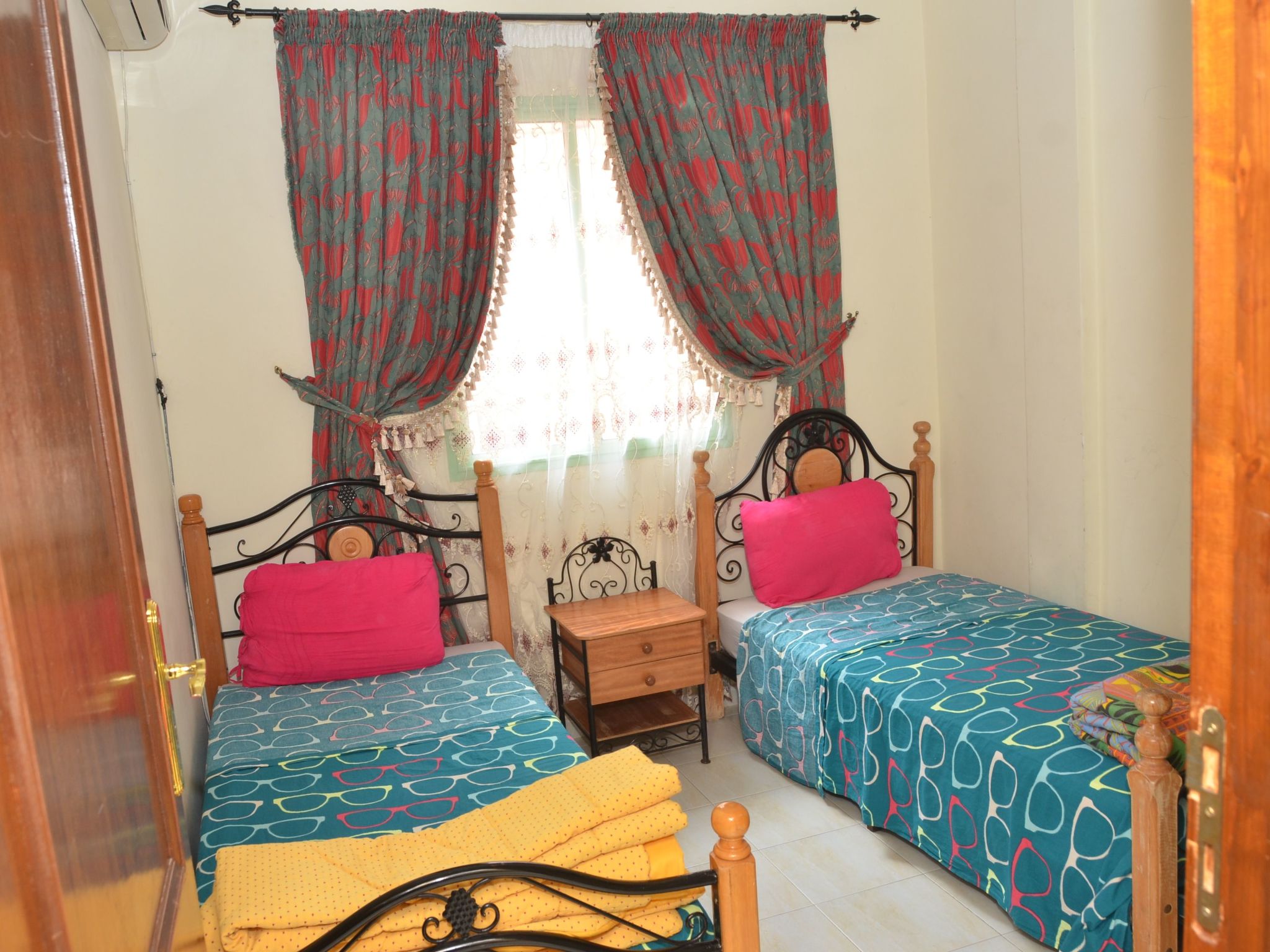 Eine komfortable Wohnung von 50 m2, in der Nähe der Medina, bestehend aus: Wohnzimmer 2 Sofas, Sessel, Flachbild-Satelliten-TV, 2 Schlafzimmer mit 1 Doppelbett, 2 Einzelbetten, , ausgestattete Küche, Bad Dusche, WC, Waschbecken Warmwasser, 4 Sitze, Klimaanlage, 2 Balkone.