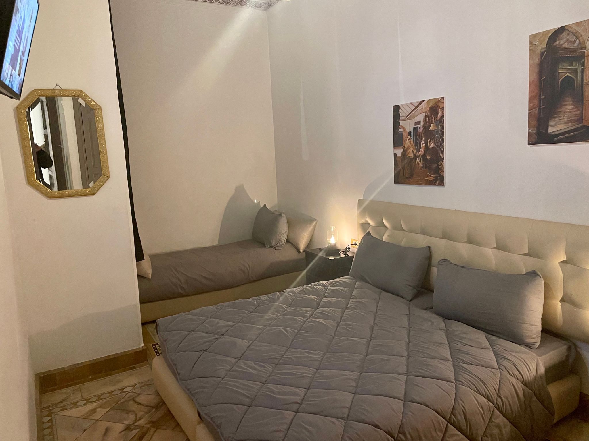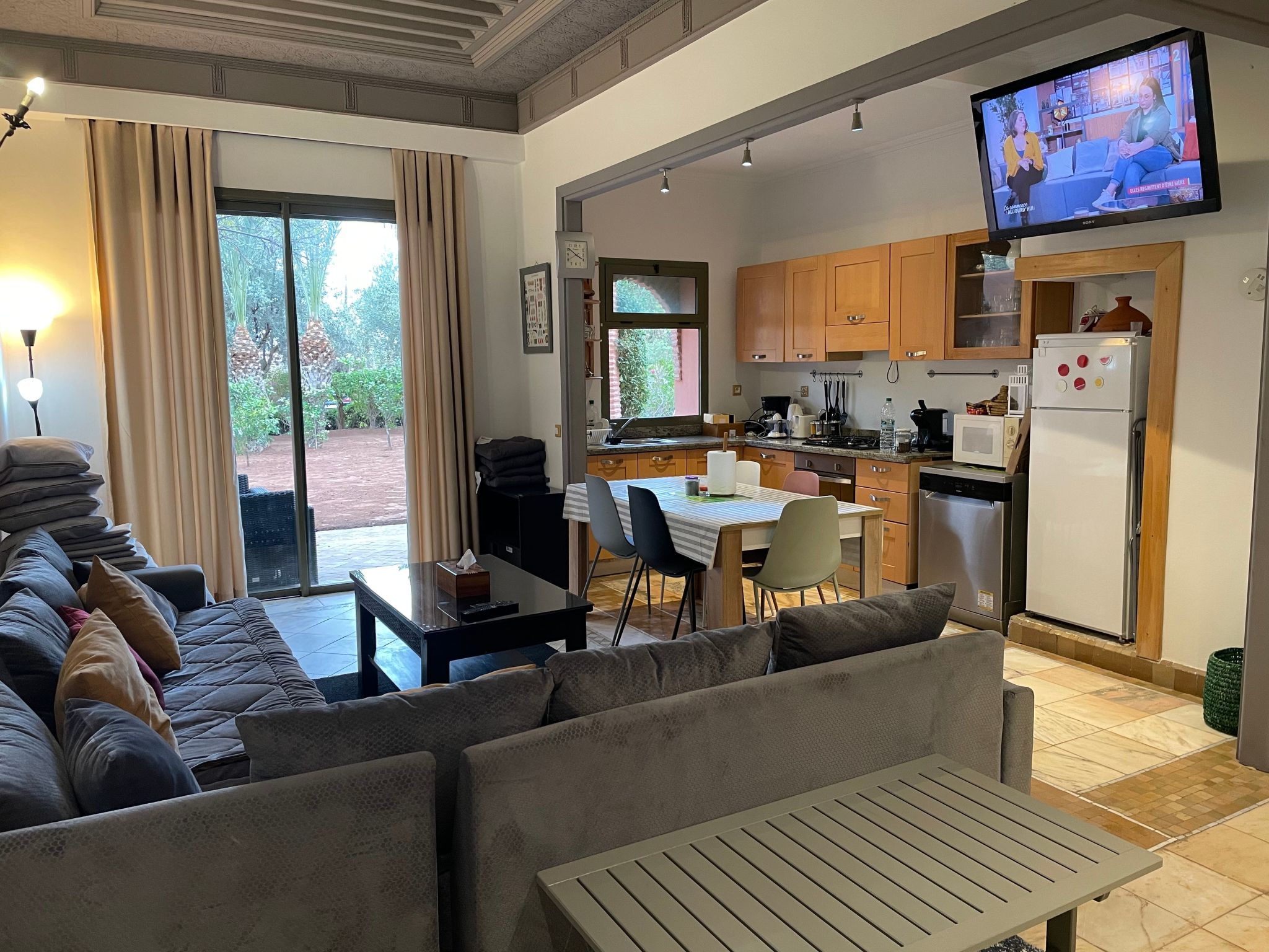 Diese Wohnung ist eine Einladung, Marrakesch in einer friedlichen und charmanten Umgebung zu genießen. Ob Sie nun einen entspannenden Aufenthalt oder ein Abenteuer zur Erkundung der Schätze der Stadt planen, dieses Juwel inmitten des Palmenhains verspricht, Ihr Lieblingsort zu werden. Legendäre Pflege, Sauberkeit und außergewöhnlicher Komfort erwarten Sie für ein authentisches marokkanisches Erlebnis. Warten Sie nicht länger, um Ihre Reise in eine himmlische Erinnerung zu verwandeln.